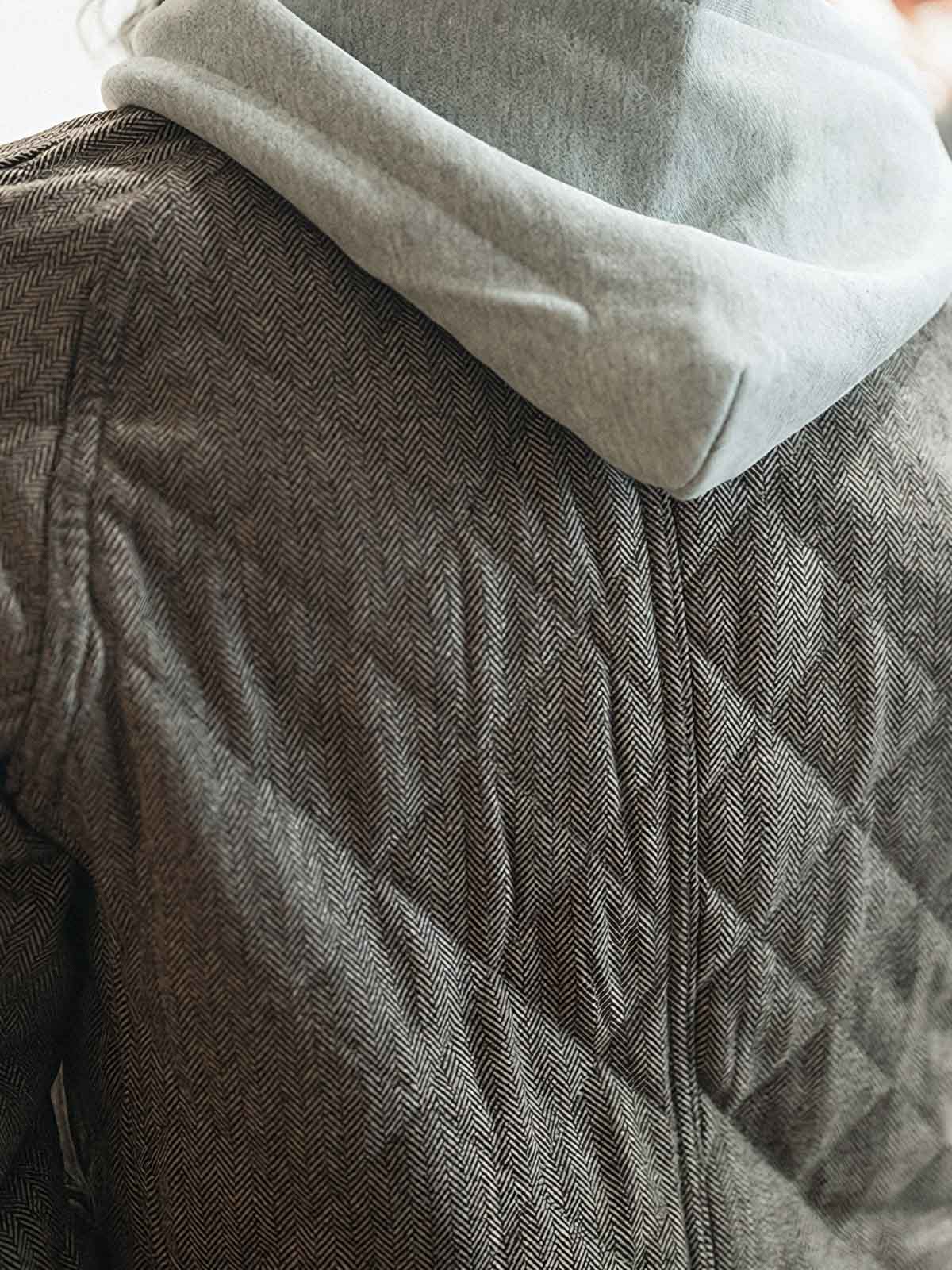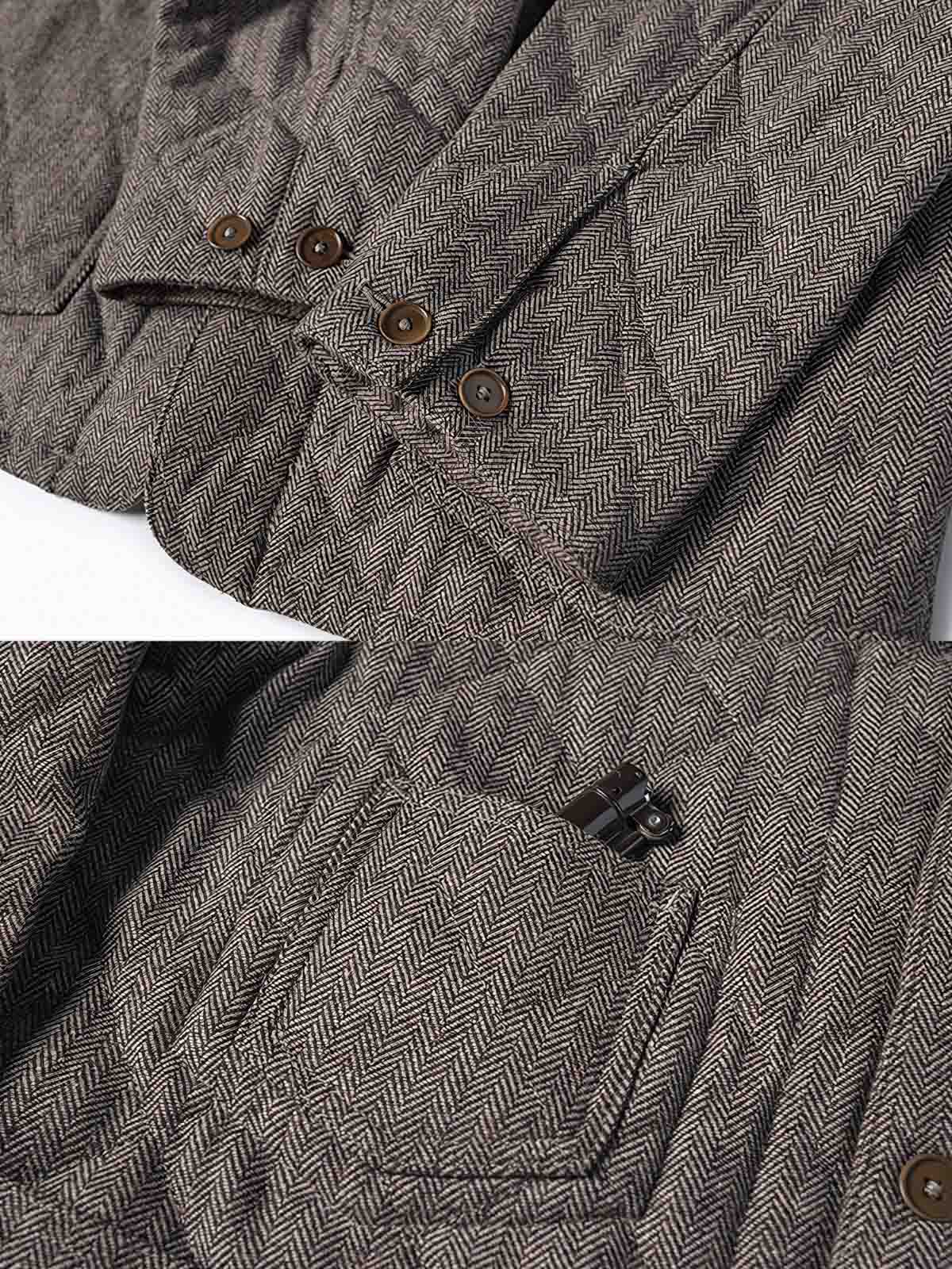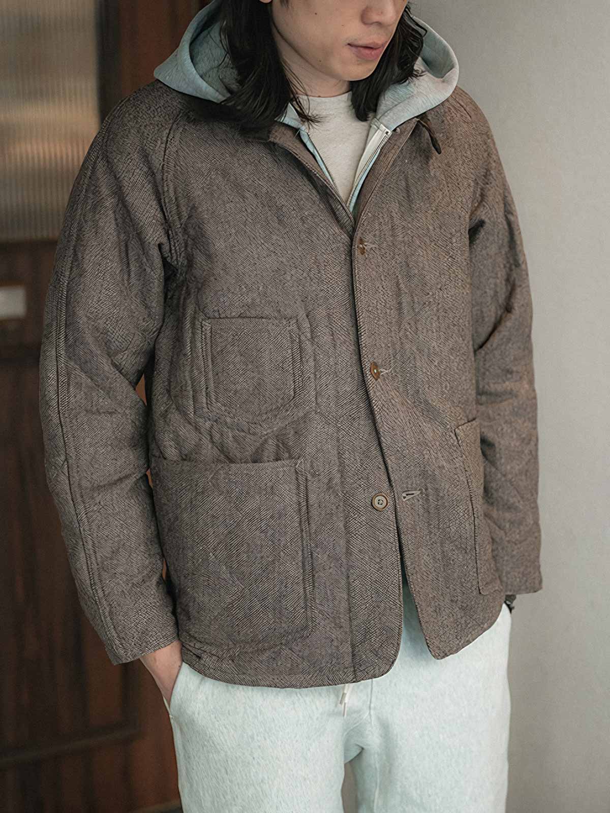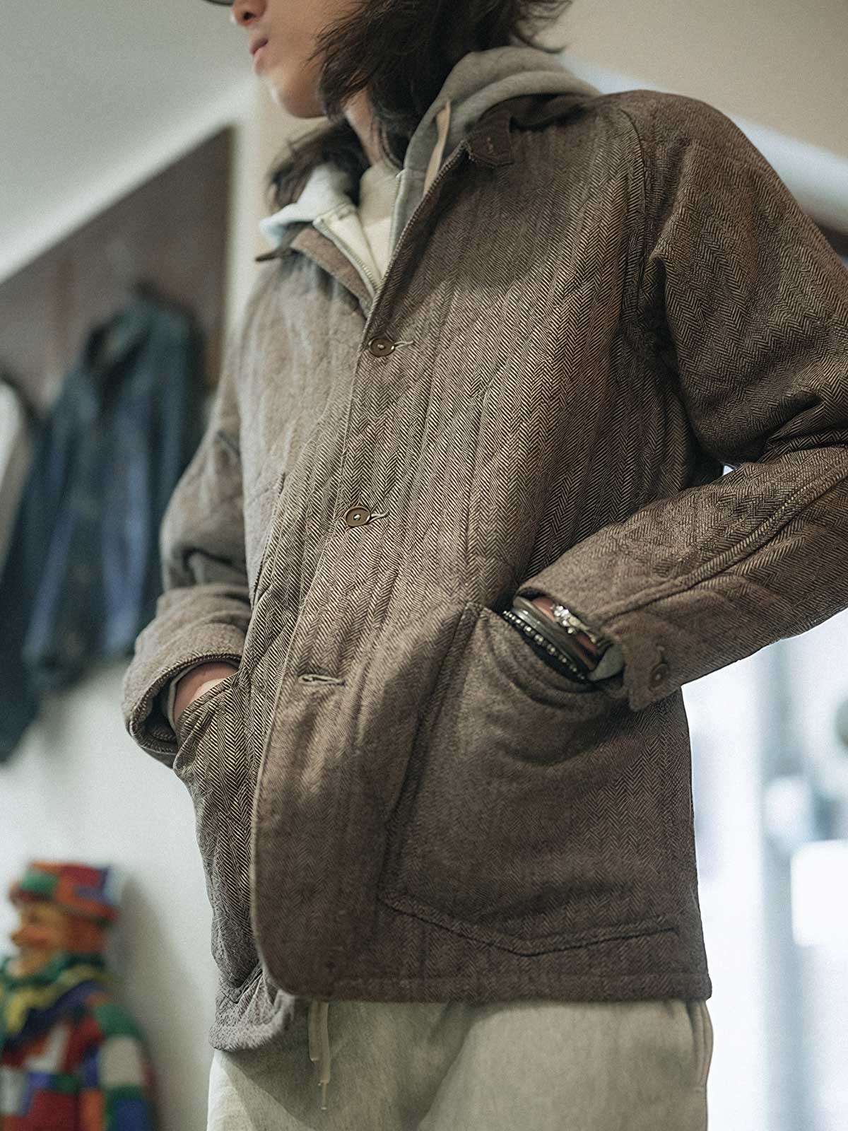 このジャケットは、無地のセーターやシンプルなシャツとのレイヤードに最適です。カジュアルパンツやデニムと合わせて、秋冬のクラシックなスタイルを演出しましょう。シューズはレザーブーツやデザートブーツを合わせて、季節感のある着こなしに仕上げます。