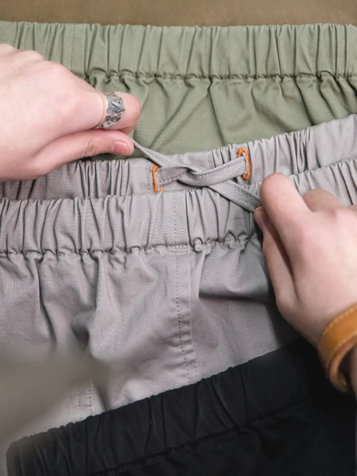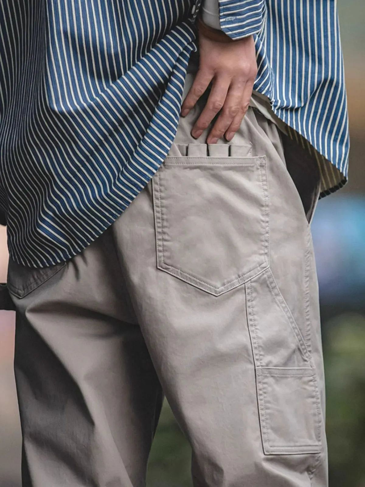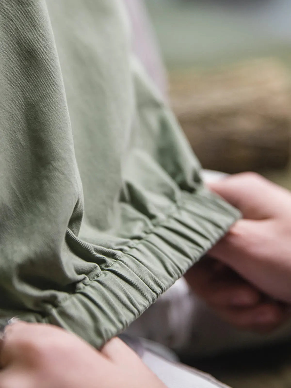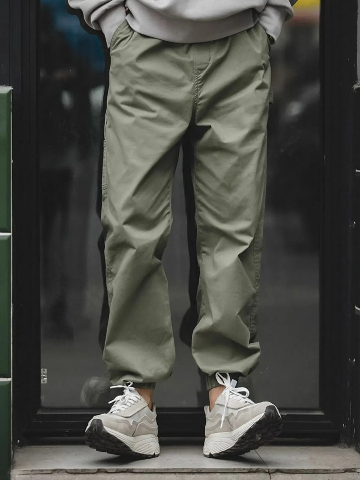 このイージーパンツは、新定番として「快適、立挺、便利」を追求し、コットン97%×スパンデックス3%の裾まで磨毛加工を施した生地を採用。ウエストはドローストリングでベルト不要、脚首はゴムギャザーでシューズを選ばずにスタイリング可能です。左腿の「JUST GO AHEAD」プリントとミリタリーテイストのカートリッジポケットがアクセントになり、リラックス感のあるハーレムシルエットが日常からアウトドアまで幅広いシーンで自信を与えます。