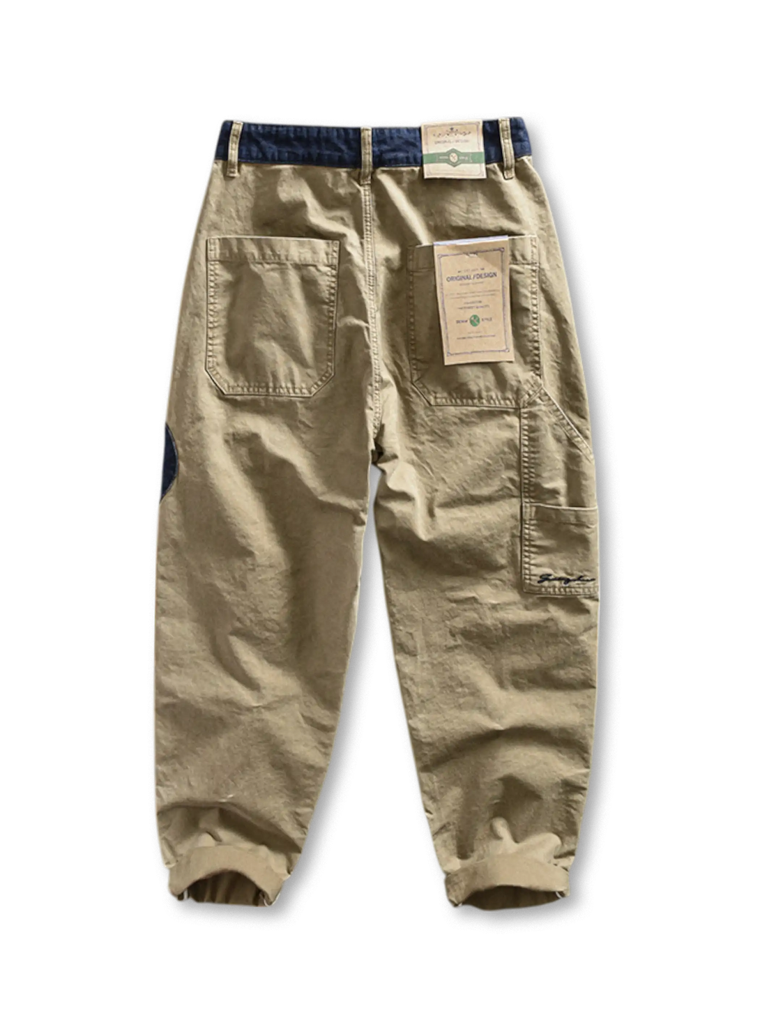デニムウエストと補強入りカーゴポケットが映える、100%コットン製ワークテイストのジョガーパンツ。