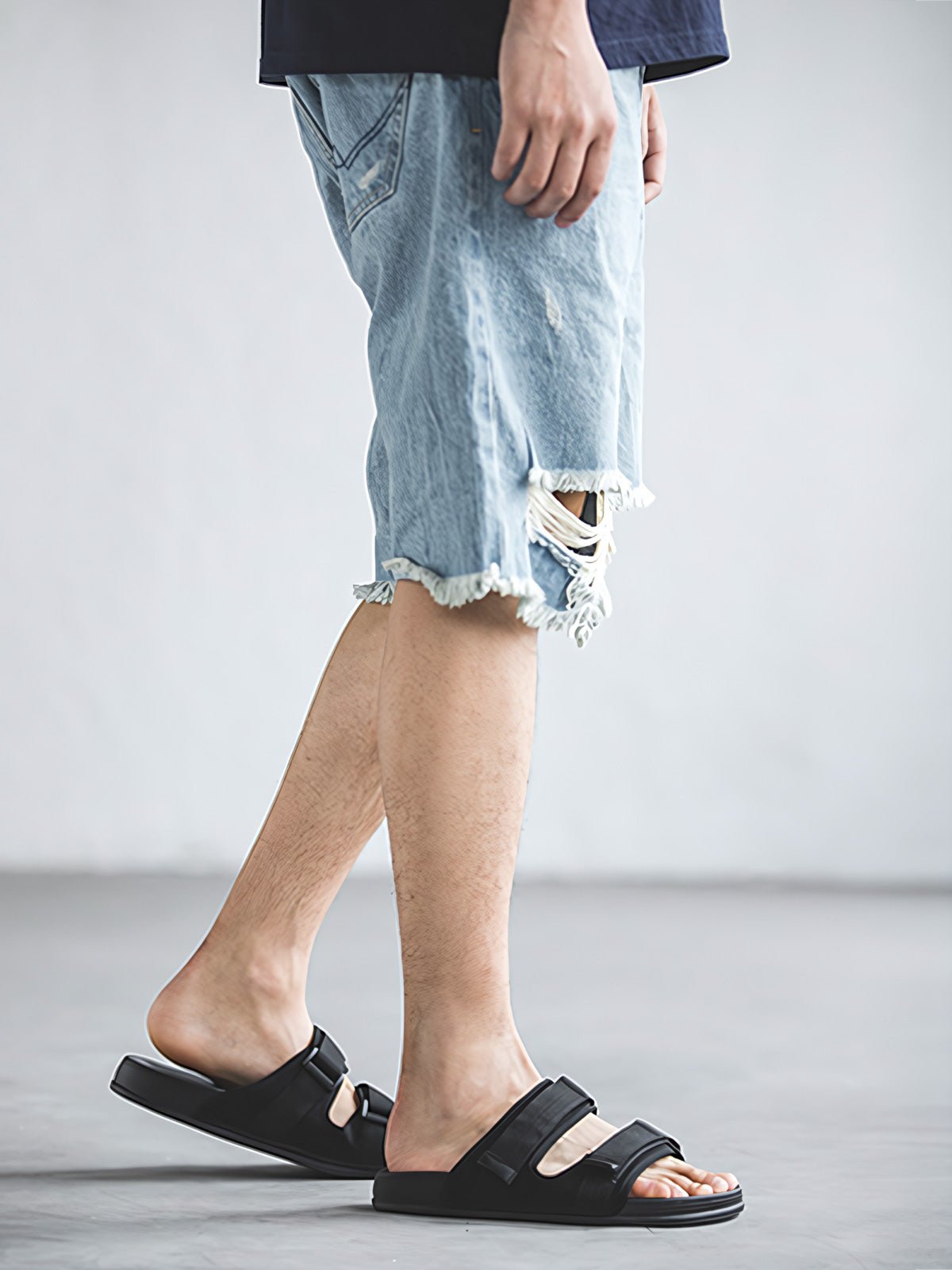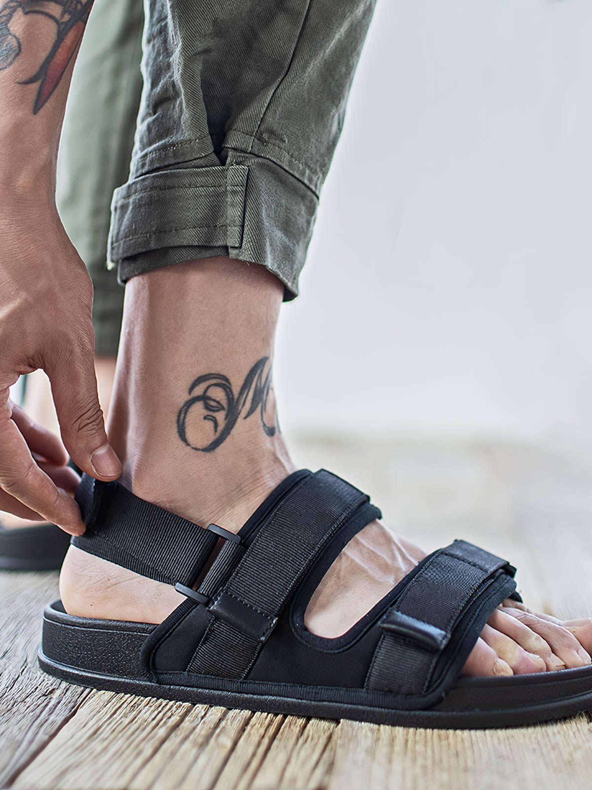 夏のアウトドアシーンに最適で、リラックスフィットのショートパンツやビーチパンツ、軽量なアクティブウェアとの組み合わせが推奨されます。海辺の散歩から、都市での週末のカジュアルなデートまで、様々なシーンで活躍する多機能サンダルです。