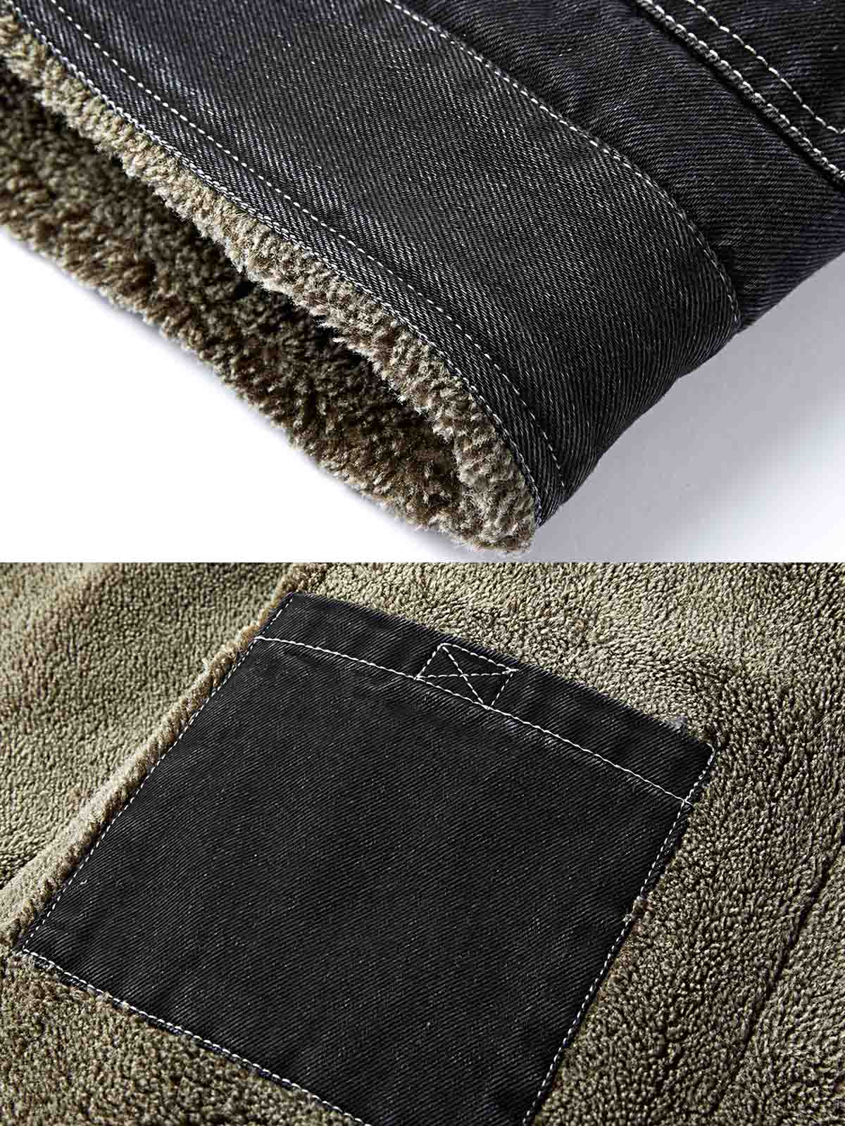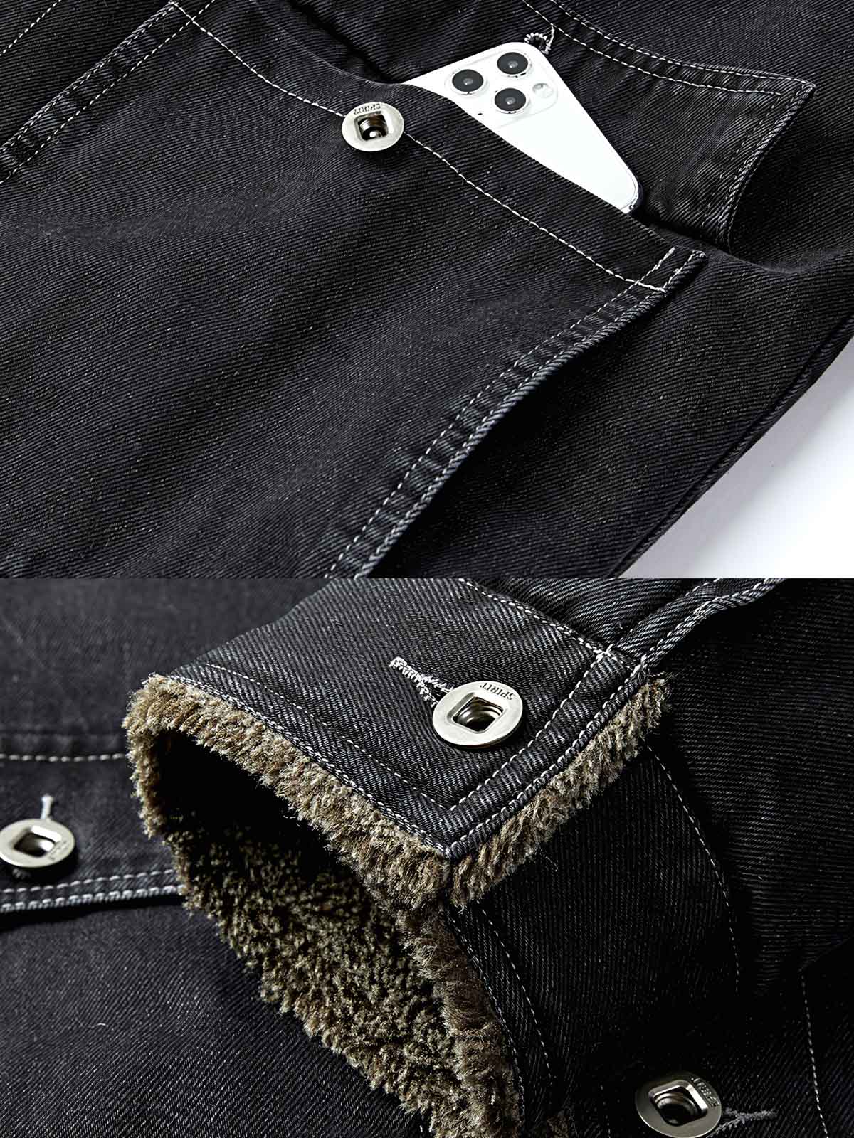 外層は耐久性のあるデニムで作られ、日常の着用に耐えうるものです。内側の裏起毛素材は肌に優しく、柔らかく快適です。また、ラムウールの襟はデザインセンスを加えるだけでなく、保温性も向上させています。