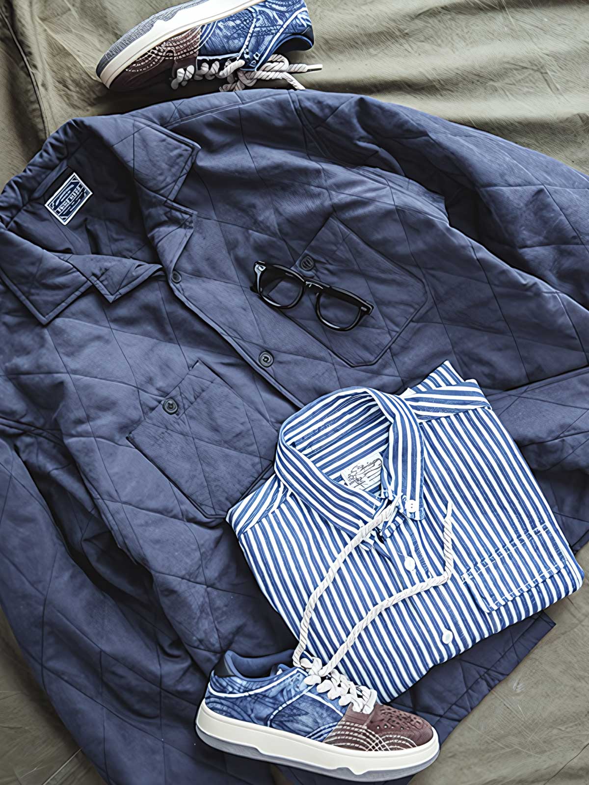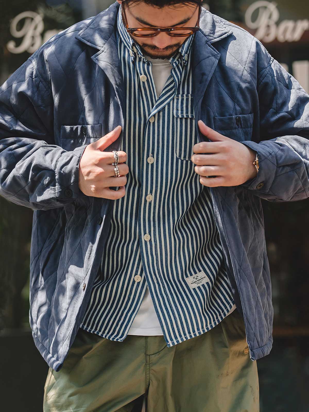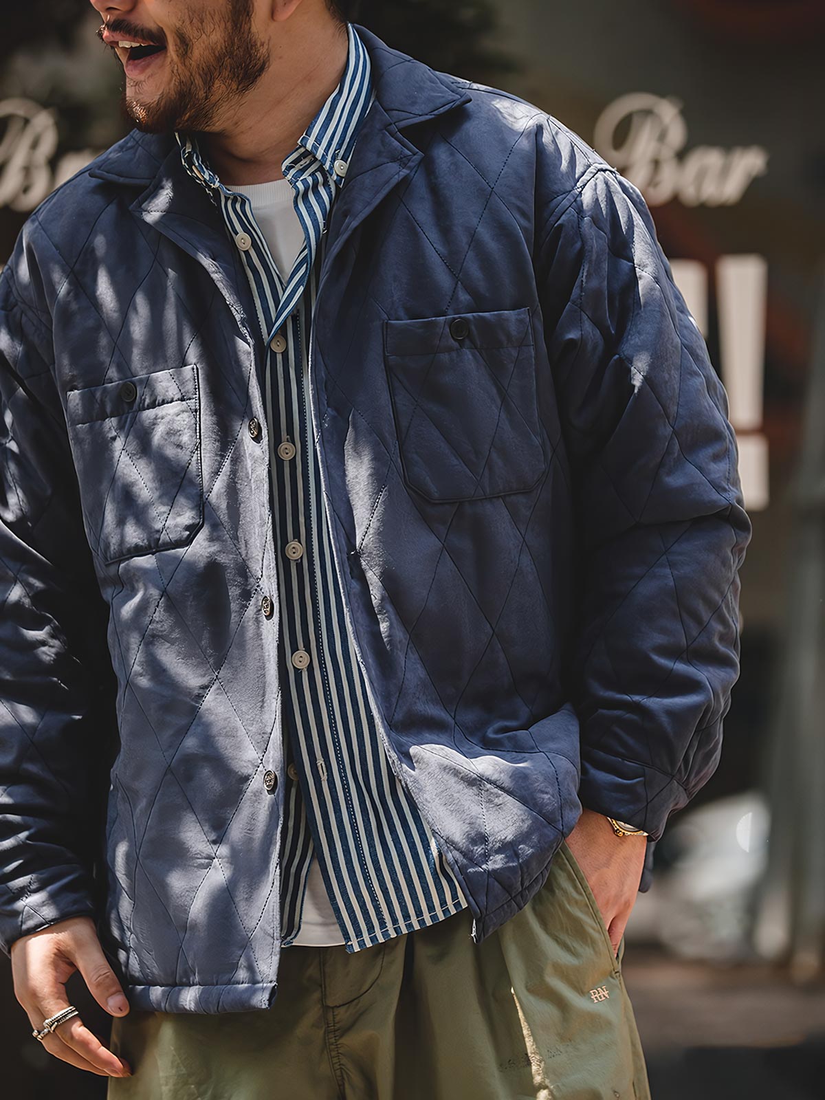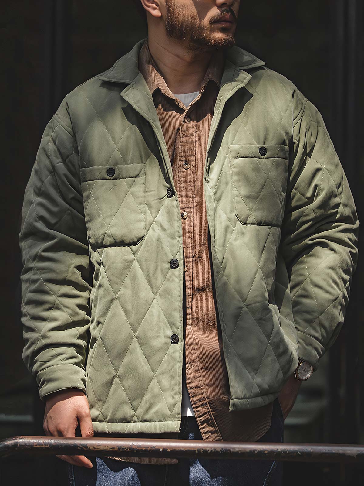 このコットンジャケットは、そのレトロなダイヤモンドキルティングデザインで、イギリスの伝統的な服装のクラシックな要素を反映しています。ピーチスキン素材は衣類に柔らかな手触りを与えるだけでなく、20世紀のイギリス貴族の狩猟服の優雅さも表現しています。