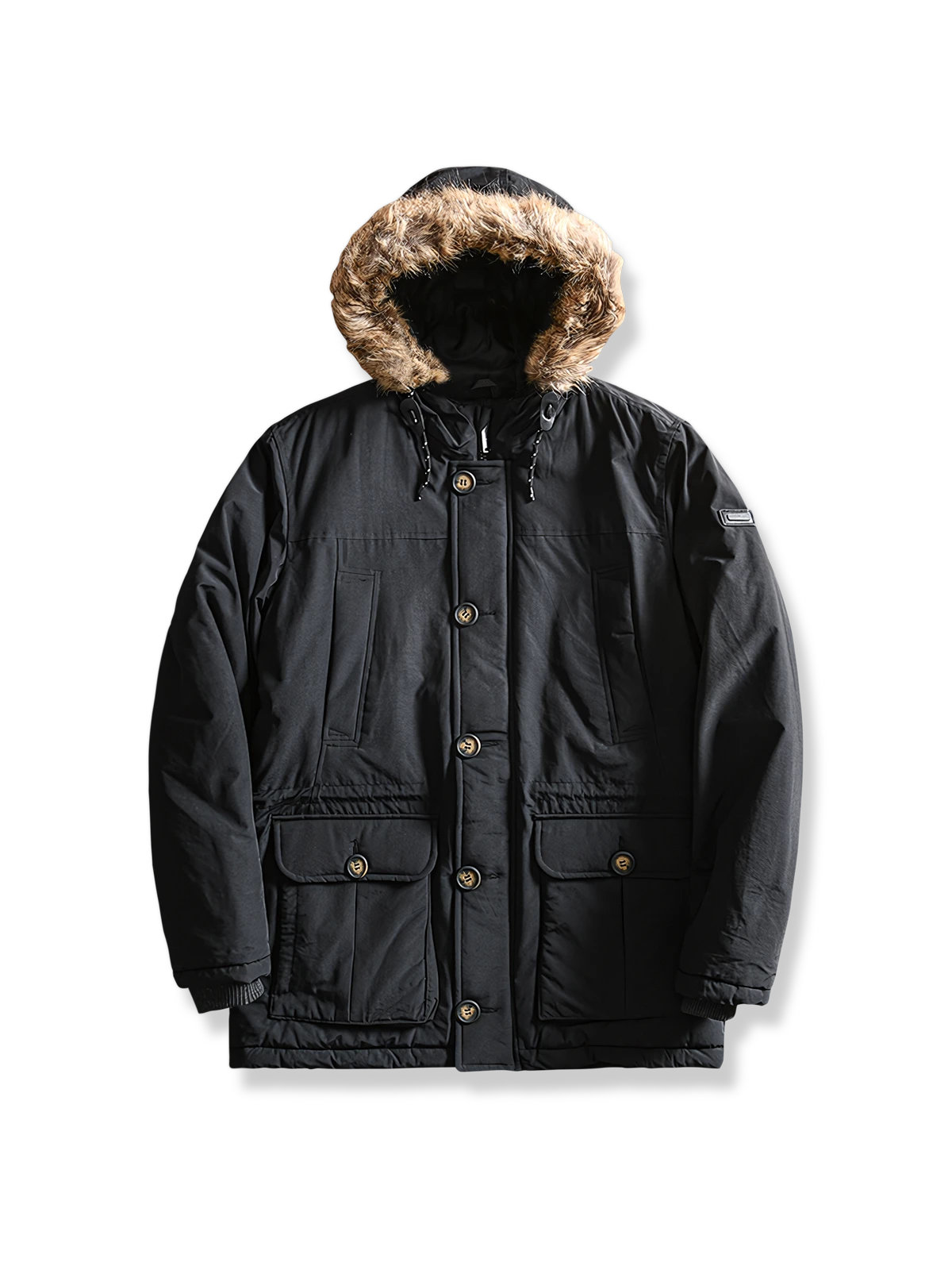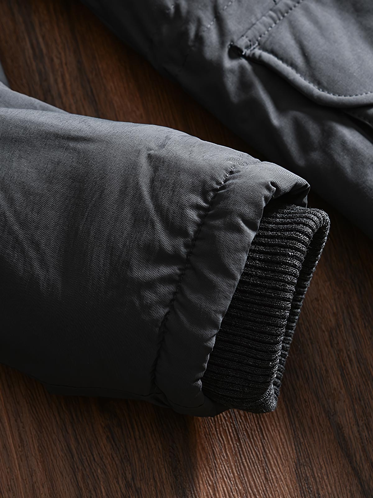 防風防水素材を使用したこのパーカは、寒風や細かい雨から守り、体をドライで暖かく保ちます。内側に詰められた保温用コットン素材は、低温環境でも安定した暖かさを提供します。