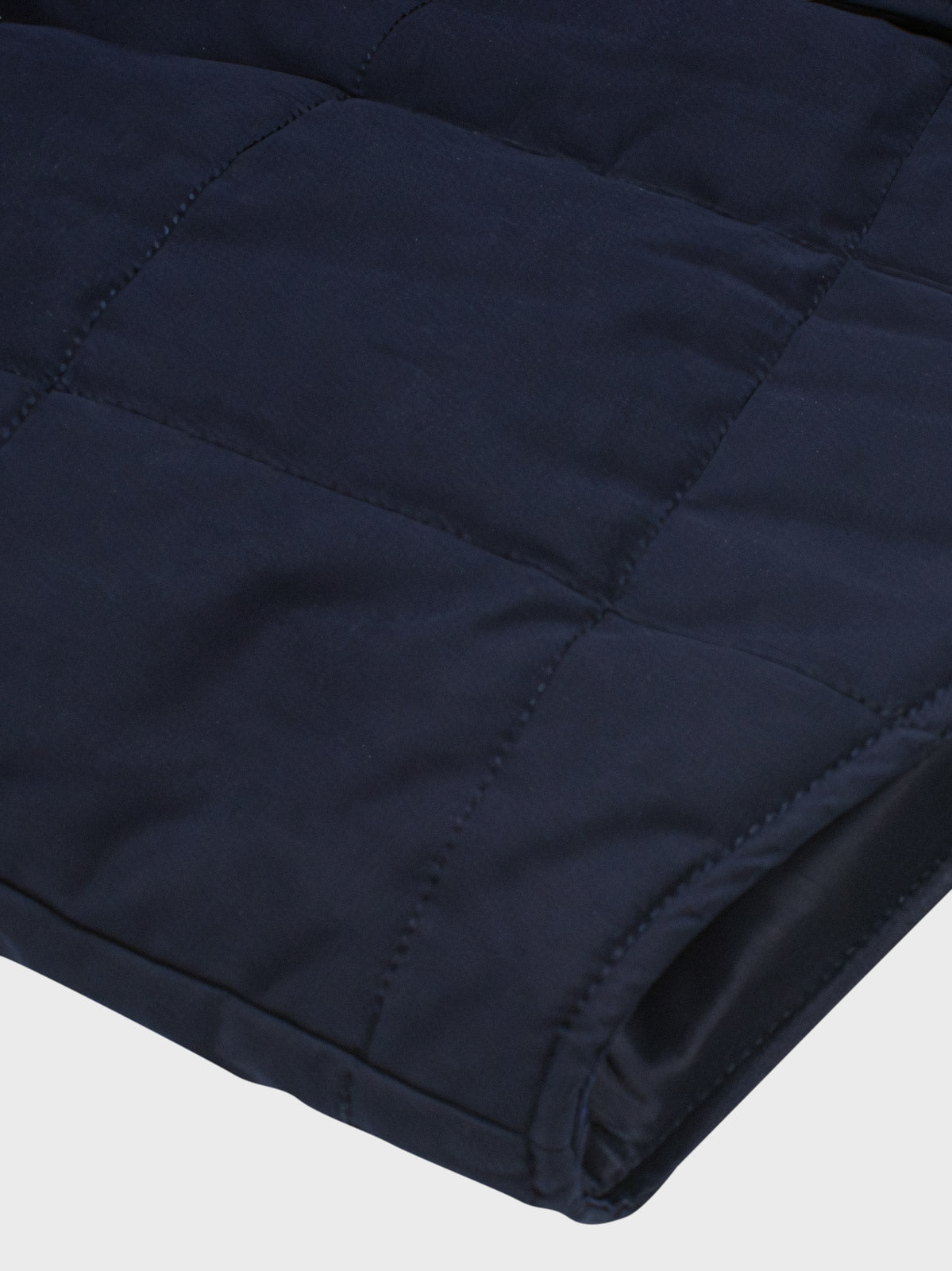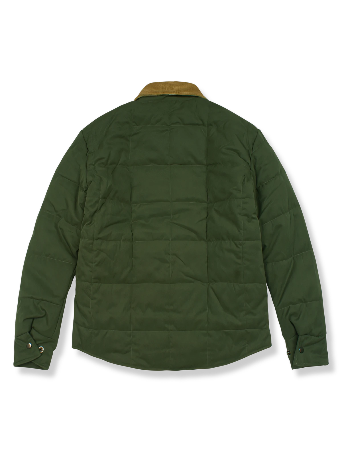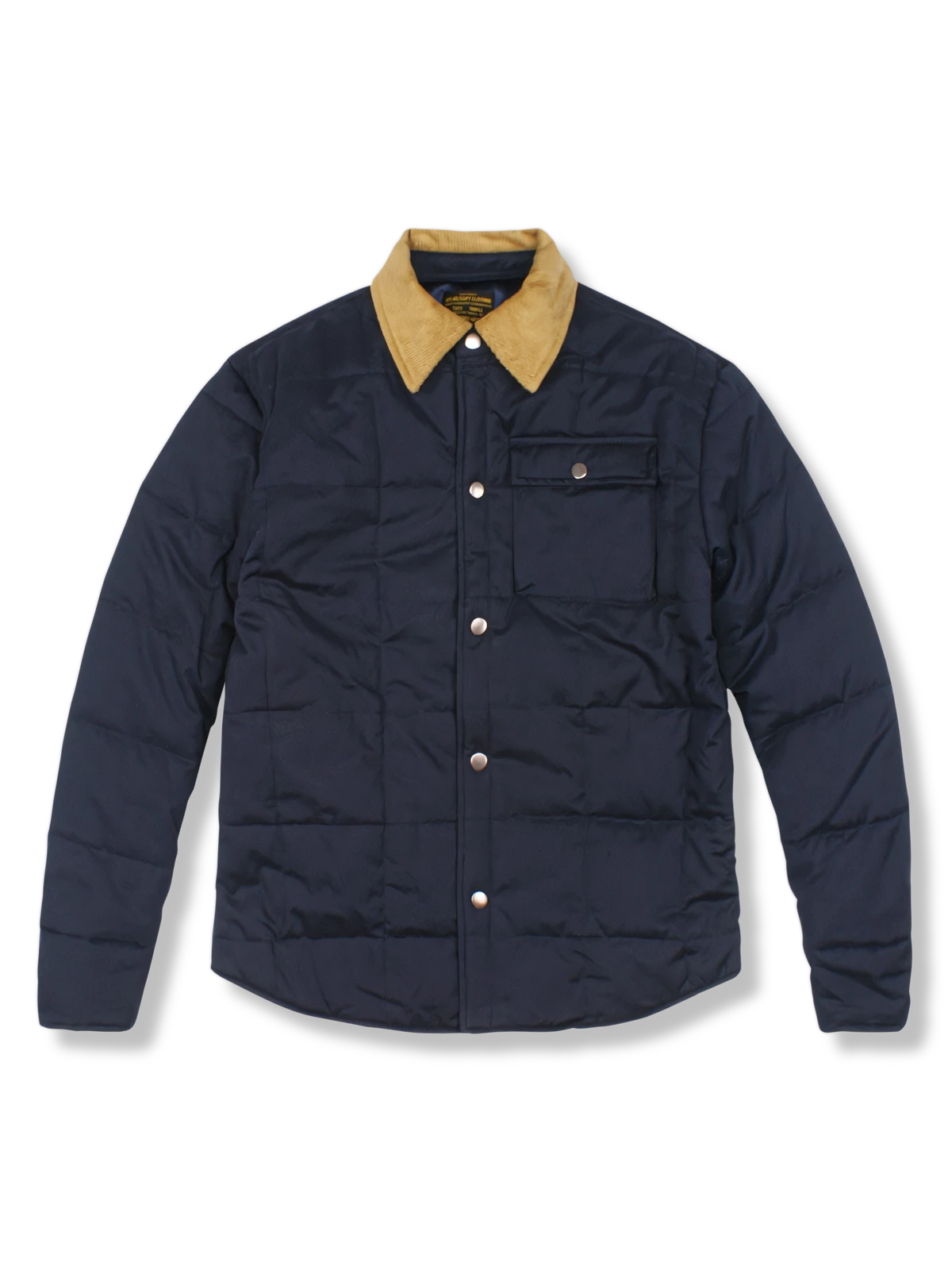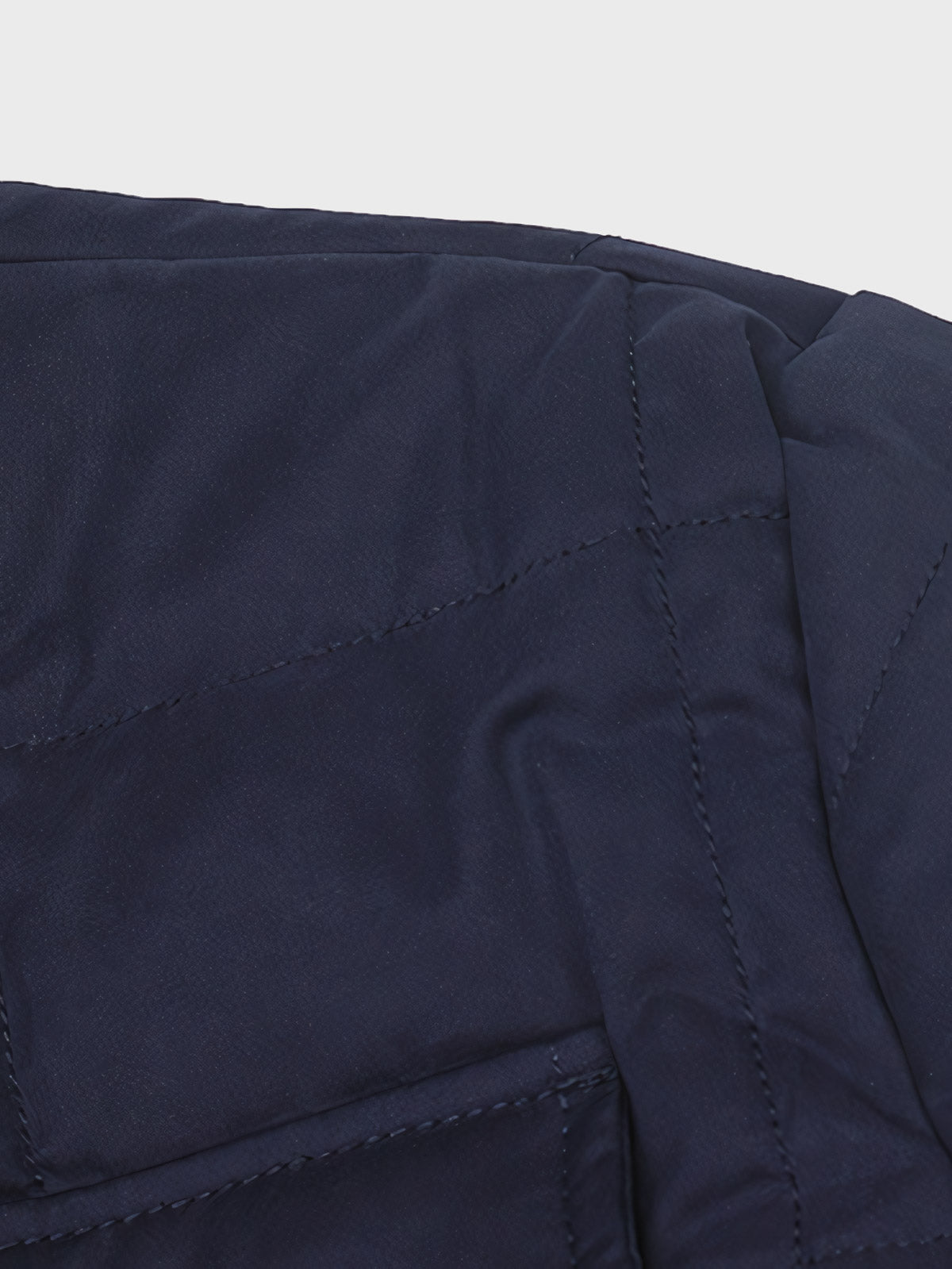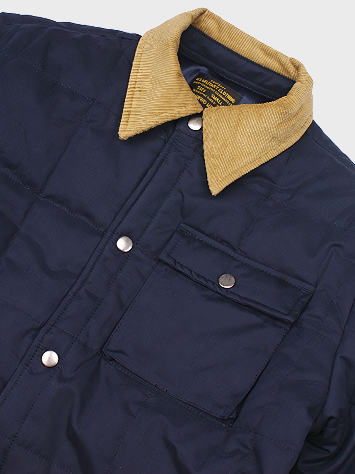このジャケットのメインカラーはダークブルーとダークグリーンで、茶色のコーデュロイの襟と対照的で、レトロなワークウェアスタイルとミリタリーデザインを想起させ、キルティングデザインは保温性を高めるだけでなく、クラシックなミリタリースタイルへの敬意としても機能します。