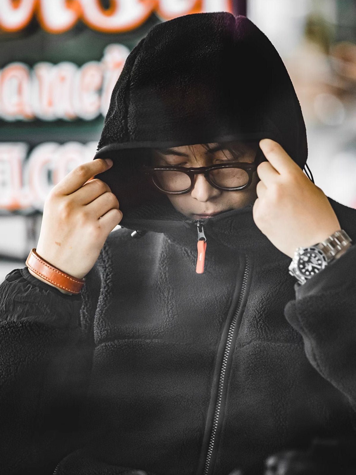 ゆったりとしたジャケットのシルエットとフード付きのデザインは、追加の保温性と快適さを提供します。フリース裏地は寒さからの保護を強化し、このジャケットを秋冬シーズンに理想的な選択肢にします。