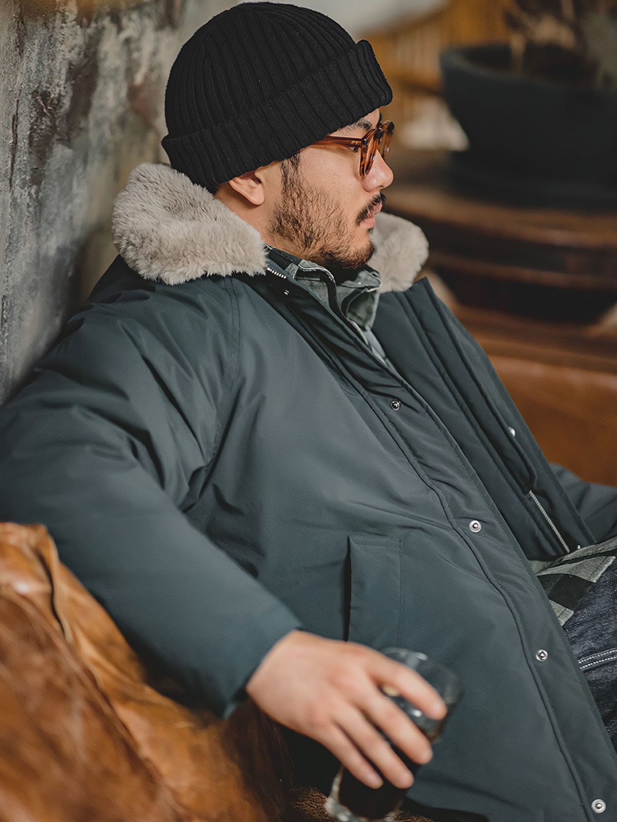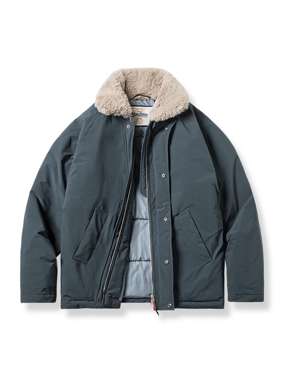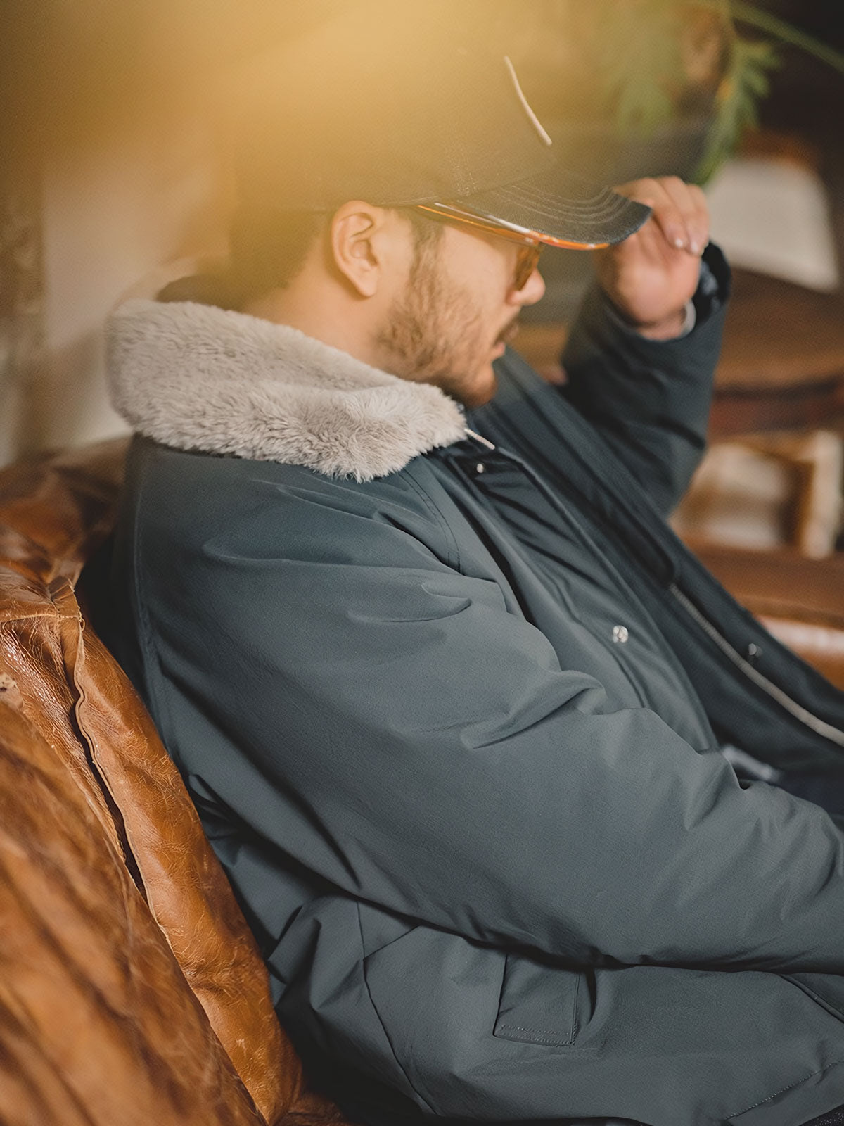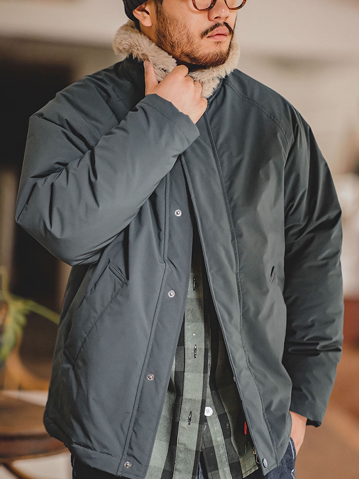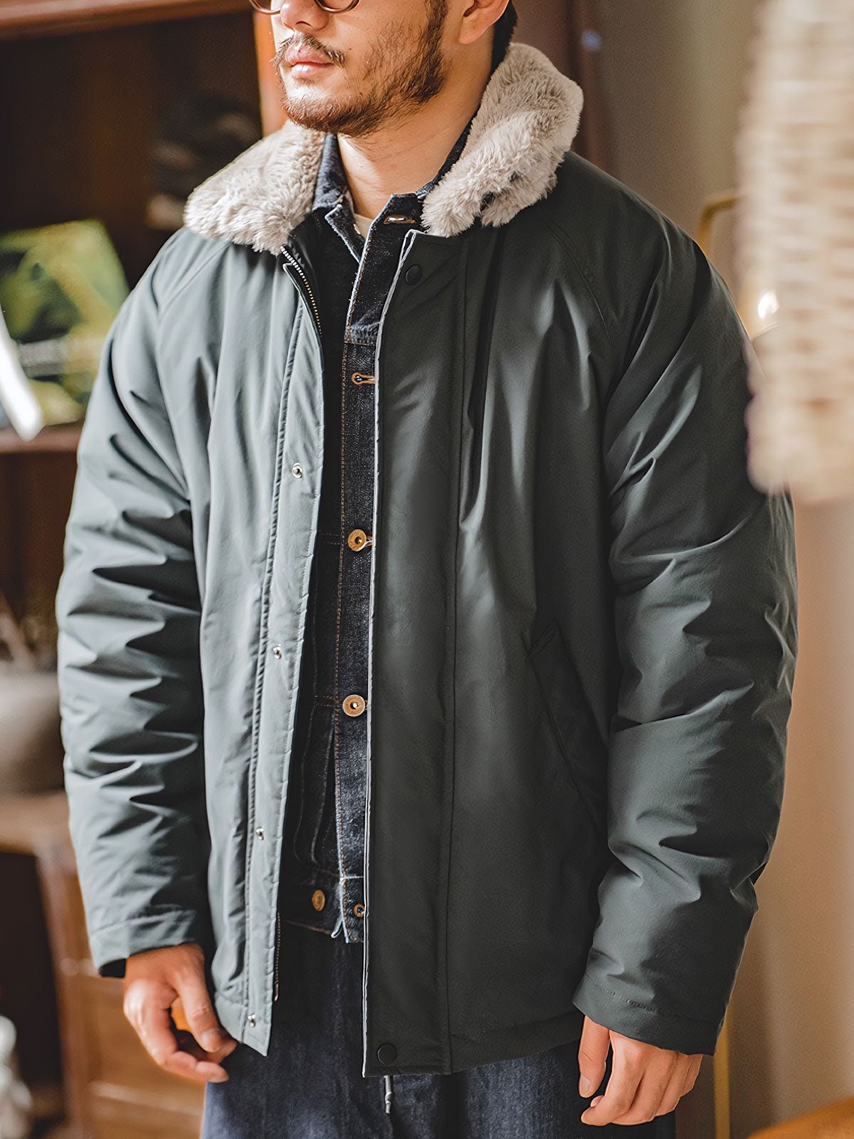 このコットンジャケットは、現代の都市スタイルとヴィンテージミリタリーエレメントの融合です。襟のデザインとファーのディテールは、20世紀中頃の軍用フライトジャケットのクラシックな要素へのオマージュとなっています。ファーカラーは暖かさを提供するだけでなく、歴史的なデザインへの敬意を表しており、伝統と現代スタイルを融合させたデザイナーの独創性が反映されています。