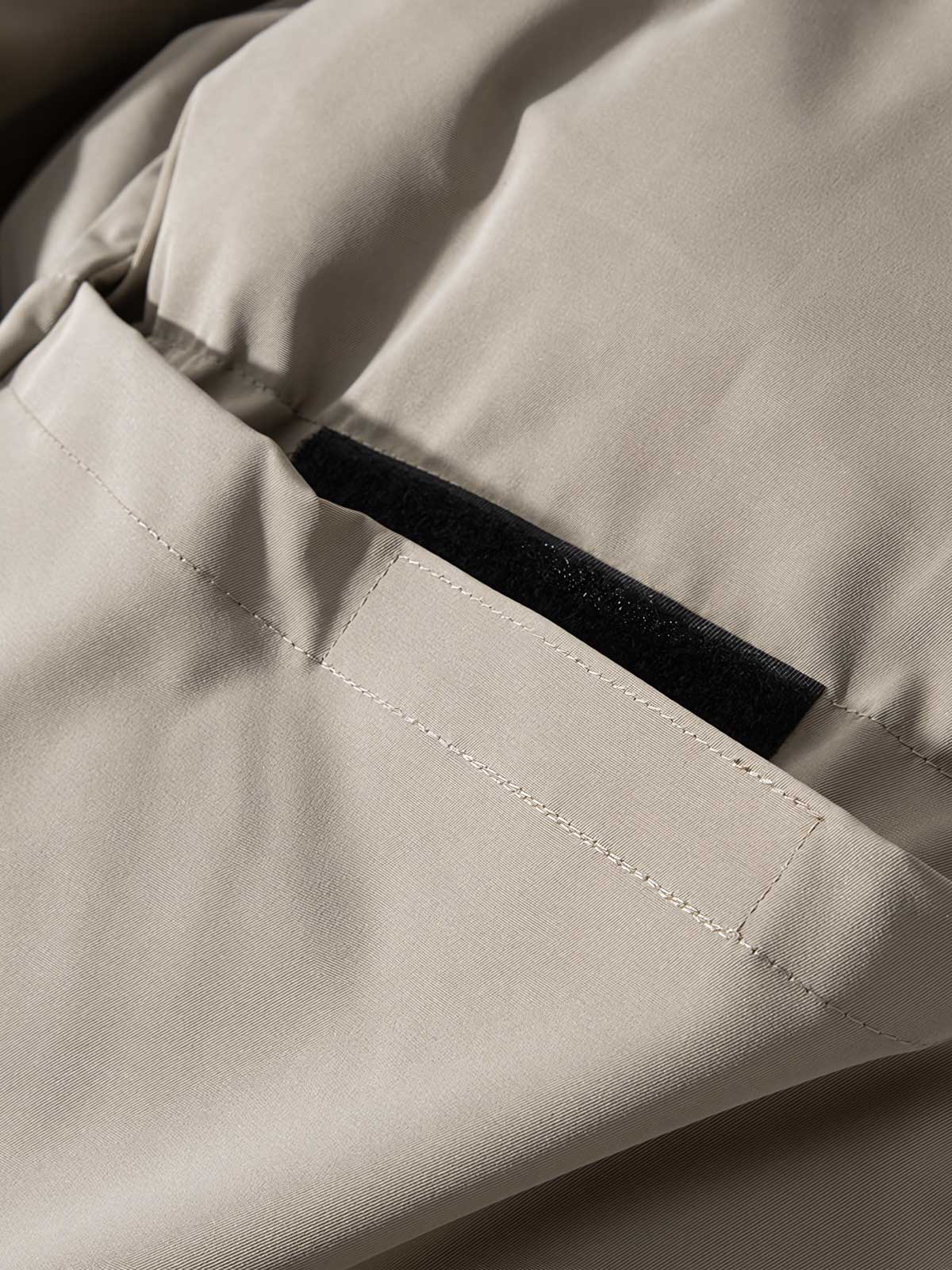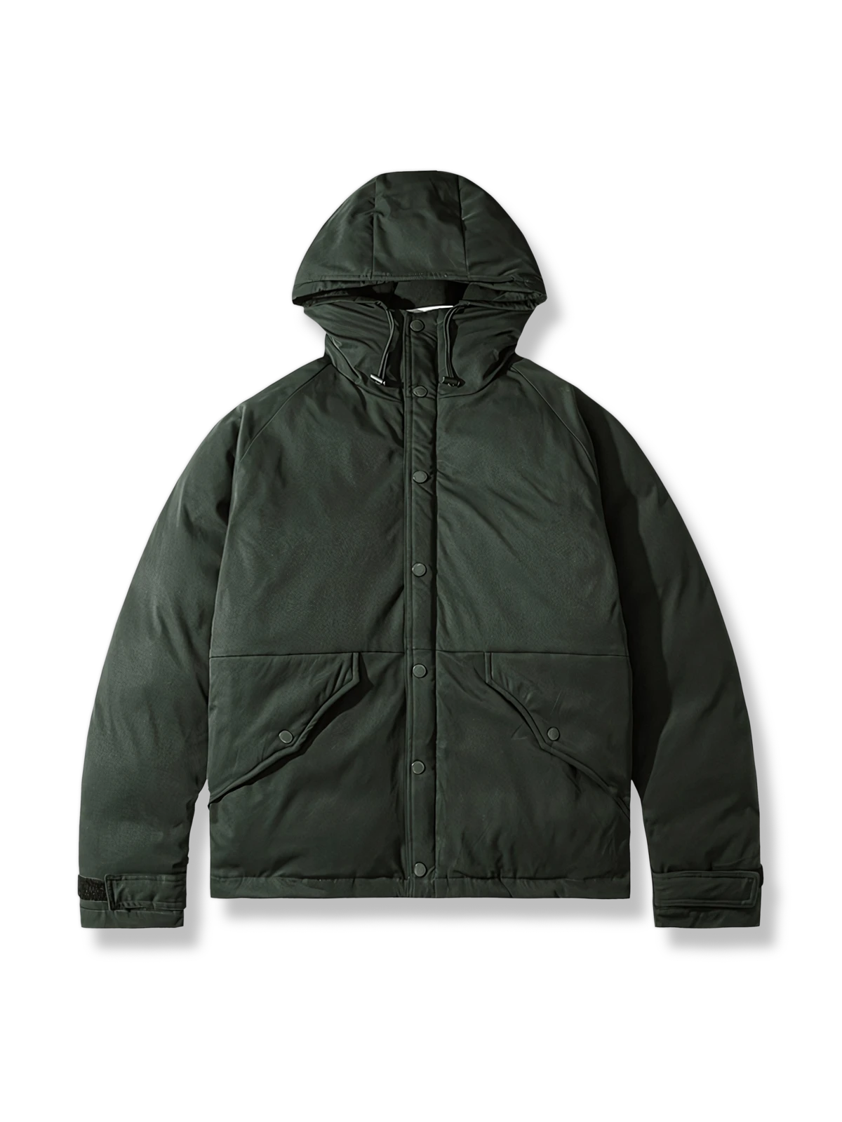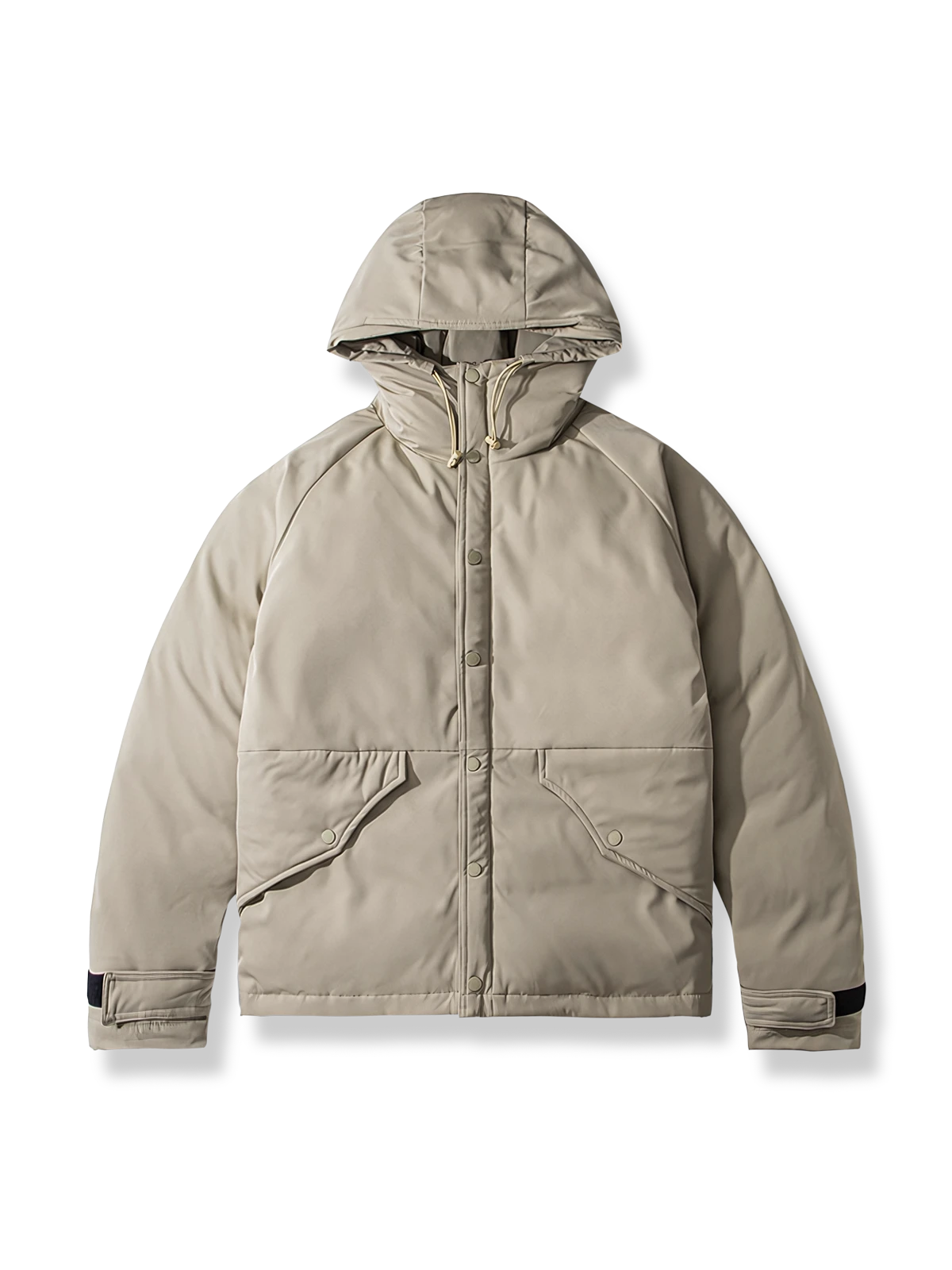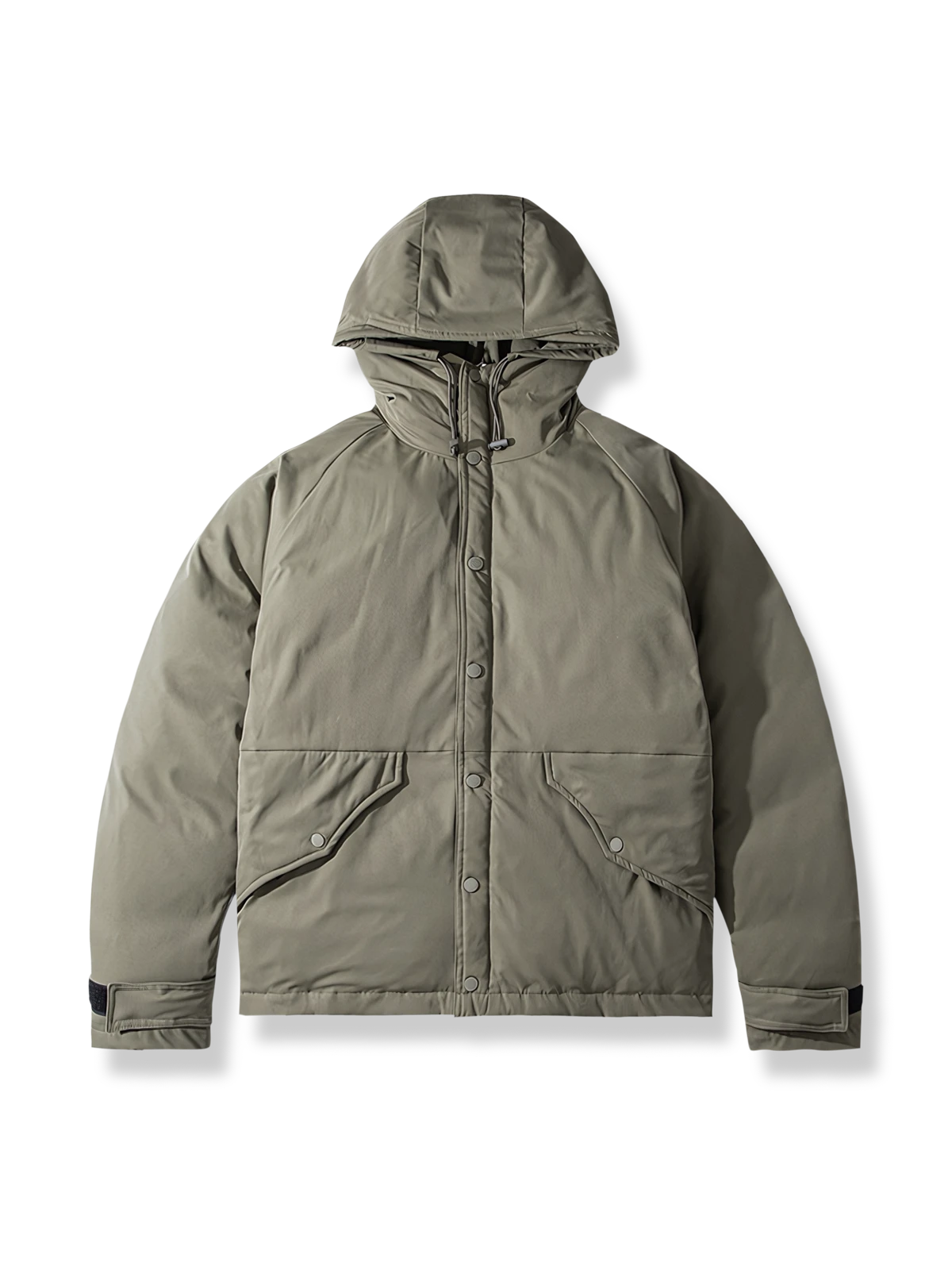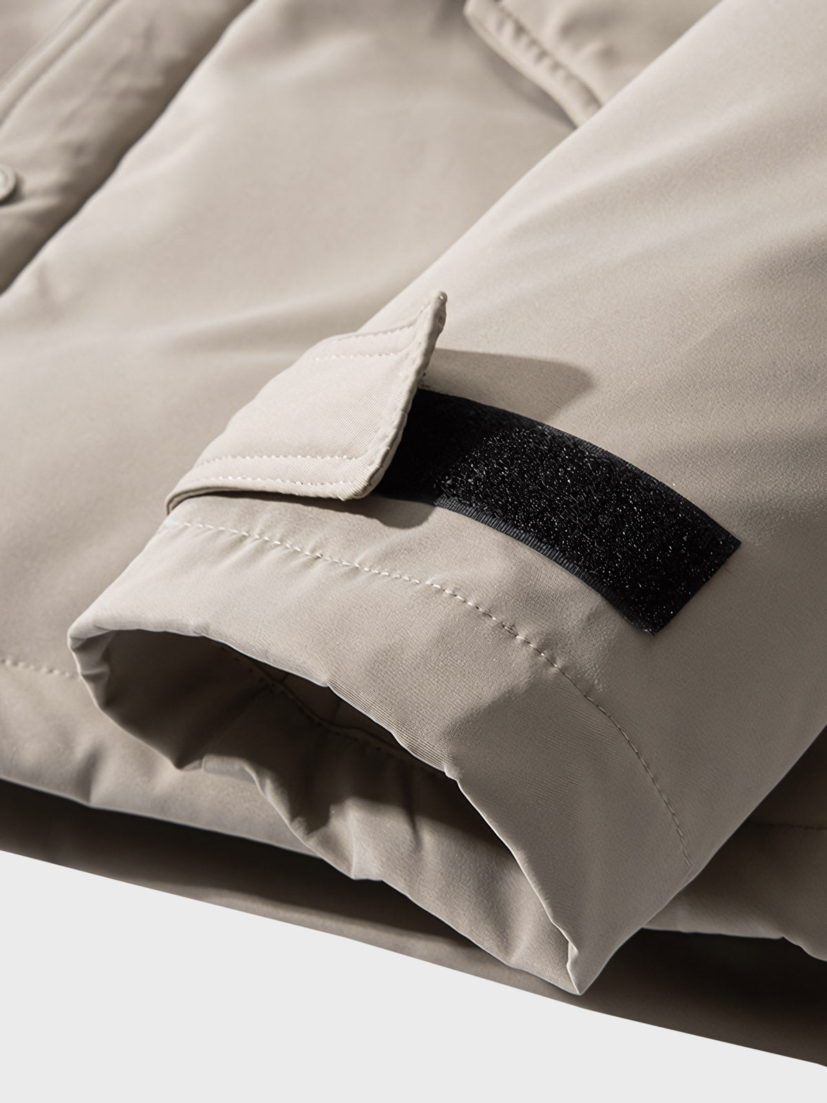 ECWCS(Extended Cold Weather Clothing System)は、軍用レベルの多層服装システムで、極端な天候条件下での兵士の保護を目的としています。このダウンパーカは、類似のデザインコンセプトを採用しており、耐久性と保温機能に重点を置いており、アウトドアアドベンチャーや厳しい気候の環境に適しています。