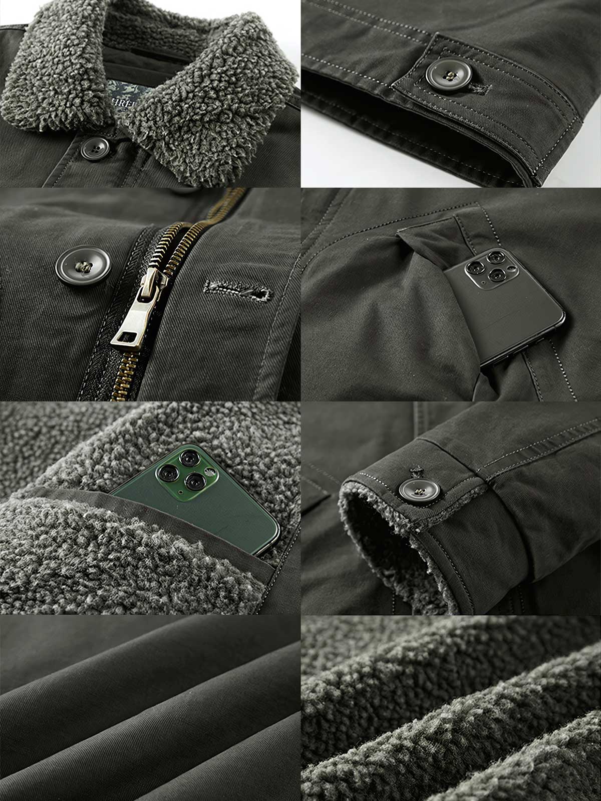 高品質のコットン素材を使用しており、耐摩耗性があり、お手入れが容易です。柔らかいシャーリングウールの襟は暖かさを提供し、異なる温度やスタイルに合わせて折り返すことができます。前面の大きなポケットと精巧にデザインされたボタンは実用性を高めています。