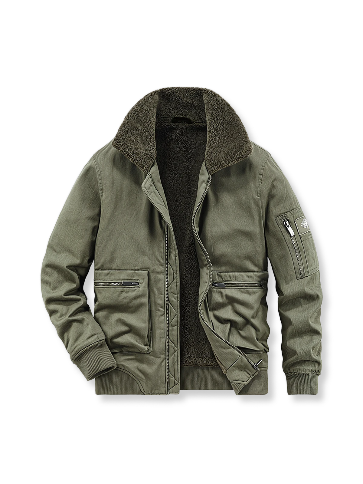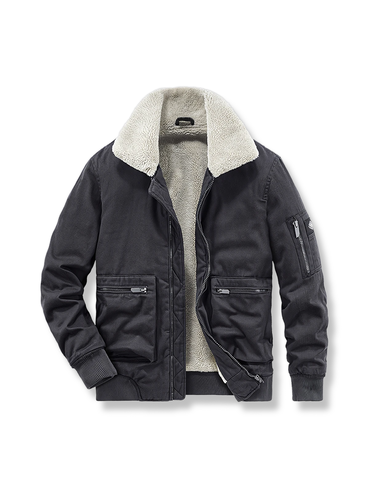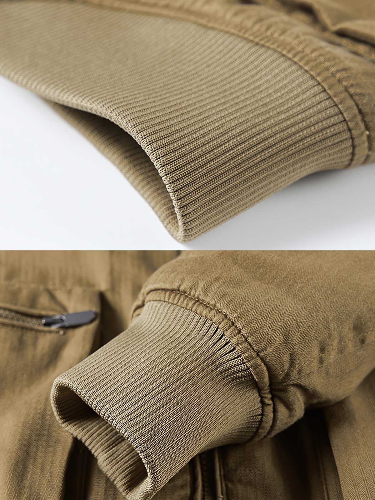 伝統的なフライトジャケットには、典型的なジッパークロージャー、ゆったりした袖口、リブ編みの裾、強化された耐摩耗性が特徴です。このアビエータージャケットはこれらのクラシックな要素を保持しつつ、フリースの裏地を加えることで、保温性を高めています。