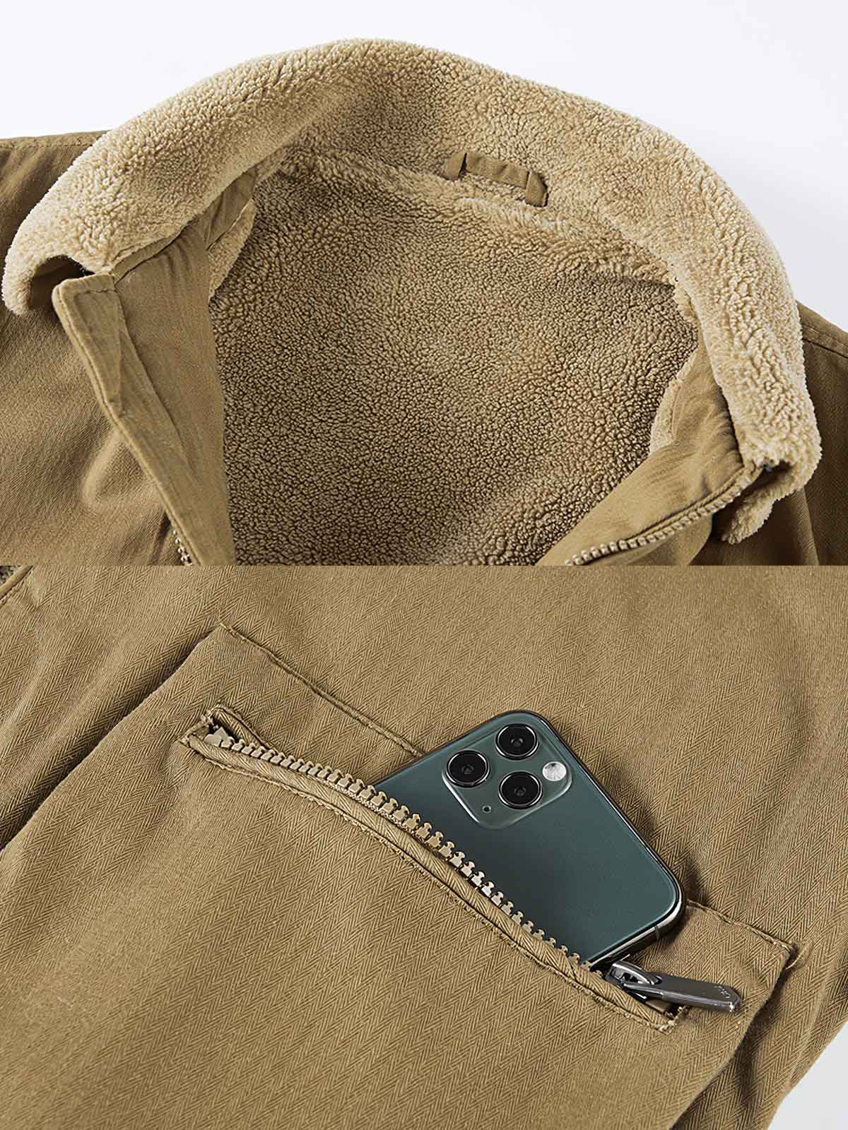 内側のフリースは、機能面で保温効果を高める、色の選択には、ダークグレー、タン、ライトミリタリーグリーンがあり、さまざまな個人のスタイルやシーンに適しています。