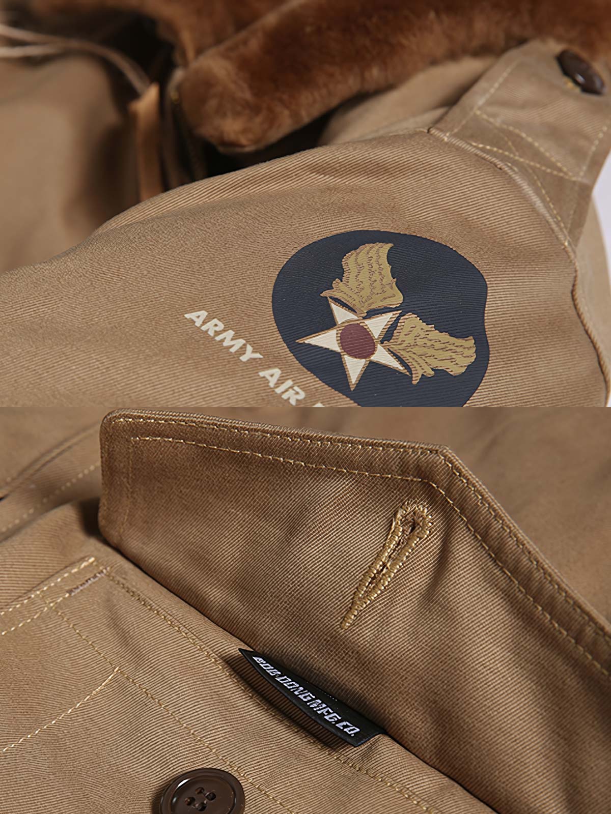 B-10ジャケットは耐久性のあるコットン素材を使用し、アウターの耐摩耗性と長寿命を保証しています。フロントのポケットと肩のバッジディテールは実用性を加えるだけでなく、その軍事的な起源に敬意を表しています。ウールの内部のほかに、悪天候に耐えつつ透气性を保つために、ジャケットの主な素材も丹念に選ばれています。