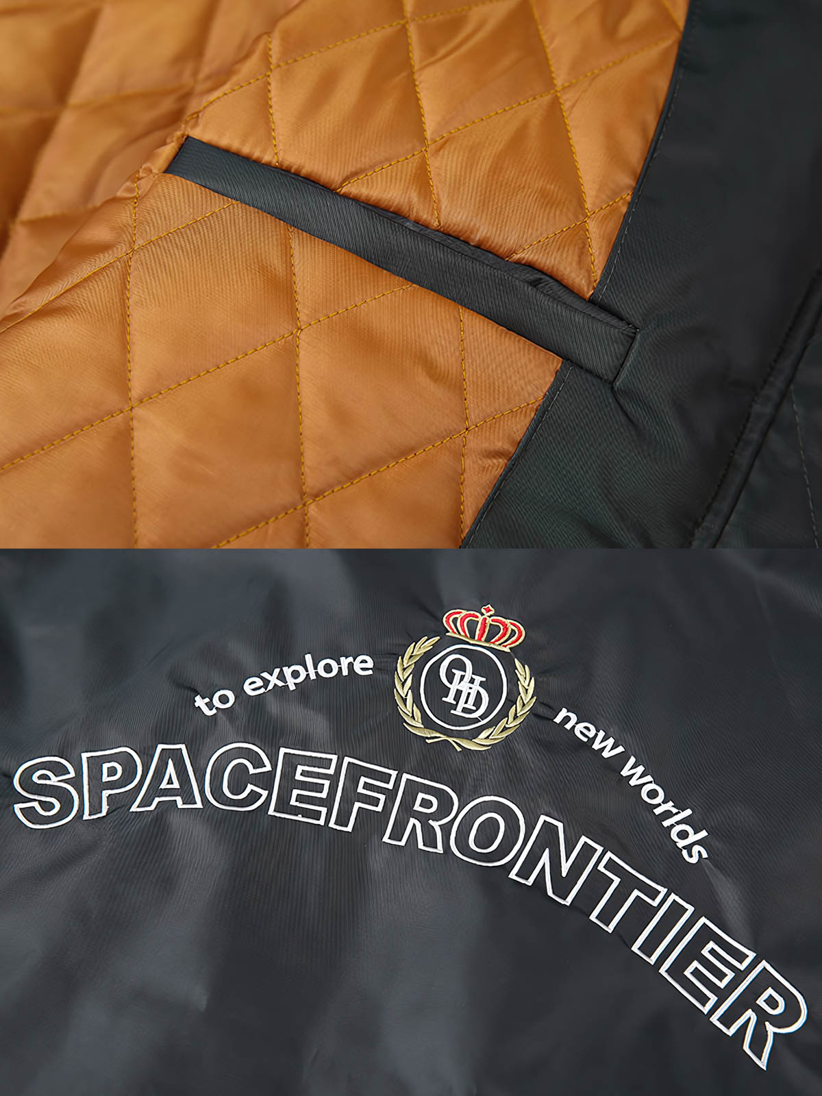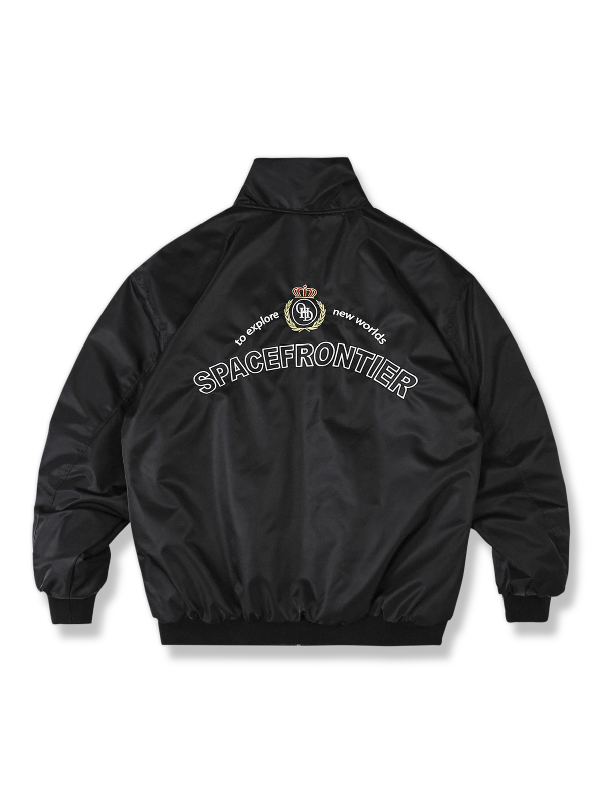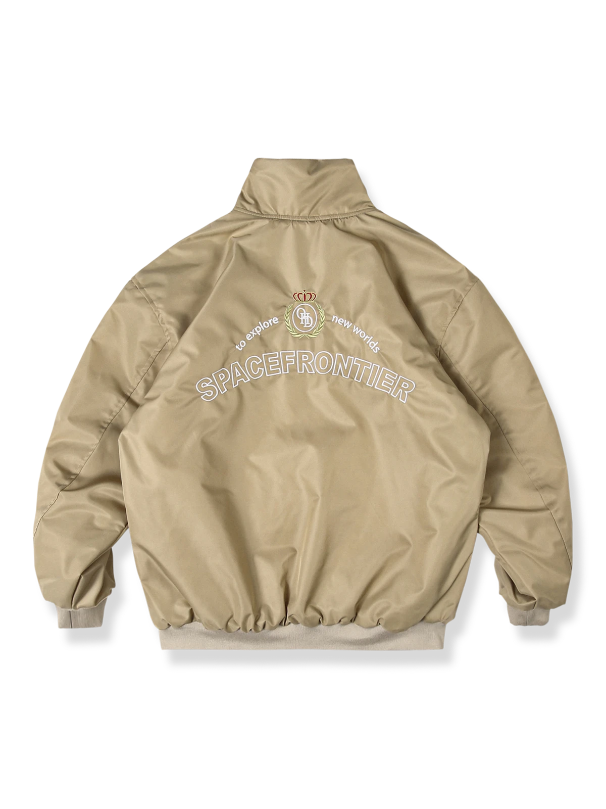 クラシックなパイロットジャケットからインスピレーションを得たこのショートコットンジャケットは、航空服の歴史的エッセンスを受け継ぎ、探検テーマを取り入れています。背面に刺繍された“To explore new worlds, SPACEFRONTIER”という言葉は、未知の領域を探究する勇気を意味し、現代の探検家の精神を体現しています。