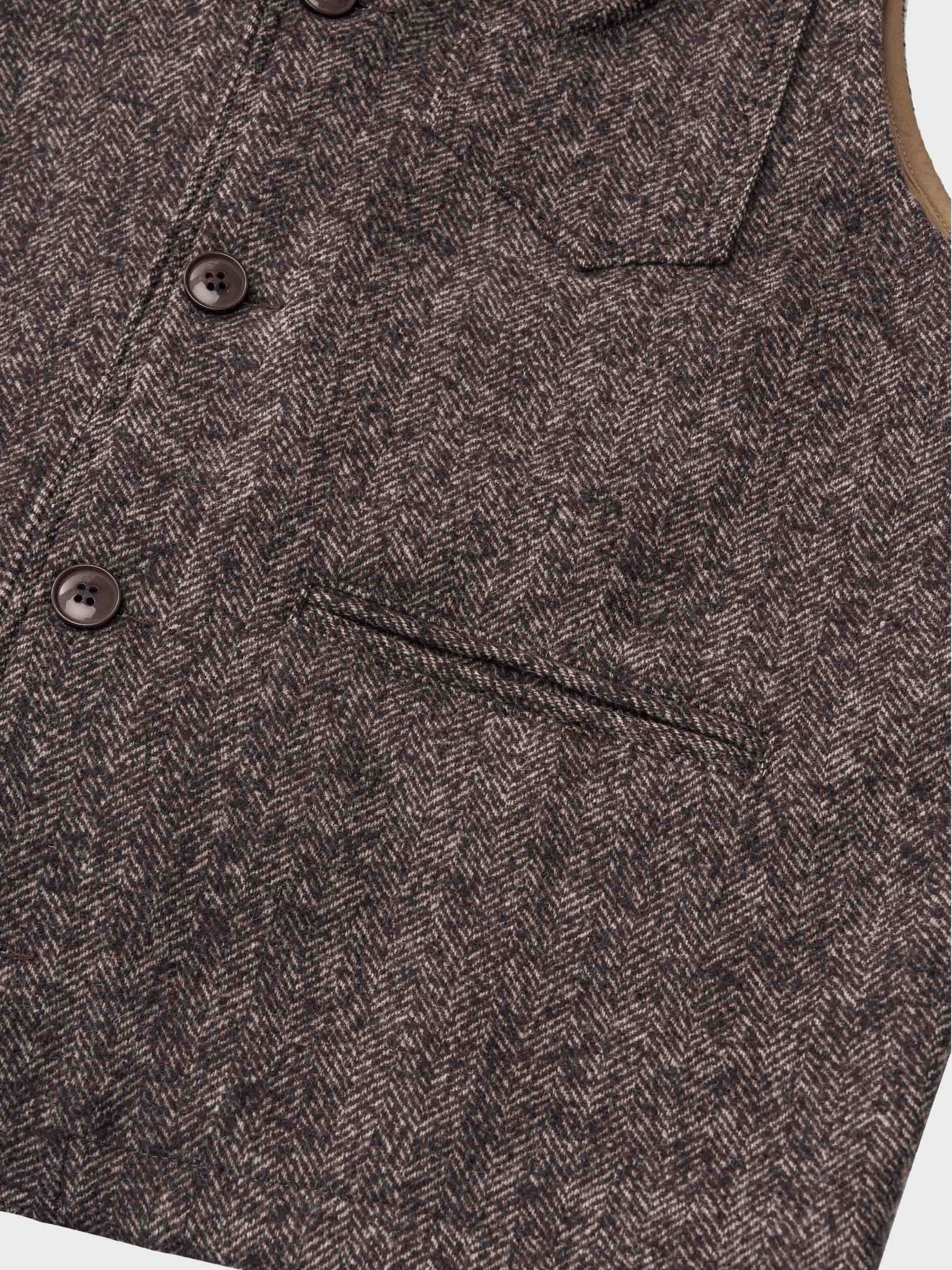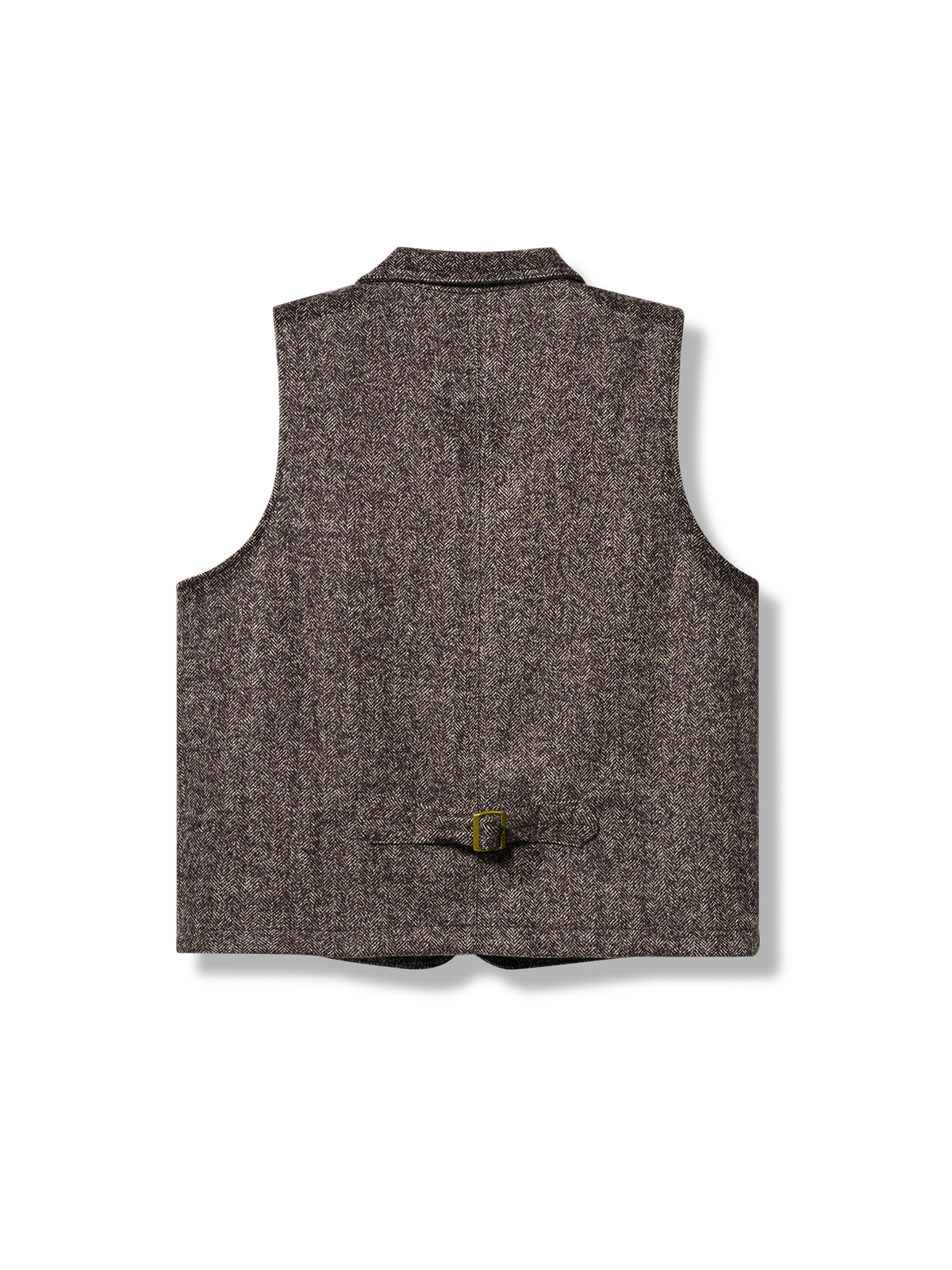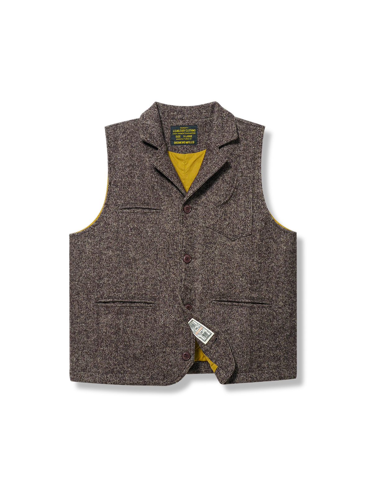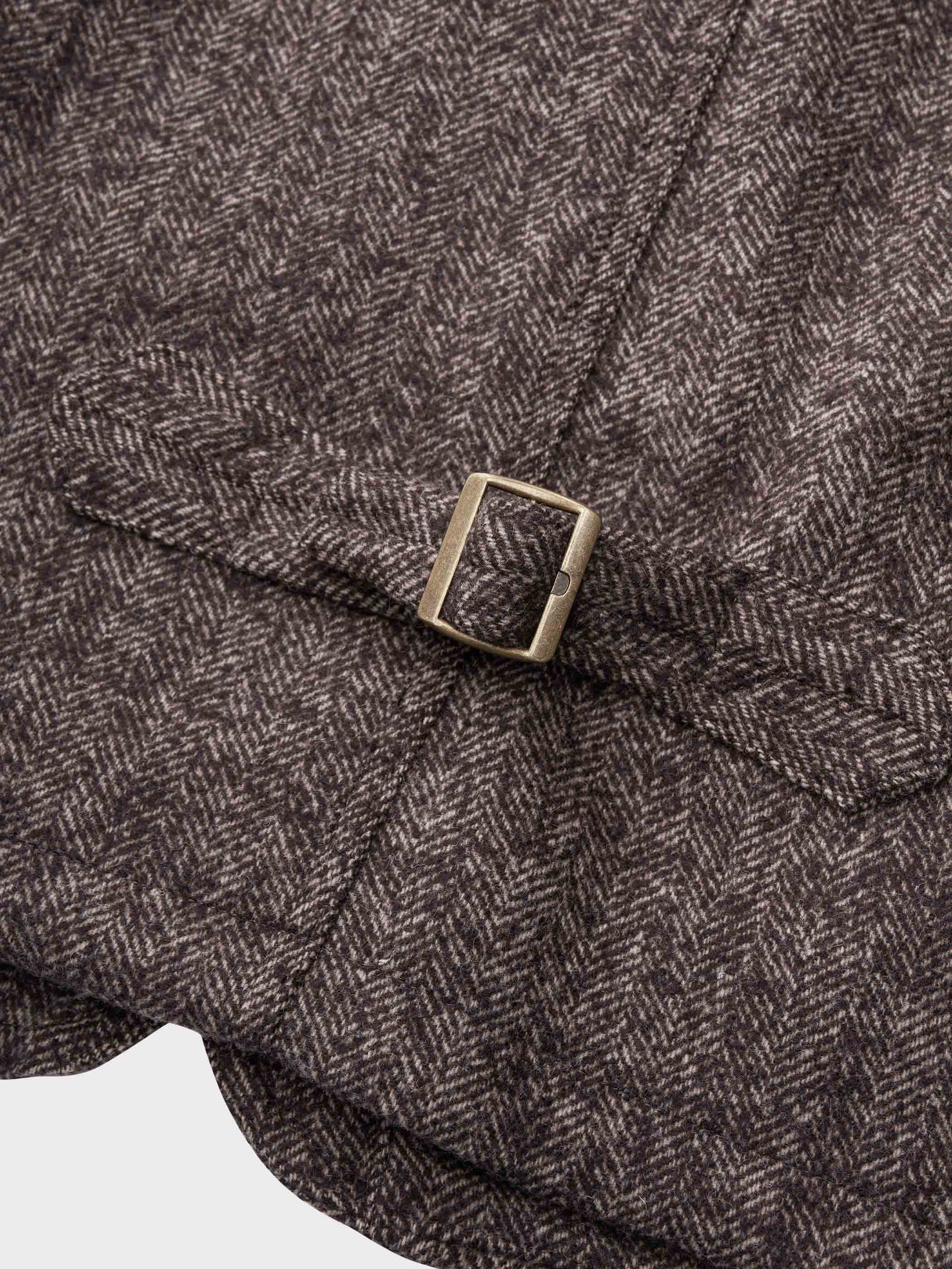 オーダーメイドしたジェントルメン服の風合いと似合うヴィンテージ感ボタン付き、後ろの調節ベルトもご自分のニーズと好みで着る感じを調節可能。