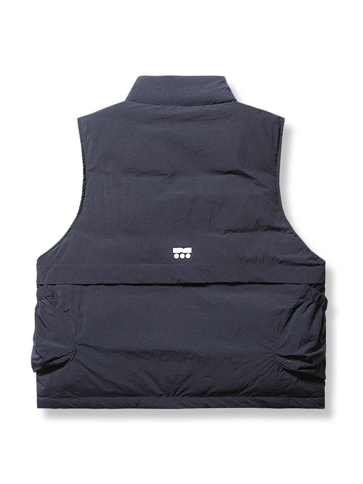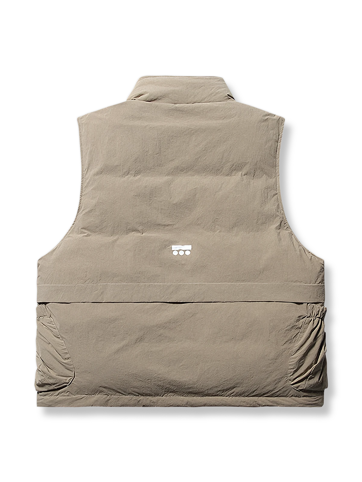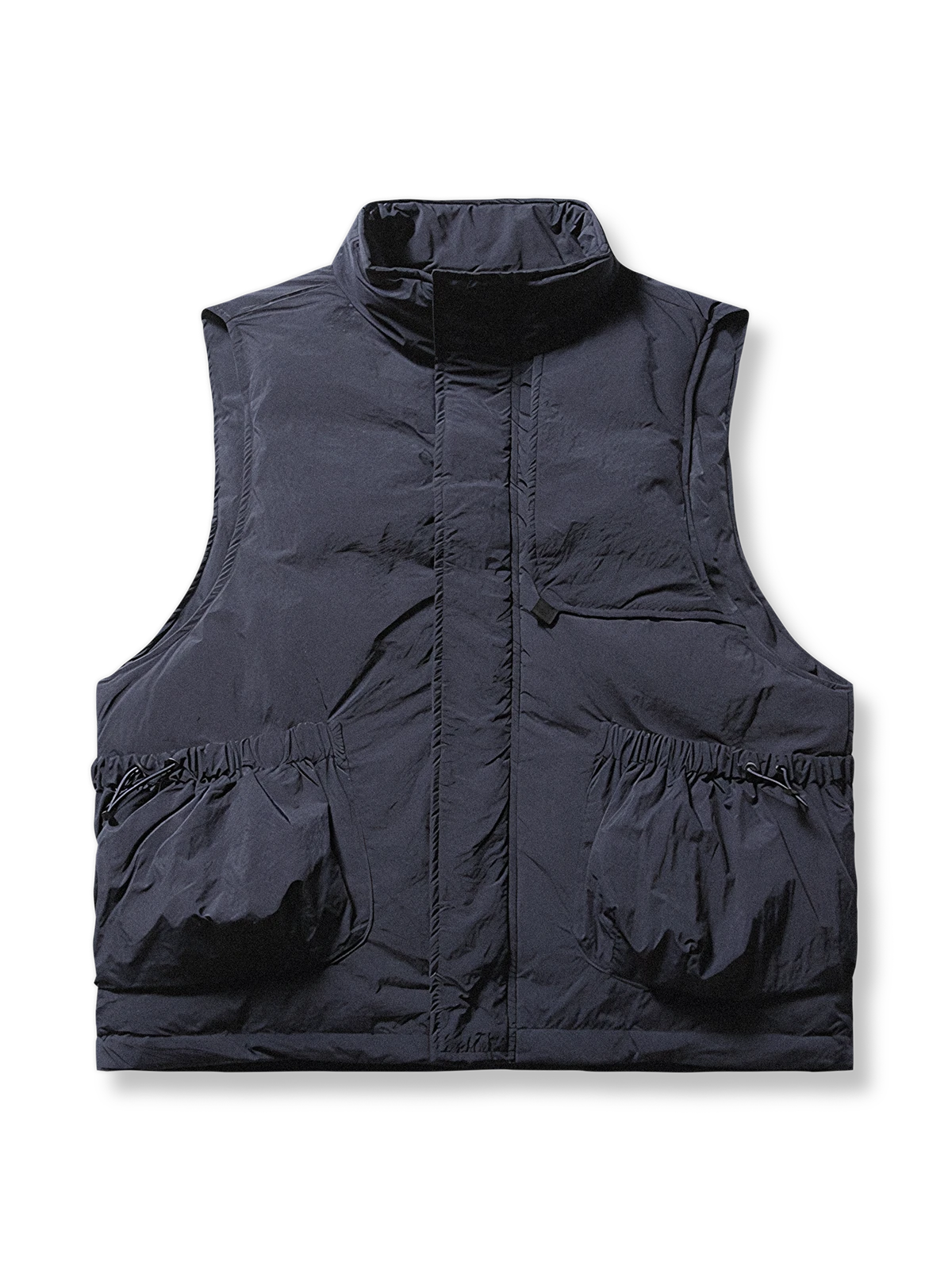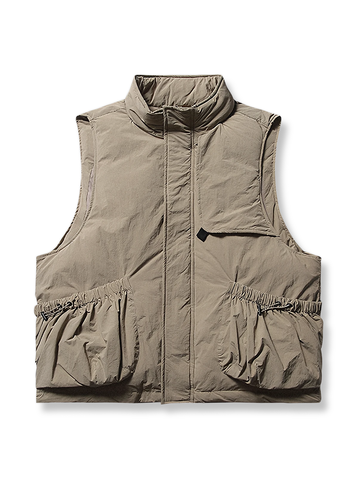 このスタンドカラーベスト型のダウンジャケットは、秋から冬まで非常に便利です。