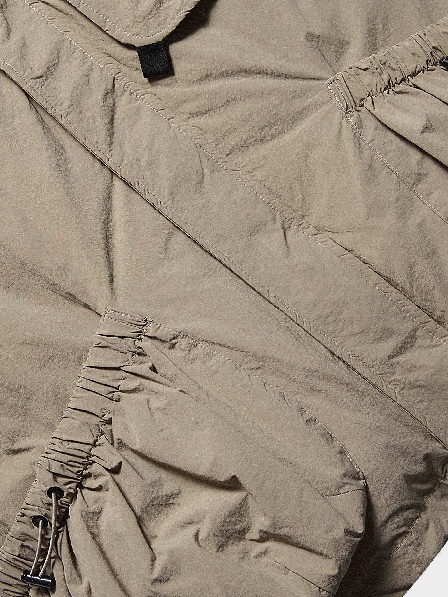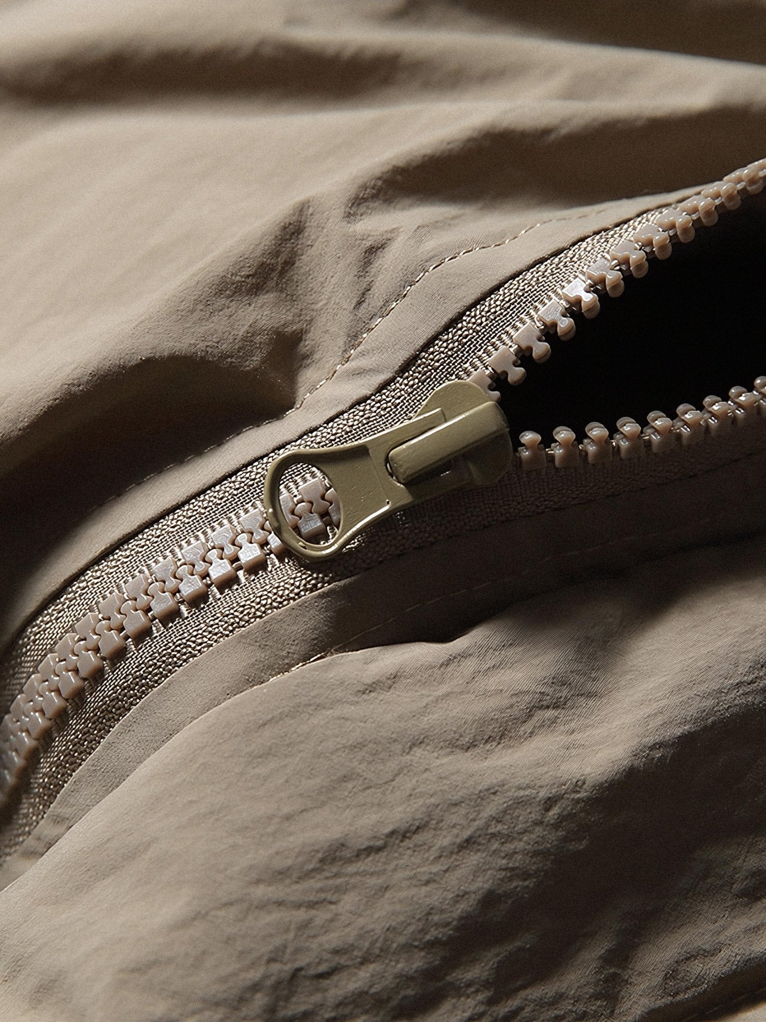 2つのポケットはゴムバンドでデザインされており、煩わしいボタンやジッパーの操作を省きながらも、小物を安全に収納することができます。前部のファスナーには遮蔽デザインが施され、全体の外観にデザイン感をもたらしています。