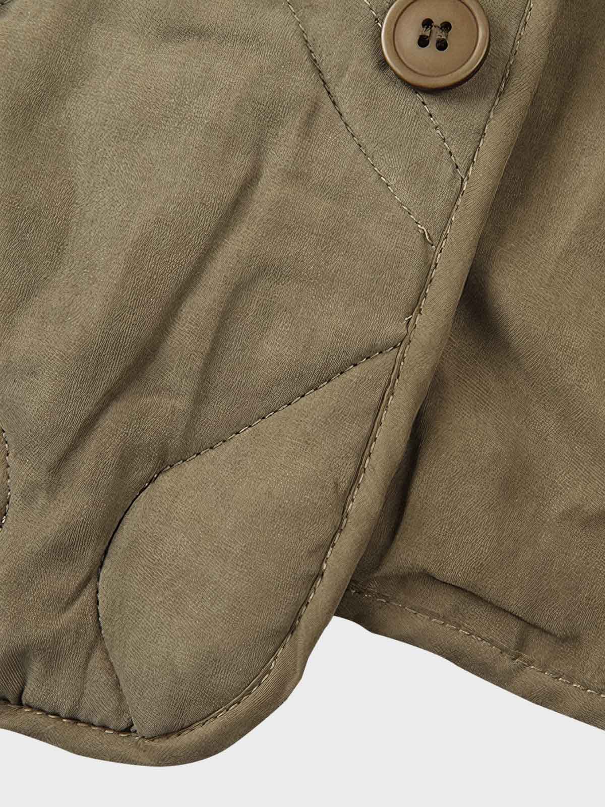 この中綿ハンティングベストは、マルチポケットデザインとキルティング技術を特徴とし、実用性とレトロスタイルを際立たせています。キルティングは、防寒衣料によく用いられる伝統的な縫製技術であり、多くのポケットはアウトドア活動での便利さを考慮しています。ポリエステル素材の使用は、ベストの軽量性と耐久性を保証しています。