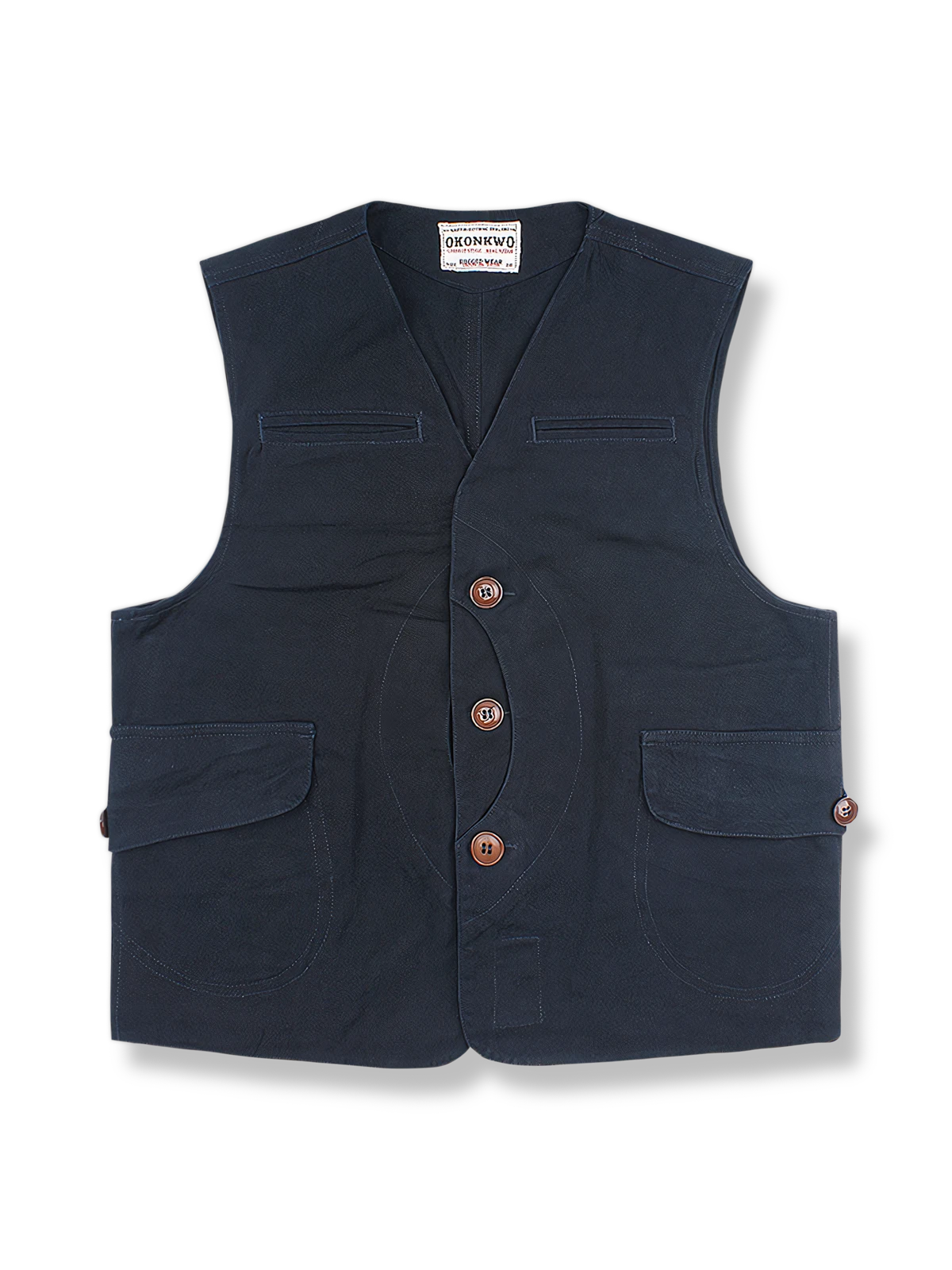 このベストは、クラシックなワークウェアスタイルと実用主義のデザインコンセプトを融合しています。伝統的な労働者の衣服に触発され、現代の都市生活に必要なアイテムの持ち運びや素早い使用に適しています。