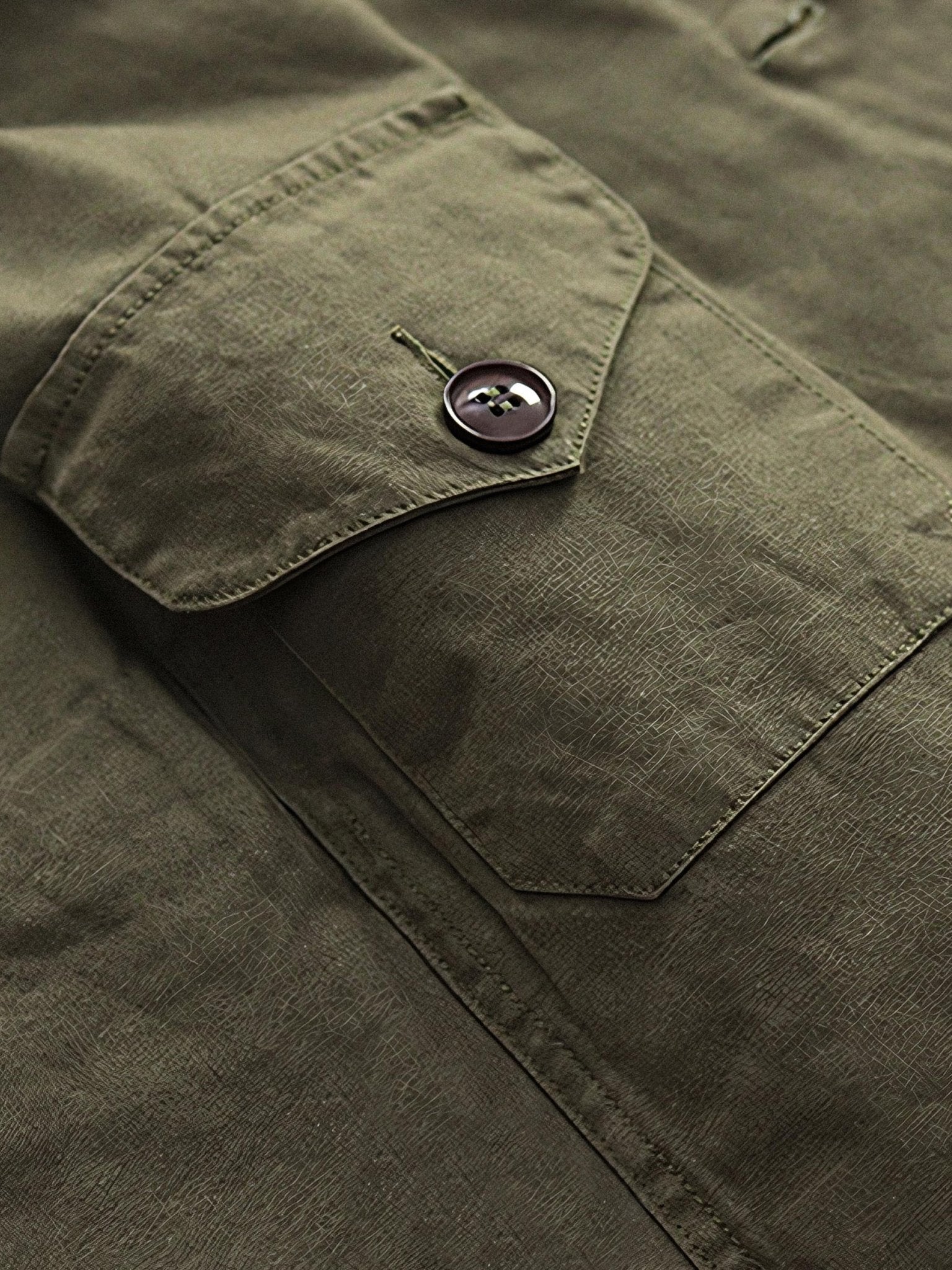 クラシックなデザインの実用的なマルチポケットスタイルを受け継いでおり、左右には狩猟ジャケットの大型フラップポケットがあり、前面には月形ポケットのカットが施され、内側には中型のフラップポケットも設けられています。
