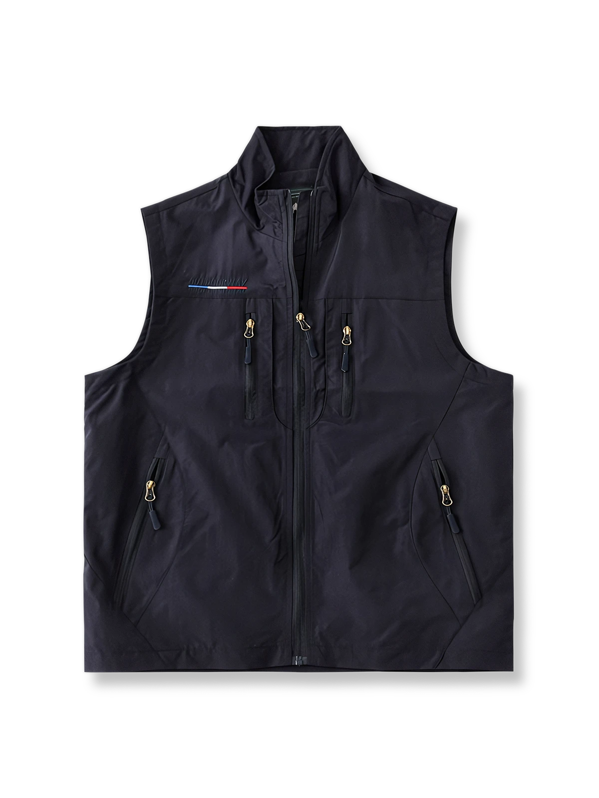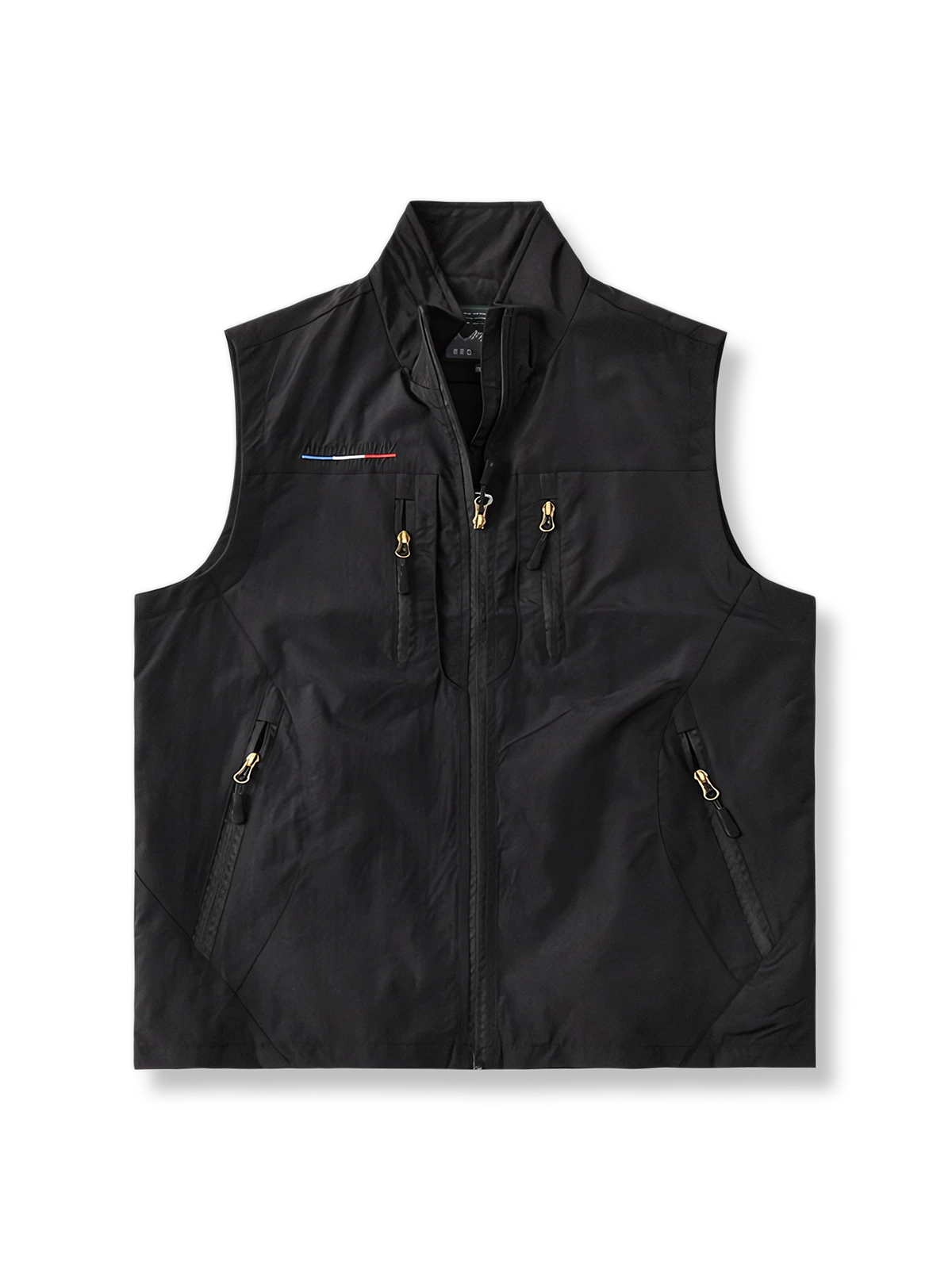 このベストはスタンドカラーデザインを採用しており、首元のラインを引き締めるだけでなく、紫外線からも守ってくれます。胸元にはエンボスデザインが施され、視覚的な魅力を高めています。さらに、全身に多くのファスナーポケットが配置されており、登山、釣り、写真撮影などのアウトドア活動に最適な多機能ベストとなっています。