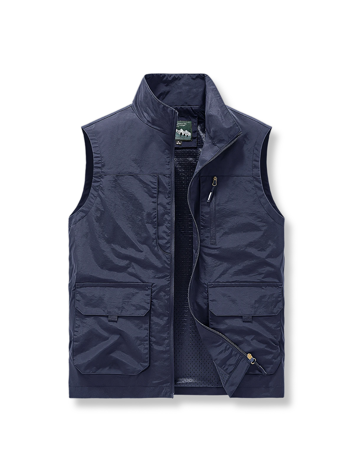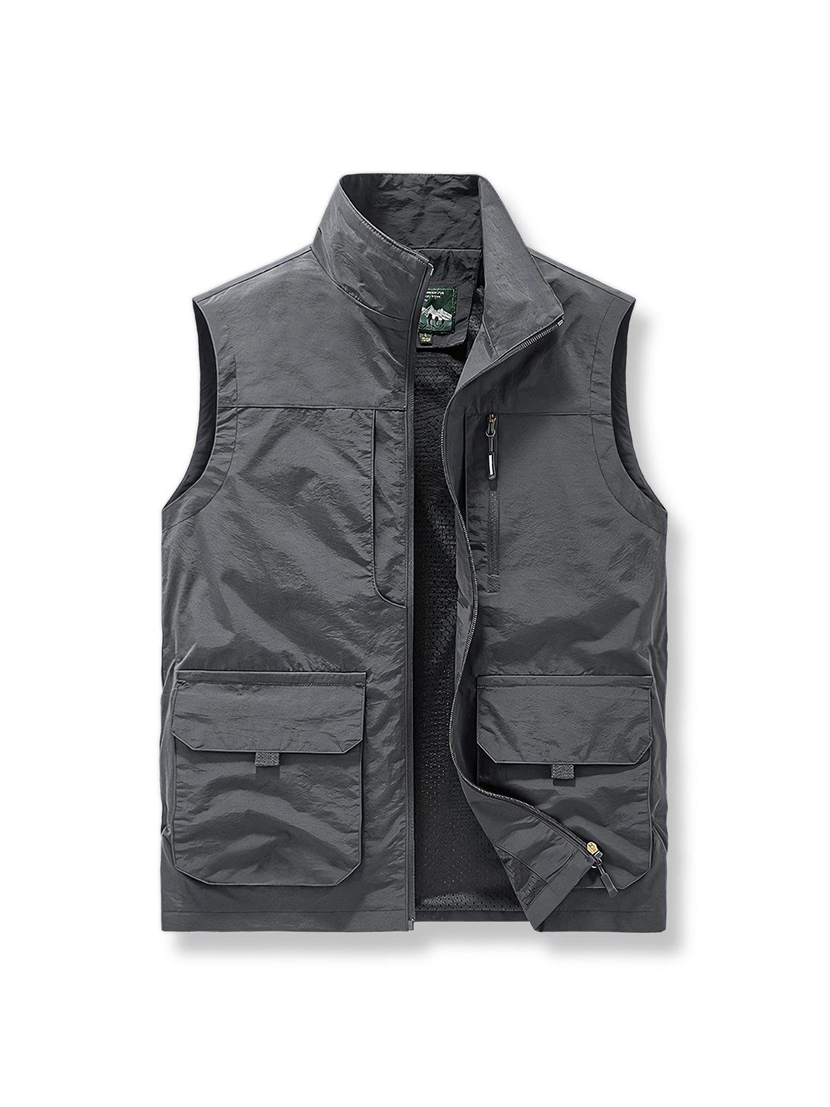 このベストは快適でフィット感のあるカッティングで、立ち襟は様々なアウトドアシーンに適しており、活動中の自由と快適さを提供します。