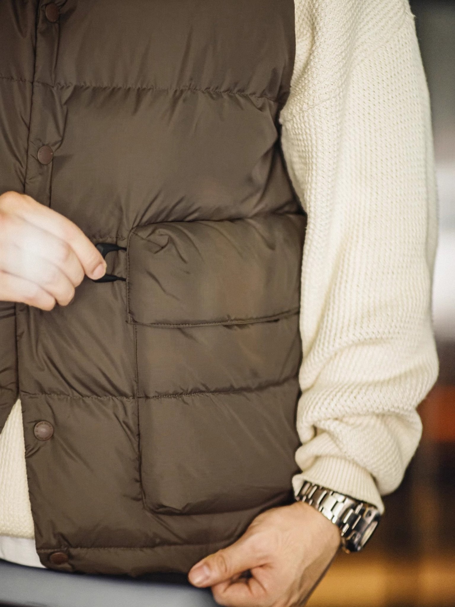 このダウンベストは内部に優れた品質の90%ホワイトダックダウンを詰め込んでおり、優れた保温性を提供します。さらに、二重のPET繊維により、ベストは軽量かつ薄手でありながら、保温性を維持し、着用者に快適な体験をもたらします。