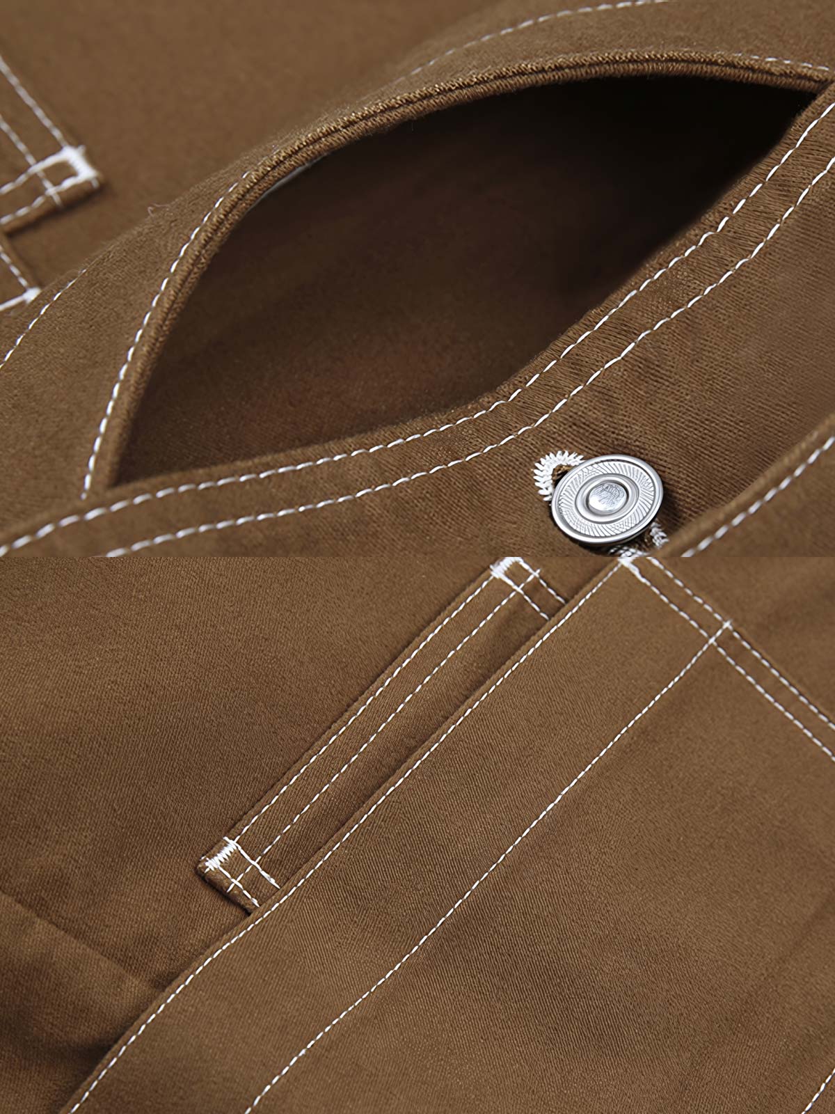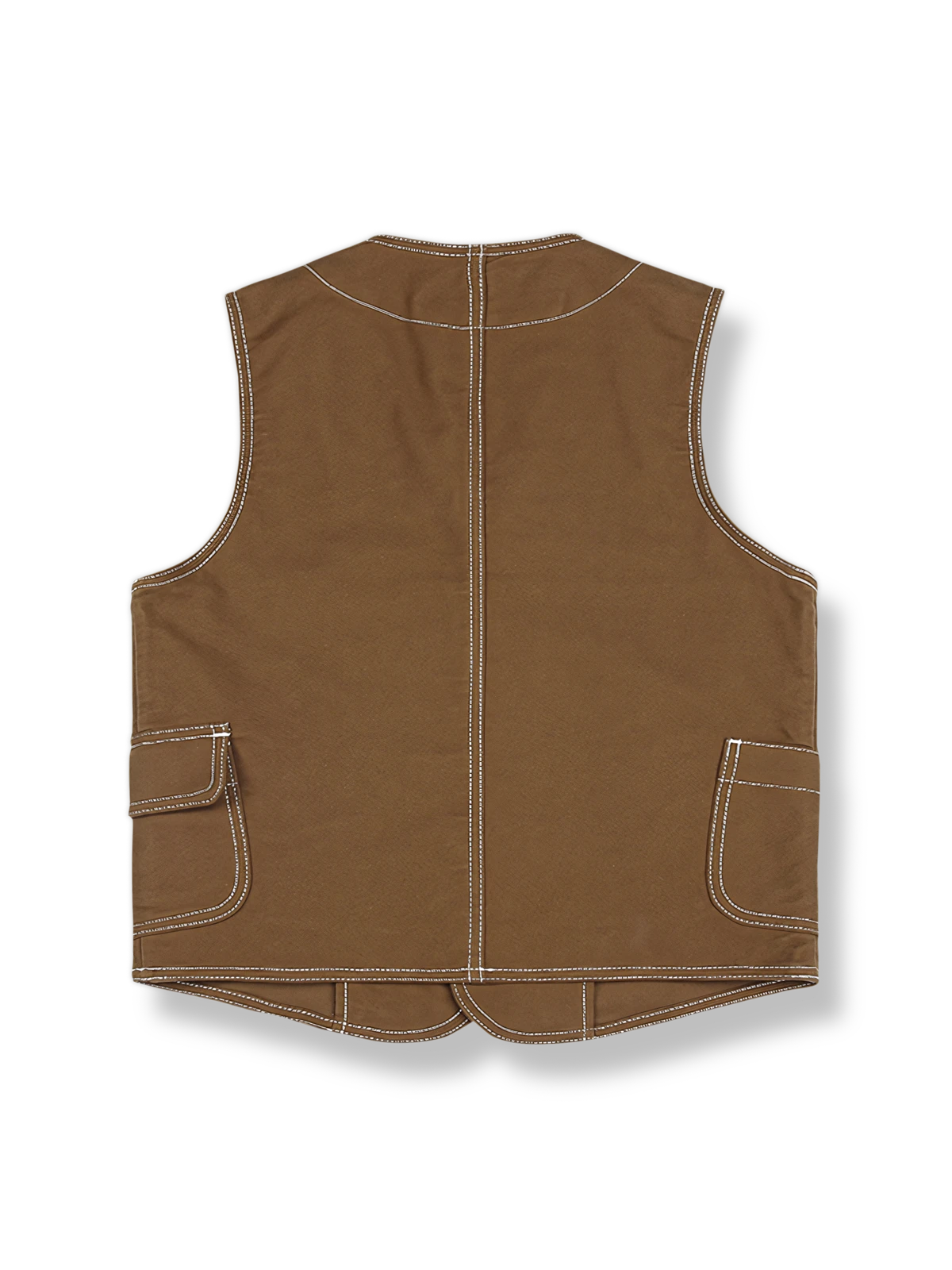 このハンティングスタイルのヴィンテージマルチポケットワークベストは、伝統的なワークウェアの実用主義を体現しています。細かなコントラストステッチと複数のポケットデザインは、強いレトロ感を持ちながら、現代都市生活における多機能性のニーズも満たしています。