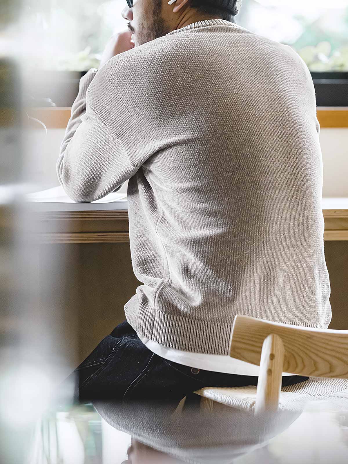襟元、袖口、裾にはリブ編みが施され、着脱時のストレスを軽減。立体的な表現とすっきりとしたシルエットは、様々なスタイルに活かせます。色味にはフェード感を取り入れ、ヴィンテージのような風合いに仕上げました。