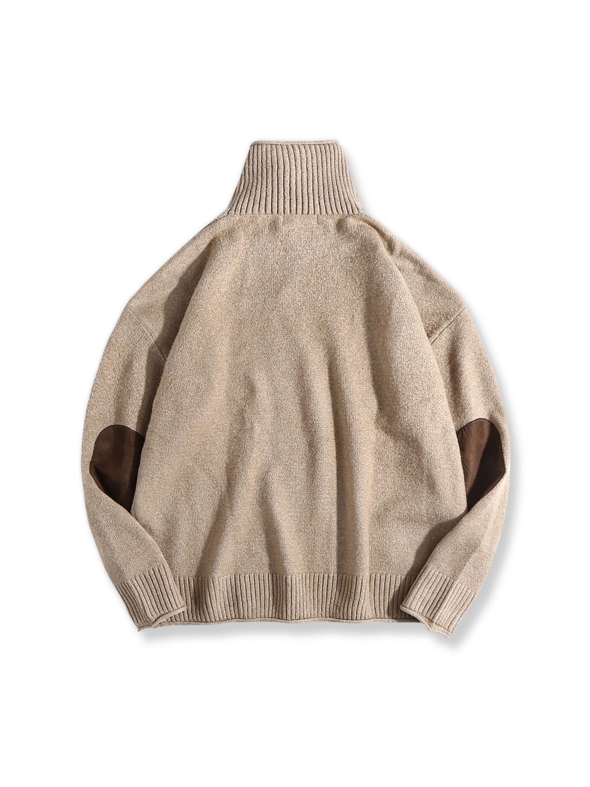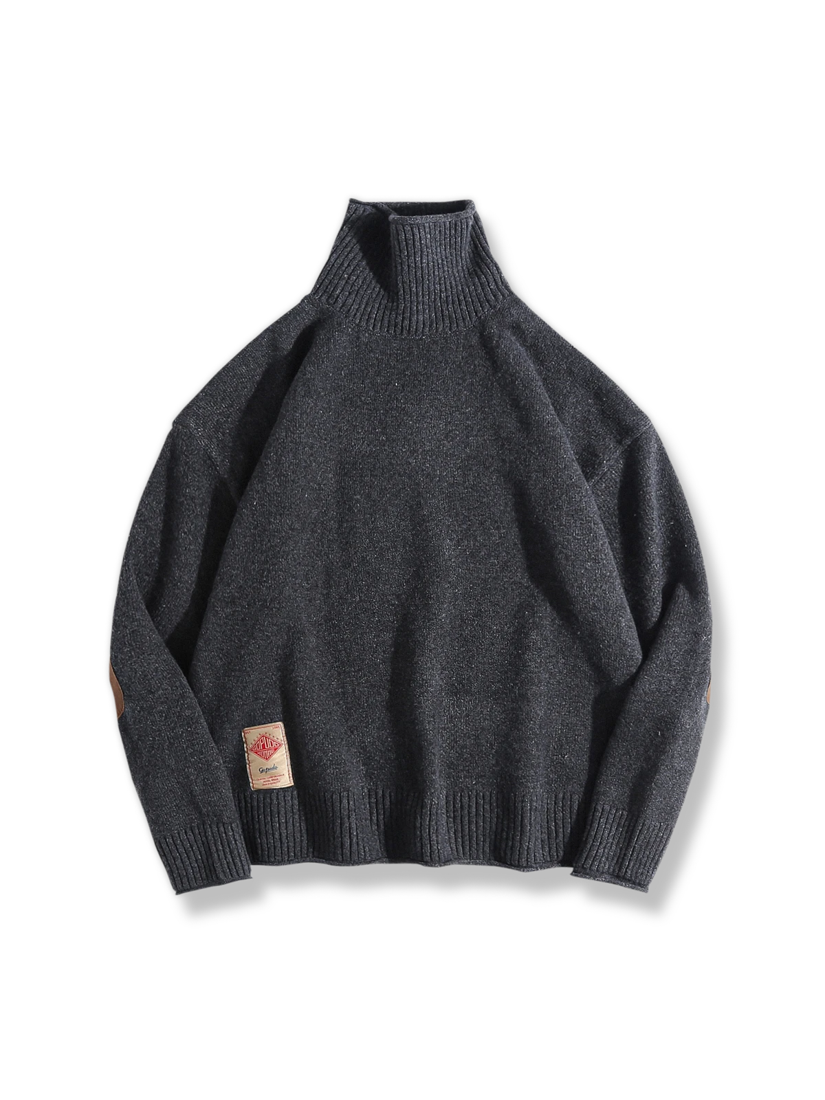 このハイネックセーターは、レトロな肘パッチのデザインを採用し、伝統的なイギリスの学院風スタイルへのオマージュとしています。ハイネック部分は追加の暖かさをもたらし、冷たい天候での着用に適しており、その全体的なゆったりしたデザインは、重ね着にも理想的です。