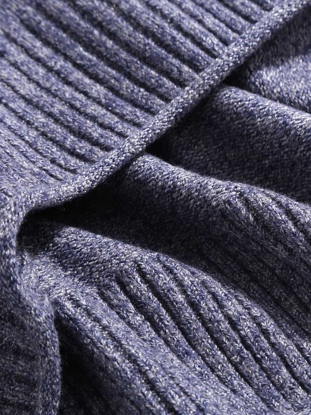 粗いスタイルのニット素材を採用したこのセーターは、肘のパッチが耐久性を高めるとともに、カジュアルで洗練された外観を加えています。濃い色の毛糸とパッチの素材や色とのコントラストが、視覚的な層を生み出しています。