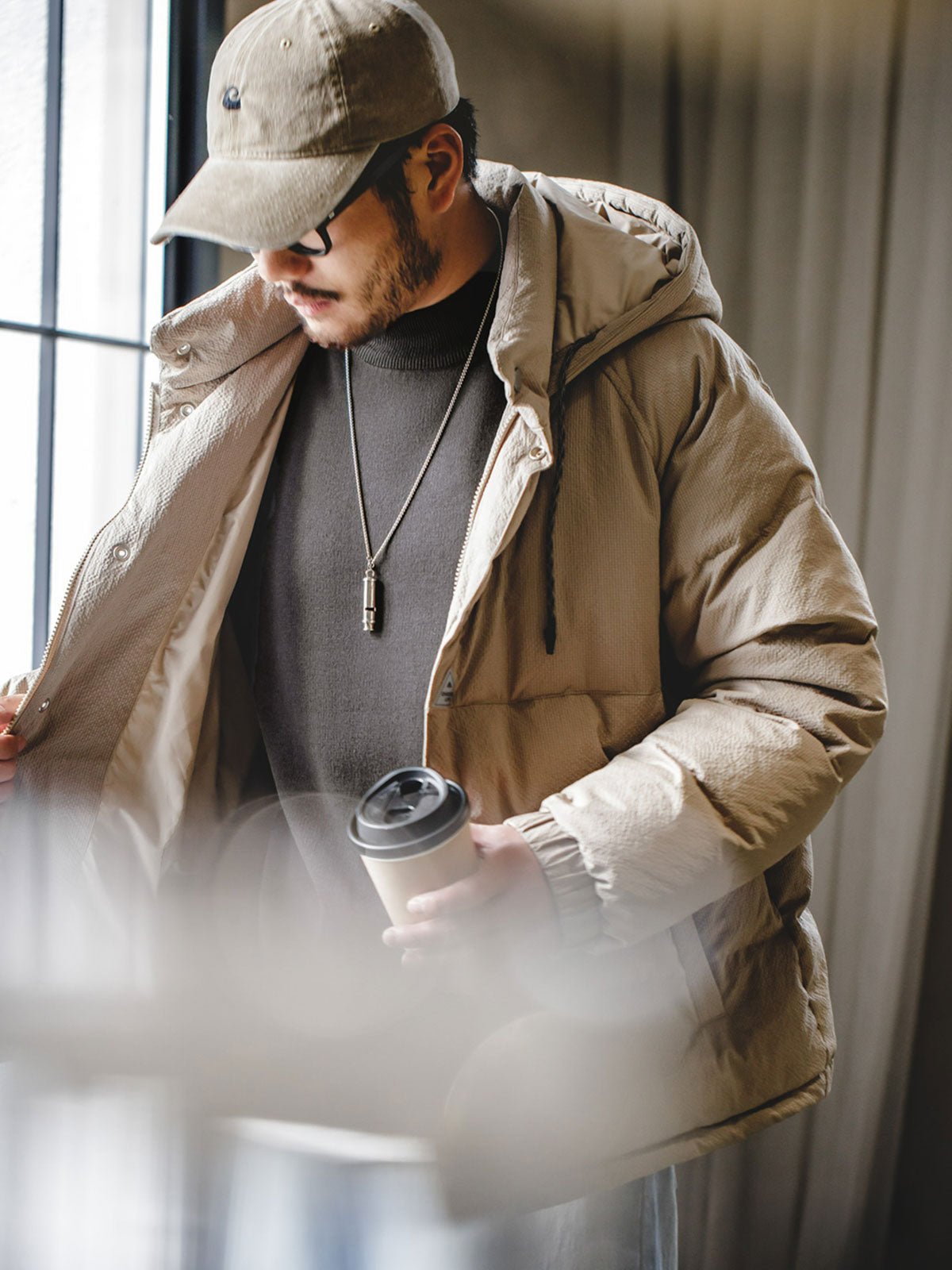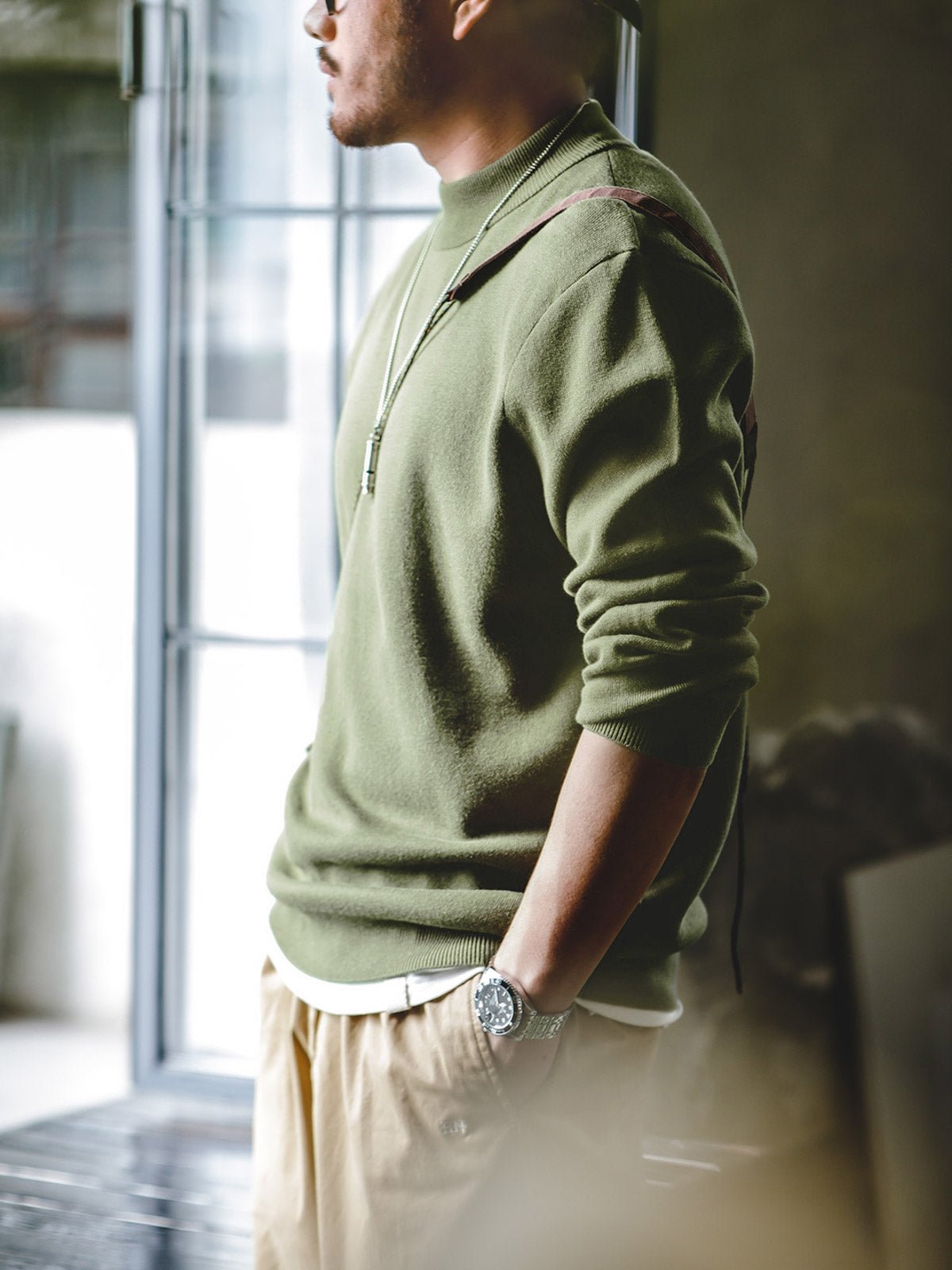 襟、袖口と裾はリブ模様の織り方で織られて、防風性も考慮された。
