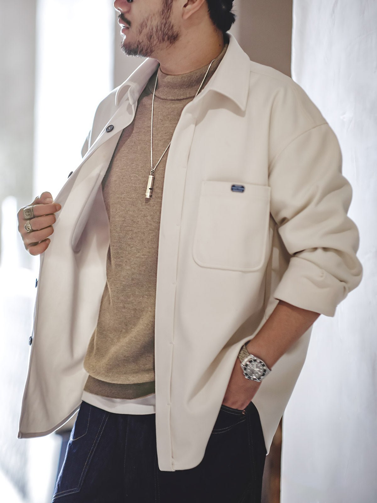 ゆとりのあるシルエットは、身頃や袖に程よいゆとりを持ち、動きやすさと快適さを提供しています。