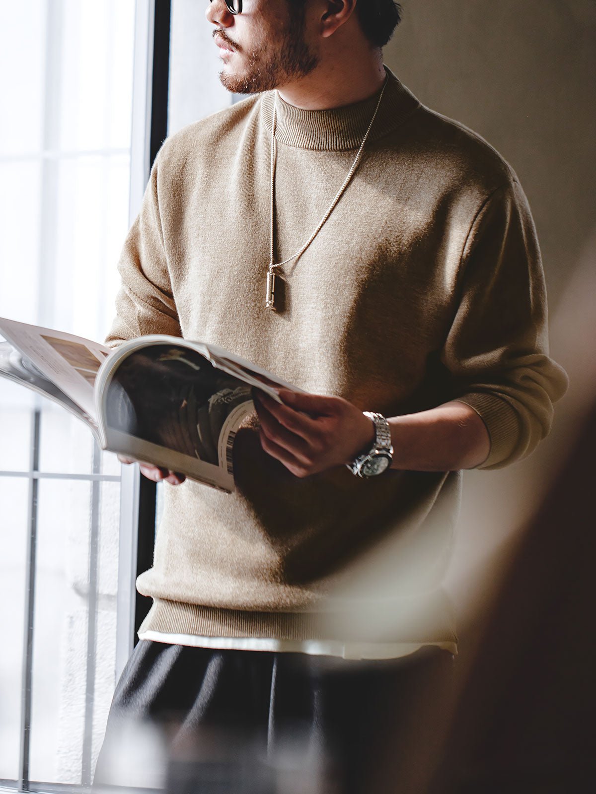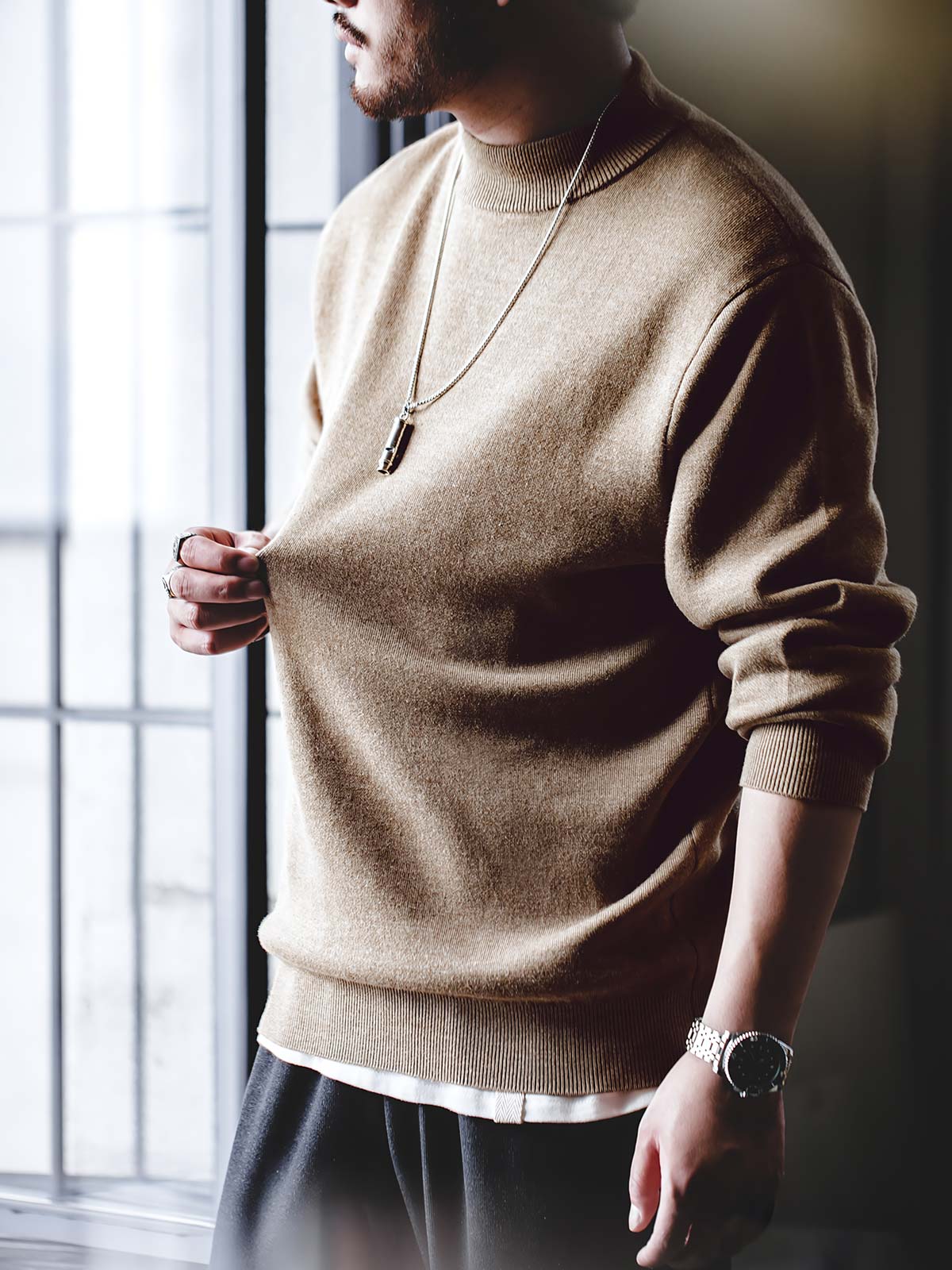 ニットの定番であり、着回し力の高い万能選手でもあるタートルネックニット。首周りをニットでおおうデザインゆえ、マフラーいらずの抜群の保温性も発揮してくれます。しかもほかのニットに比べて着ているだけでどこかおしゃれに、かつ大人っぽく見せることができるのも特筆すべき魅力。この冬、1枚で着たり、レイヤードスタイルにしたりして、さらに活躍の場を広げましょう。