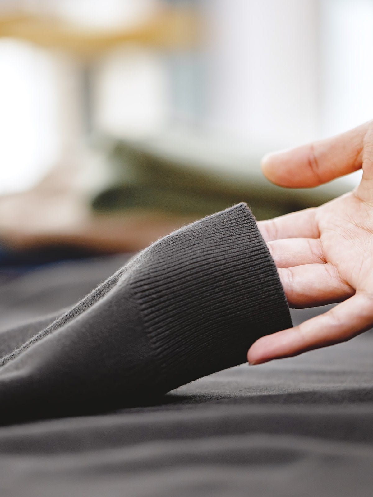 上質なアクリル、コットン、ポリエステル素材を使用し、柔らかい着心地と優れた保温性を兼ね備えた両面起毛感が特徴です。丈夫さと暖かさを兼ね備えた質感が魅力で、着心地と耐久性は言うまでもありません。