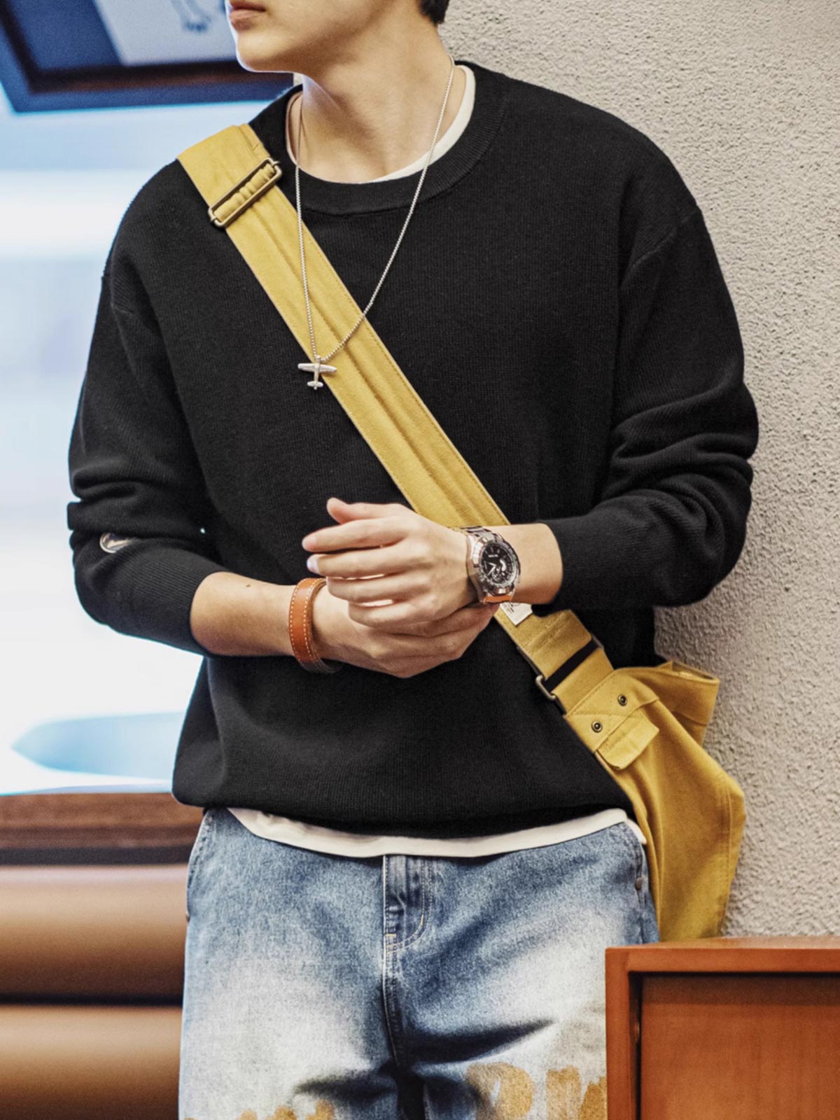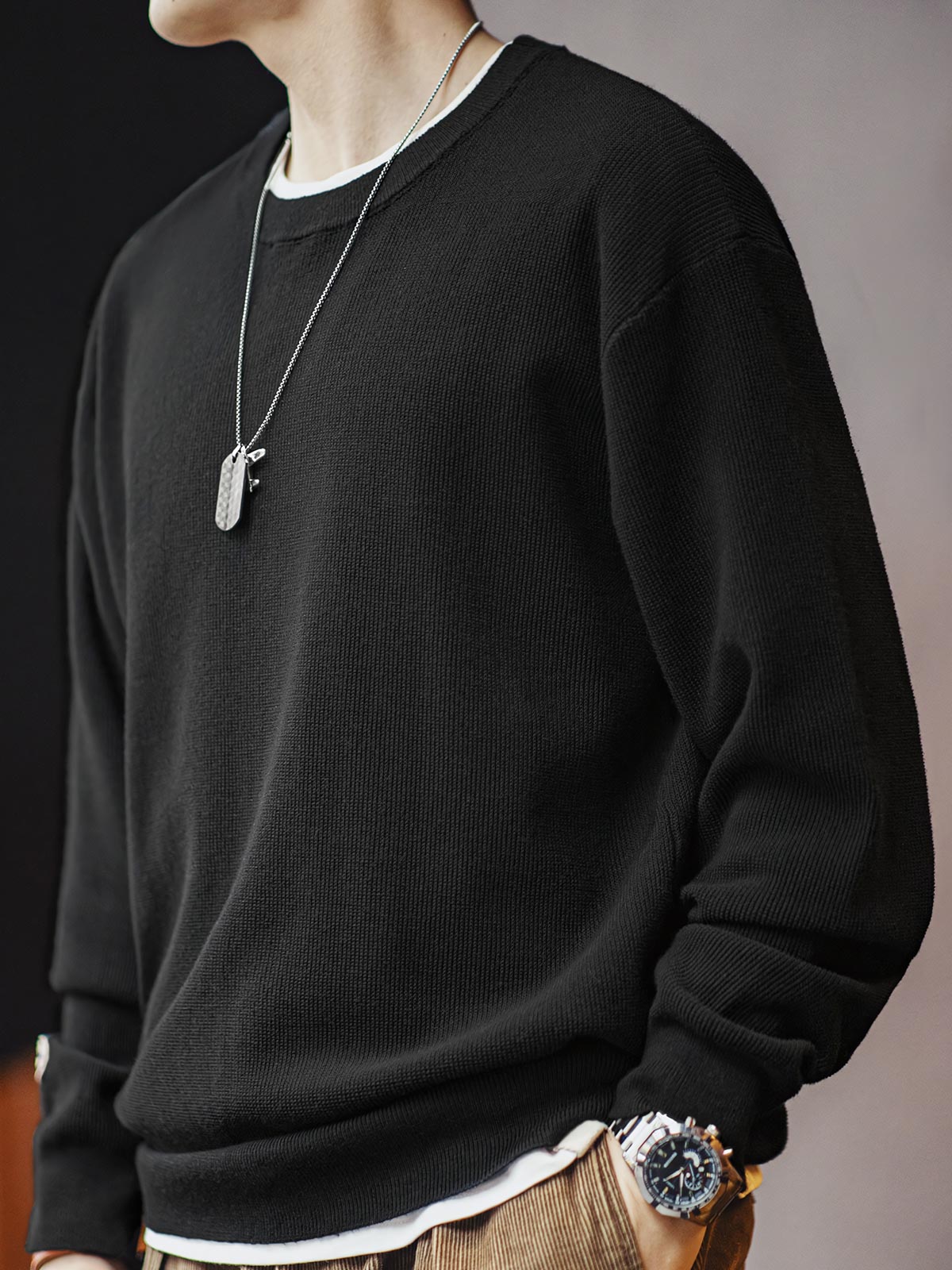標準的なフィット感のカットを採用し、適度なゆとりを提供し、さまざまな体型に適しています。柔らかなニット生地は、秋冬シーズンに理想的な、優れた着心地と適切な保温性を確保します。
