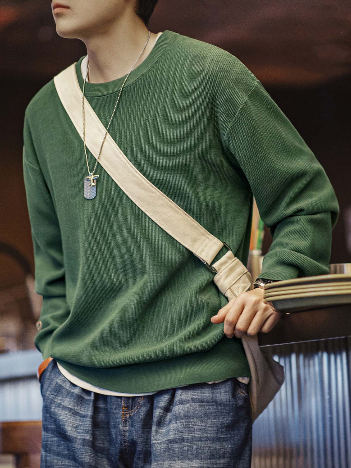 このスウェットは、シンプルなデザインと精巧なテクスチャニット工芸を特徴としており、クラシックなスポーツウェアの快適さとカジュアルな精神を反映しています。