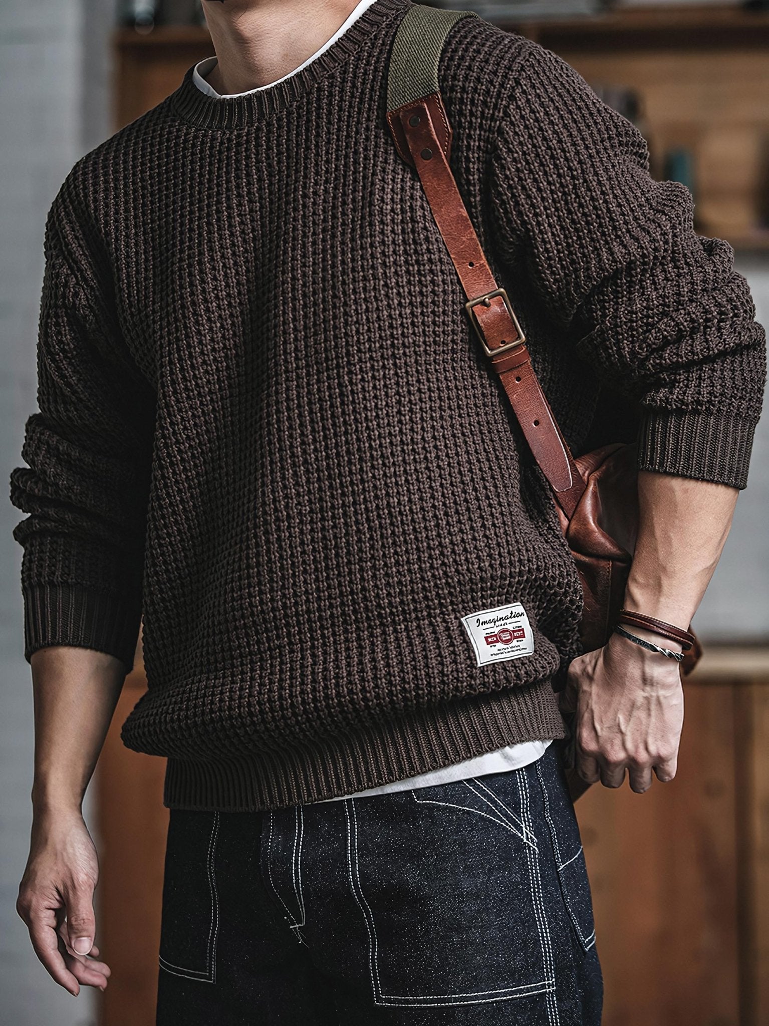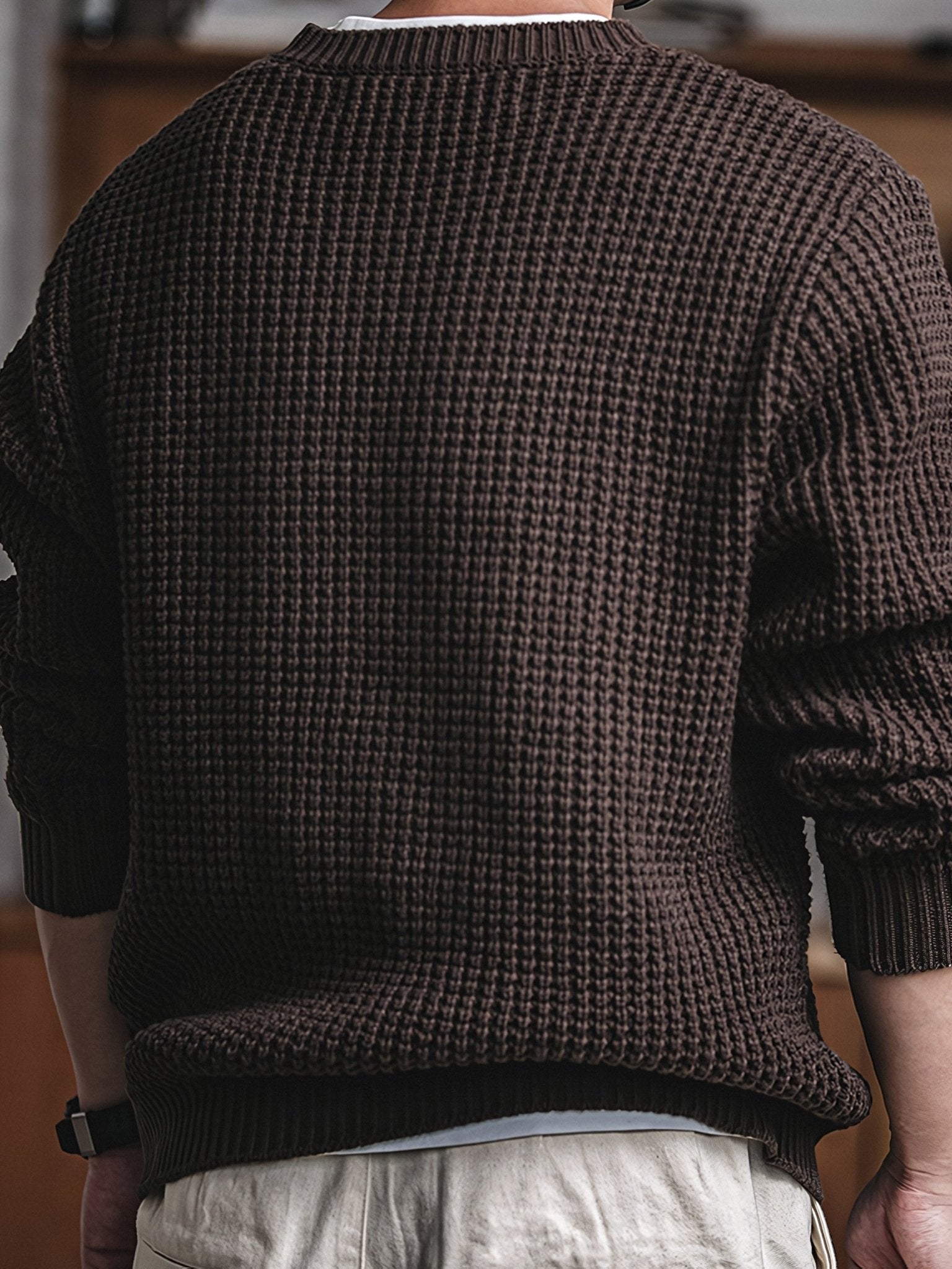 襟、袖口、裾にはリブ編みが施されており、セーターが着用時に身体にフィットし、快適な着心地を実現しています。また、このデザインにより、セーターはシャツやTシャツとの重ね着にも適しており、よりおしゃれな着こなしを楽しむことができます。