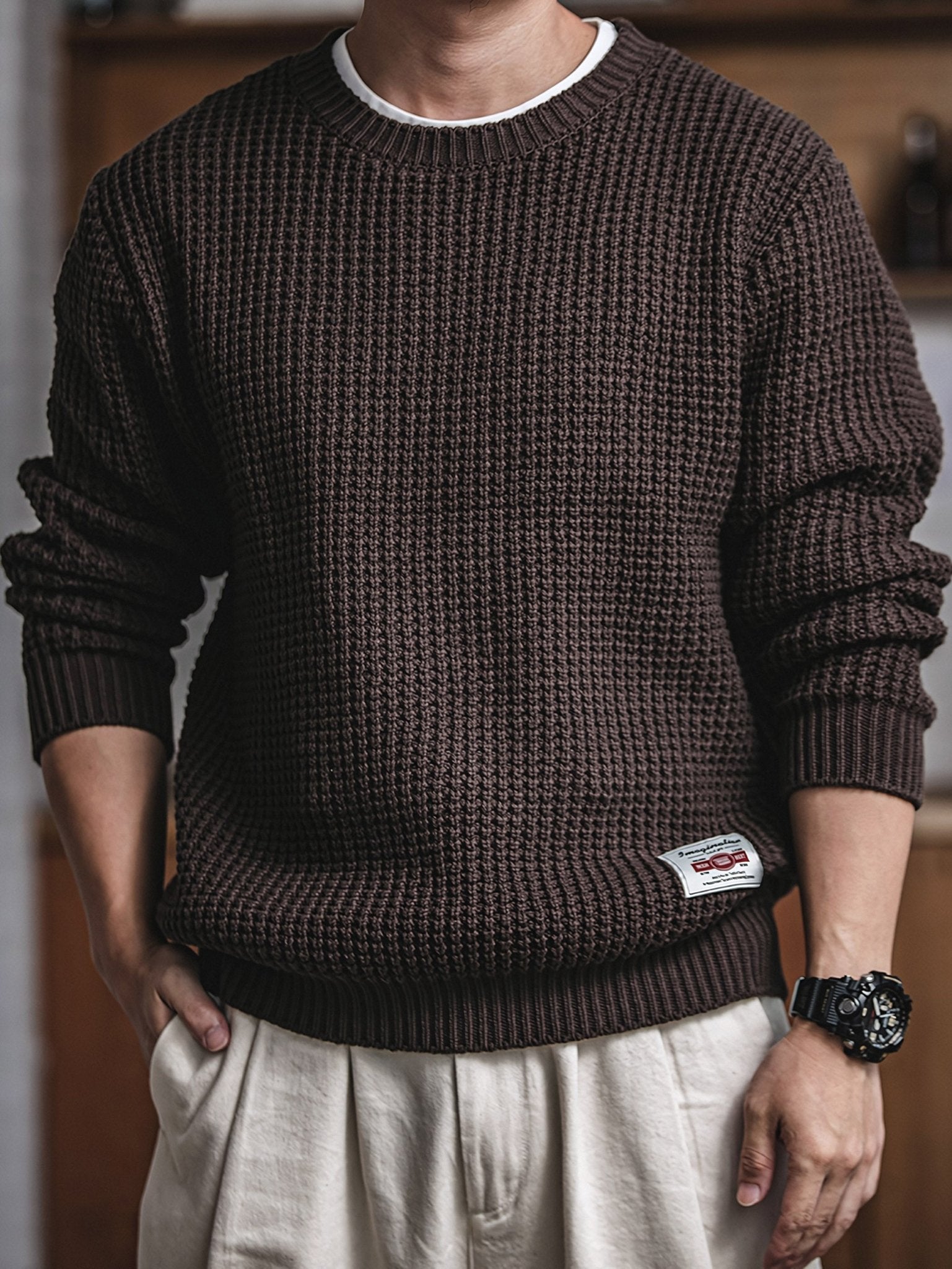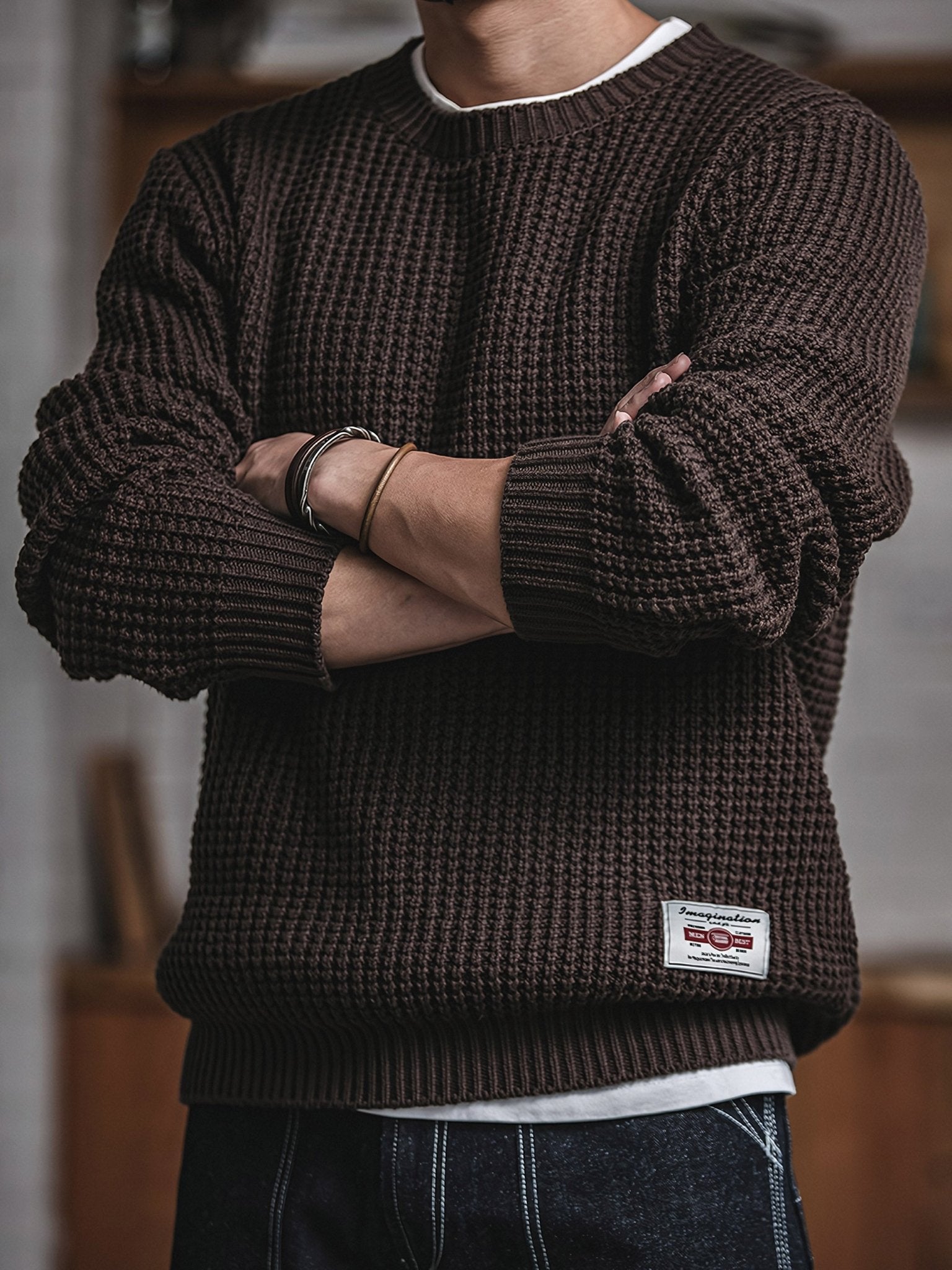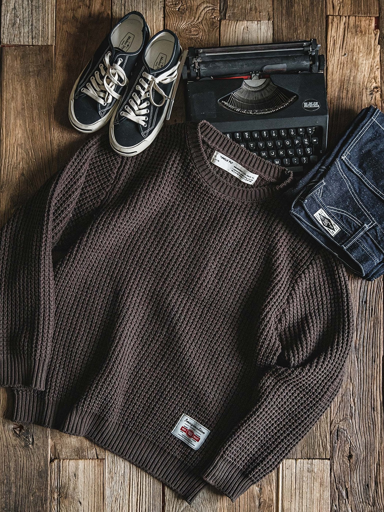このセーターは独特なハニカム風の厚みのあるウォフルジャカード織りのデザインを採用しており、伝統的なセーターとは異なる立体感を持っています。このデザインにより、セーターは個性的で他とは違った特徴を持っています。