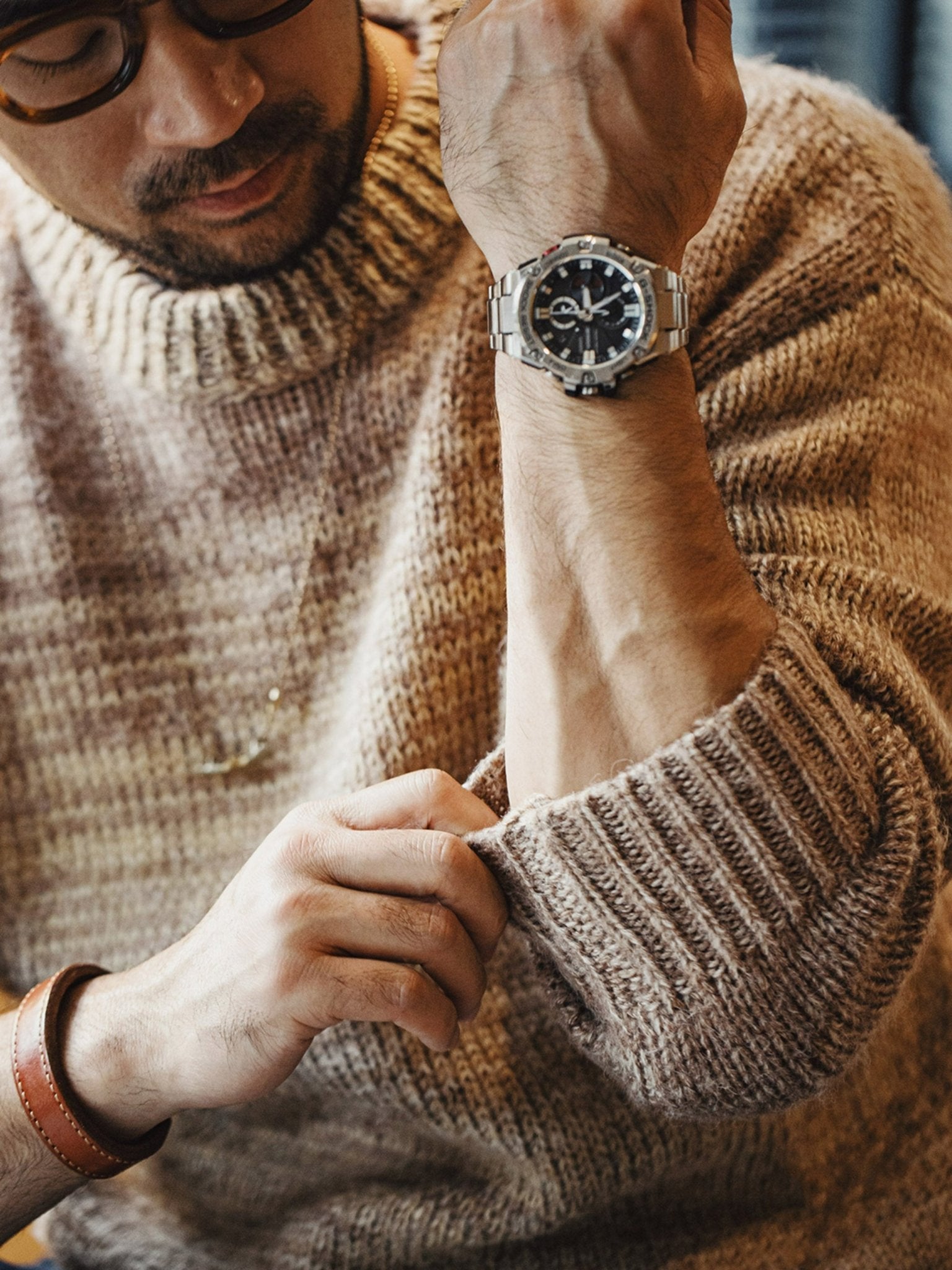 衣装に合わせて、ウォームトーンでは茶色やカーキ、クールトーンでは鉛灰色を選べます。シングルでの着用はもちろん、重ね着も様々な場面やスタイルに合わせやすくなっています。