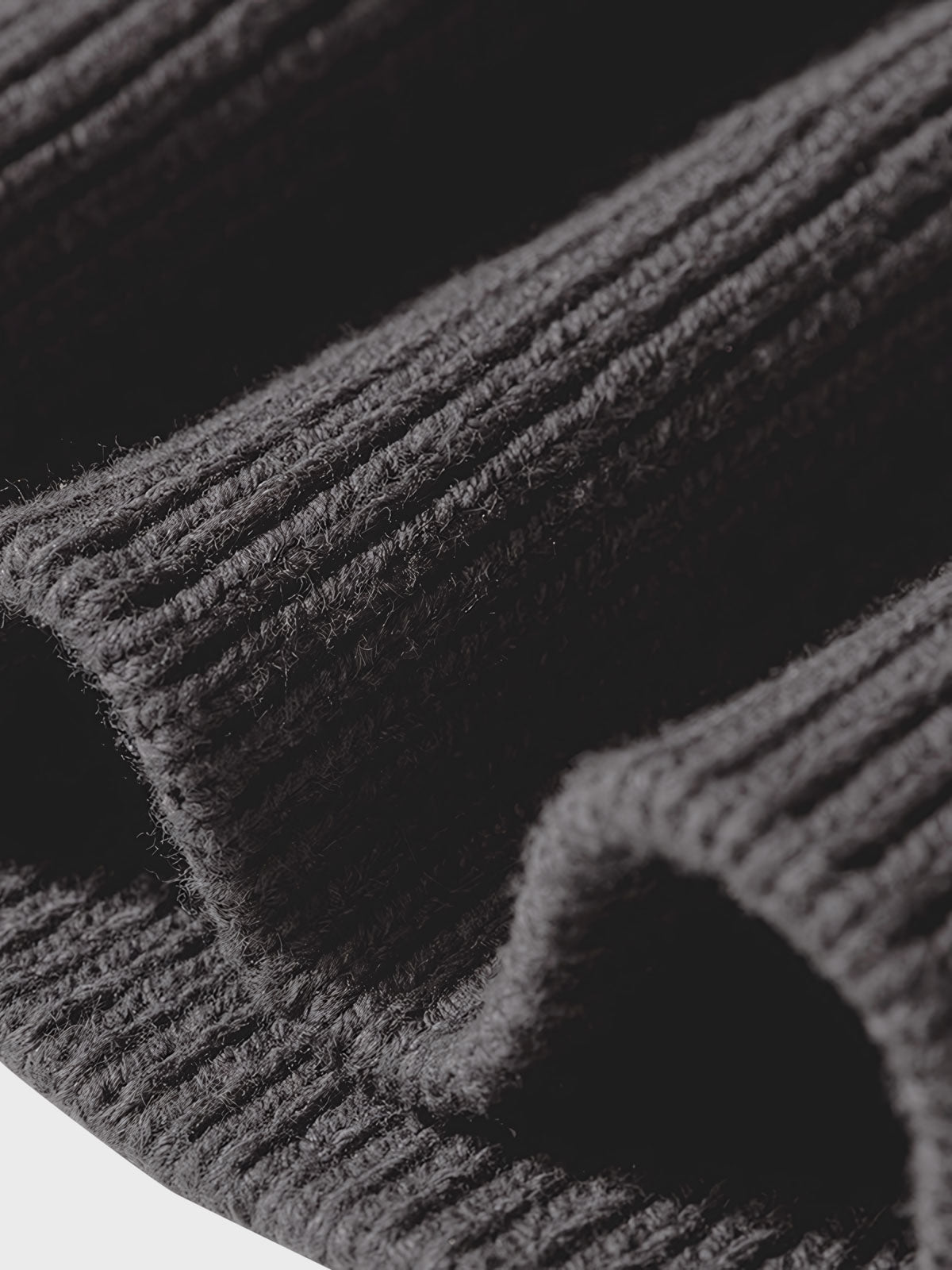 選び抜かれたニット生地を使用しており、このセーターは厚みがあり、伸縮性があるため、保温性と通気性を提供します。リブ編みのテクスチャーは耐久性を高め、秋冬シーズンに理想的です。