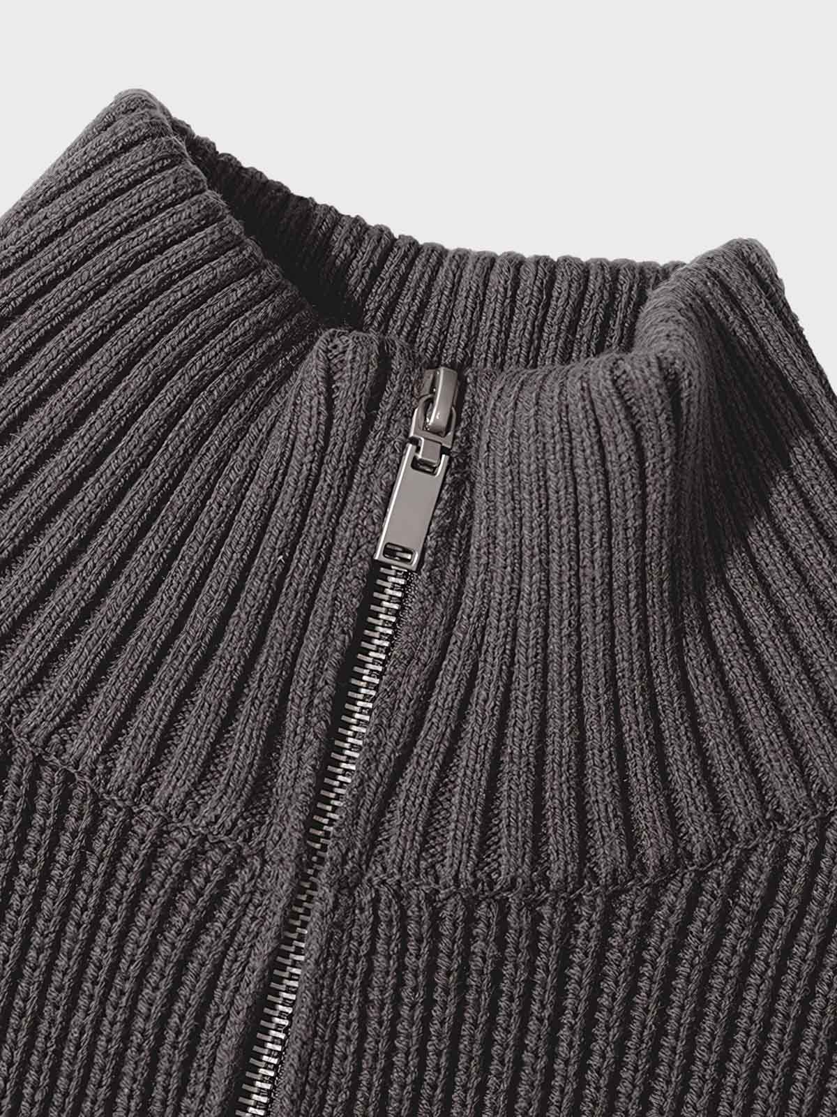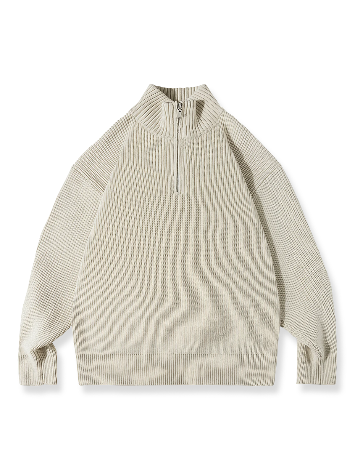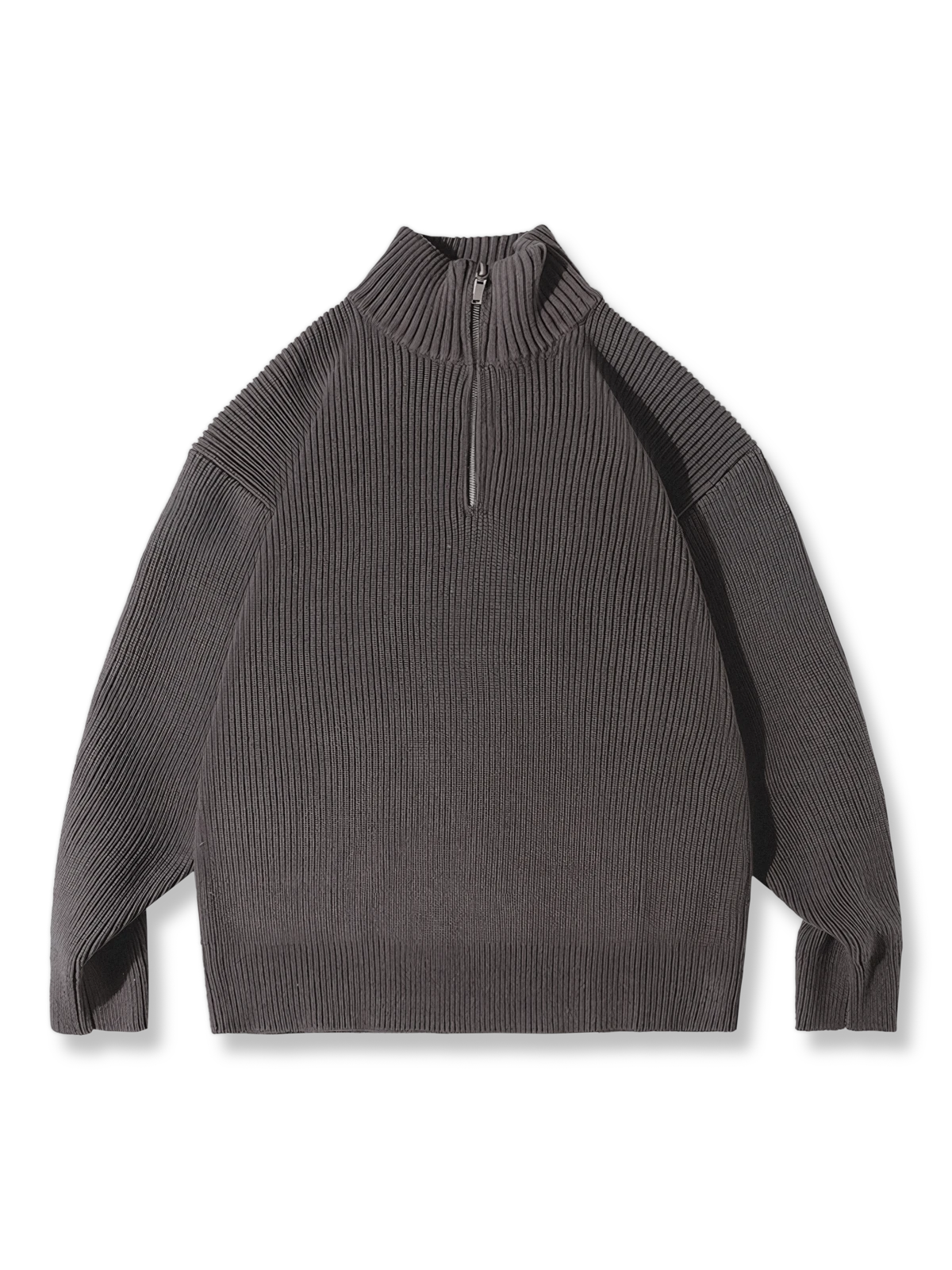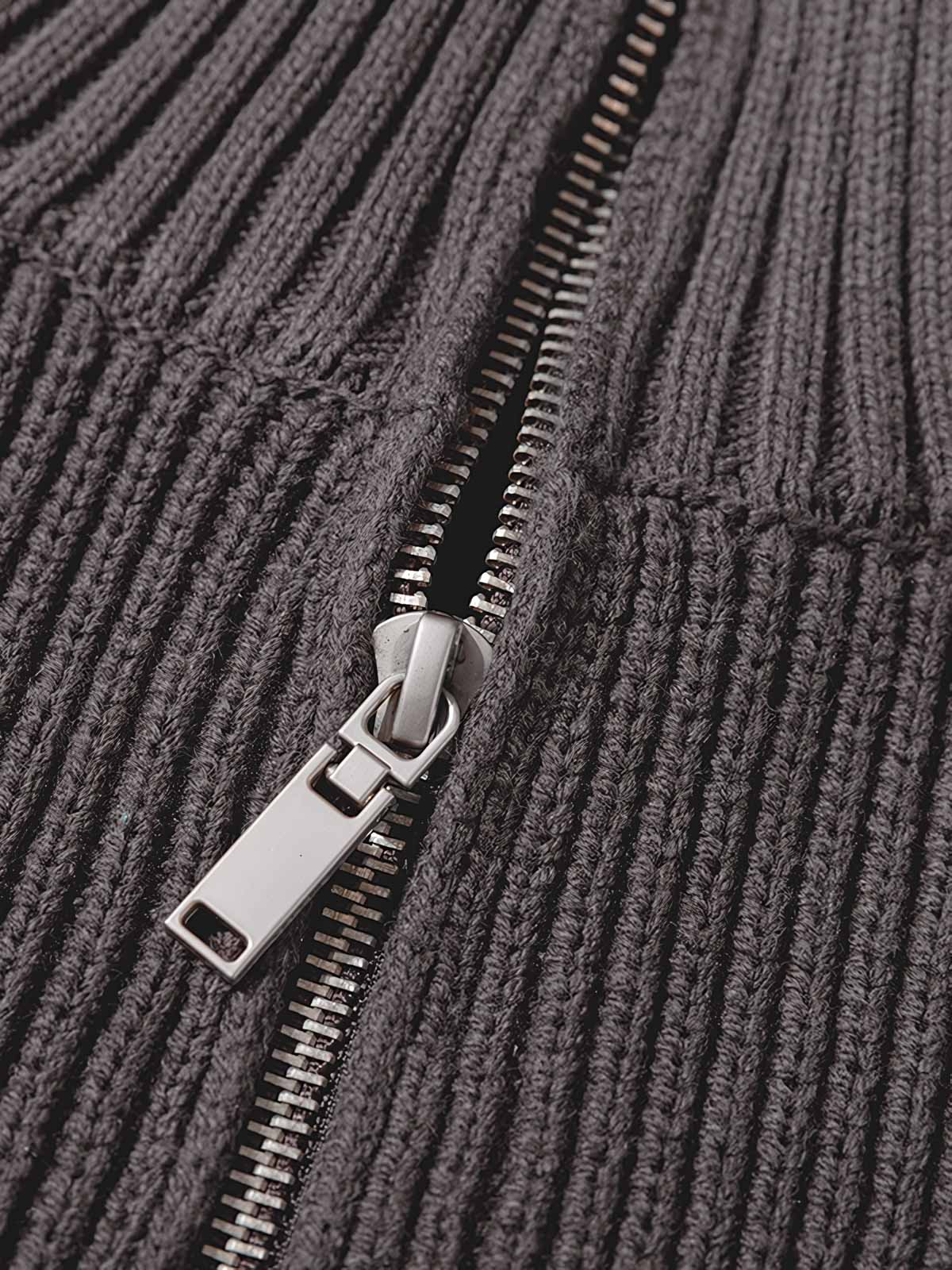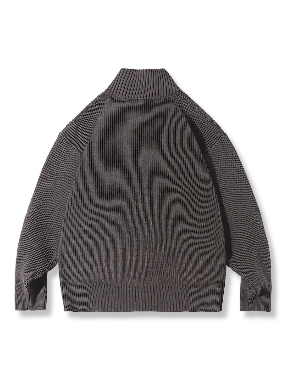 このハイネックジッパーセーターは、繊細なリブ編みとクラシックなダークブラウンの色合いでアメリカのヴィンテージワークウェアのエッセンスを表現しています。ハイネックはスタイリッシュでありながら追加の暖かさを提供します。そのデザインは20世紀の工業労働者の服装からインスピレーションを受けており、現代の日本ではオリジナルの機能性を保ちつつ、モダンなファッション要素を加えています。