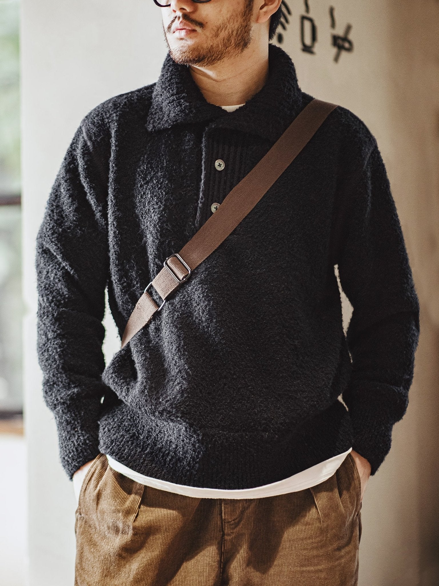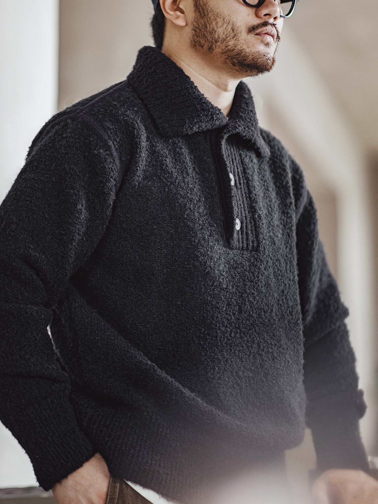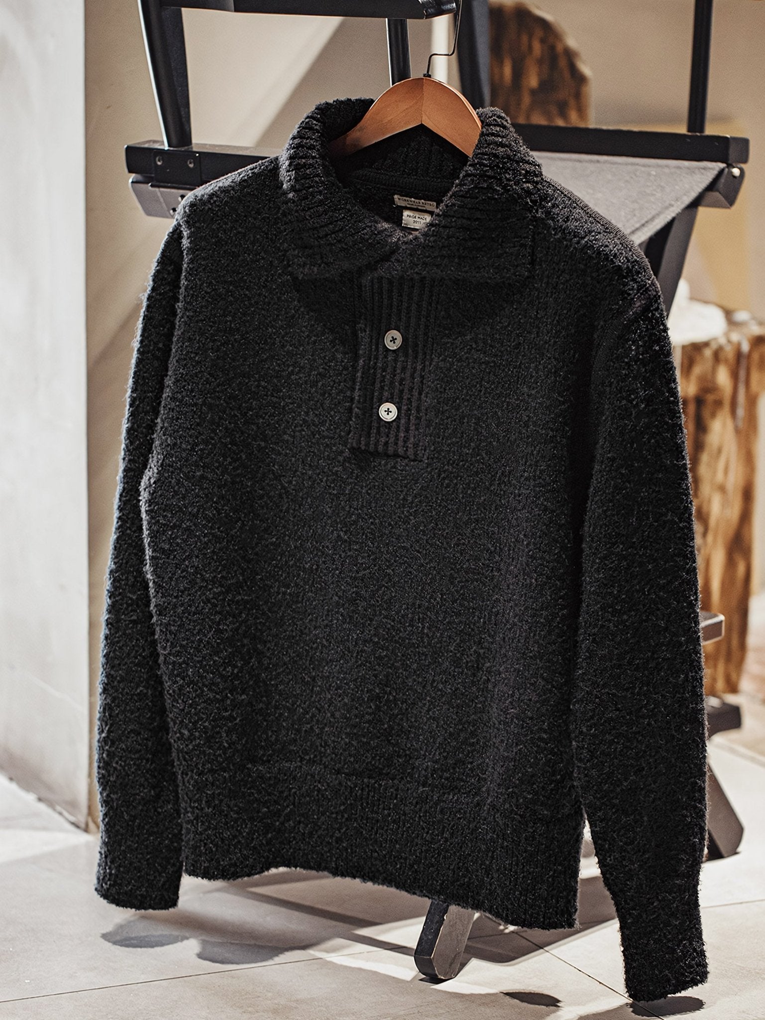 このニットポロシャツは、ベーシックで使いやすいデザインが特徴です。自然な立体感と高級感があるジャガード織りが魅力的で、ボタンを閉じて着るとプレッピーな表情を、開けて着るとルーズな雰囲気を演出できます。