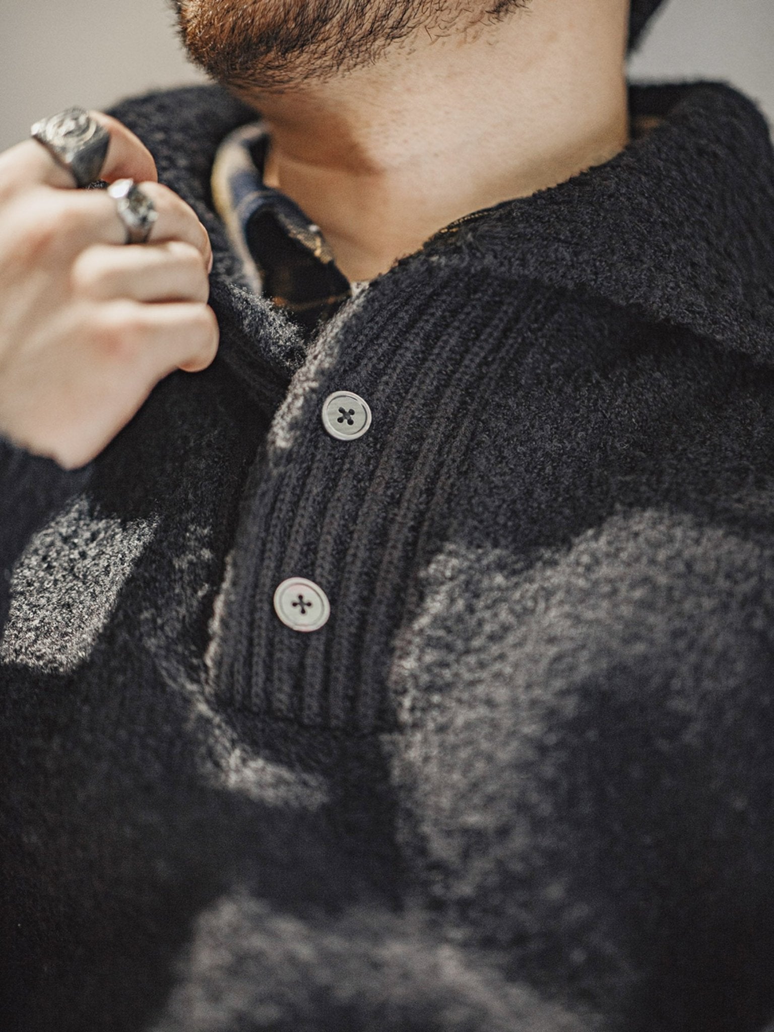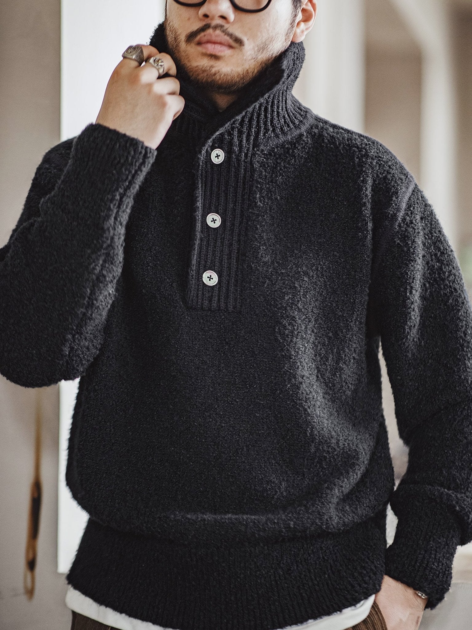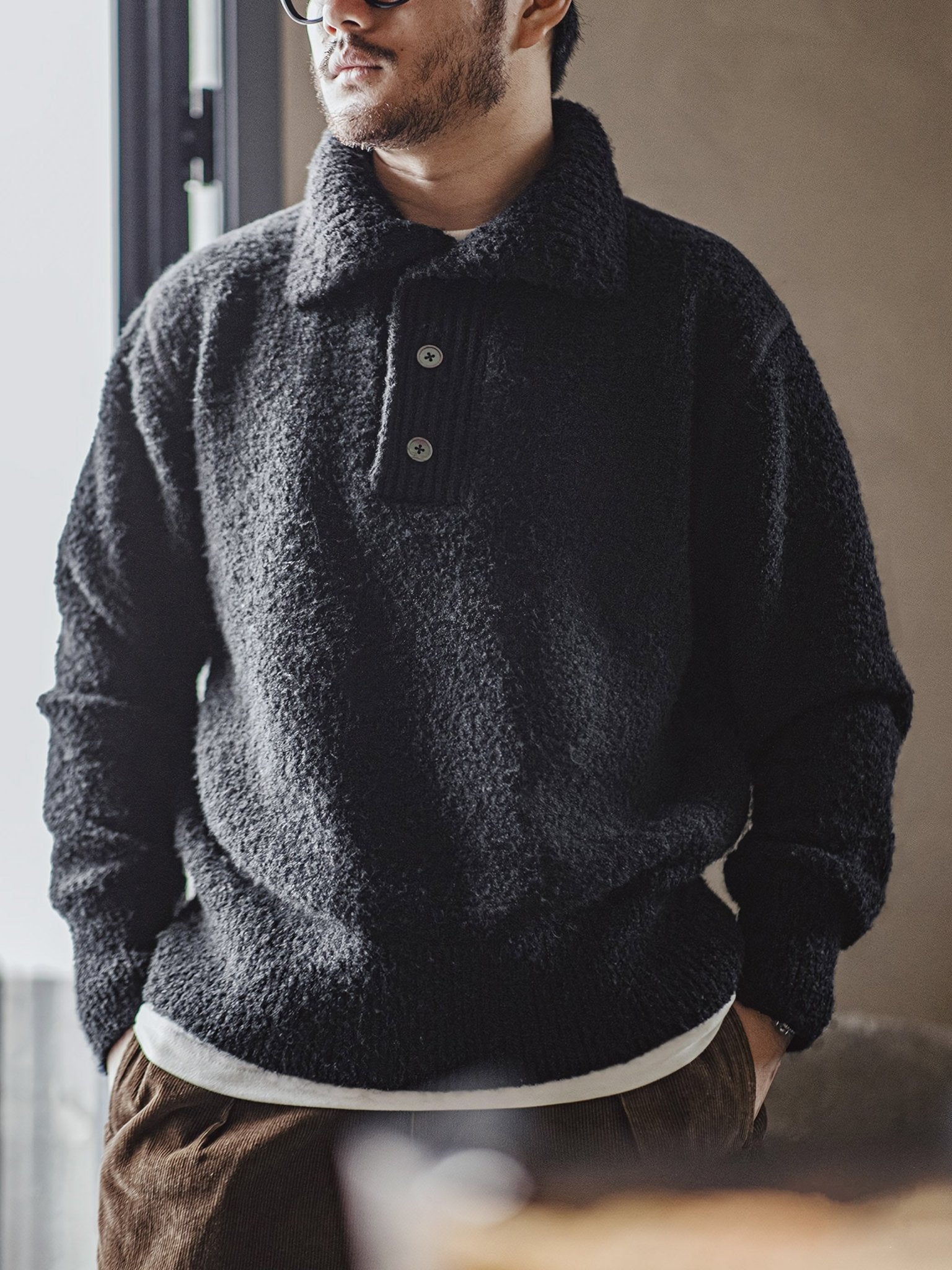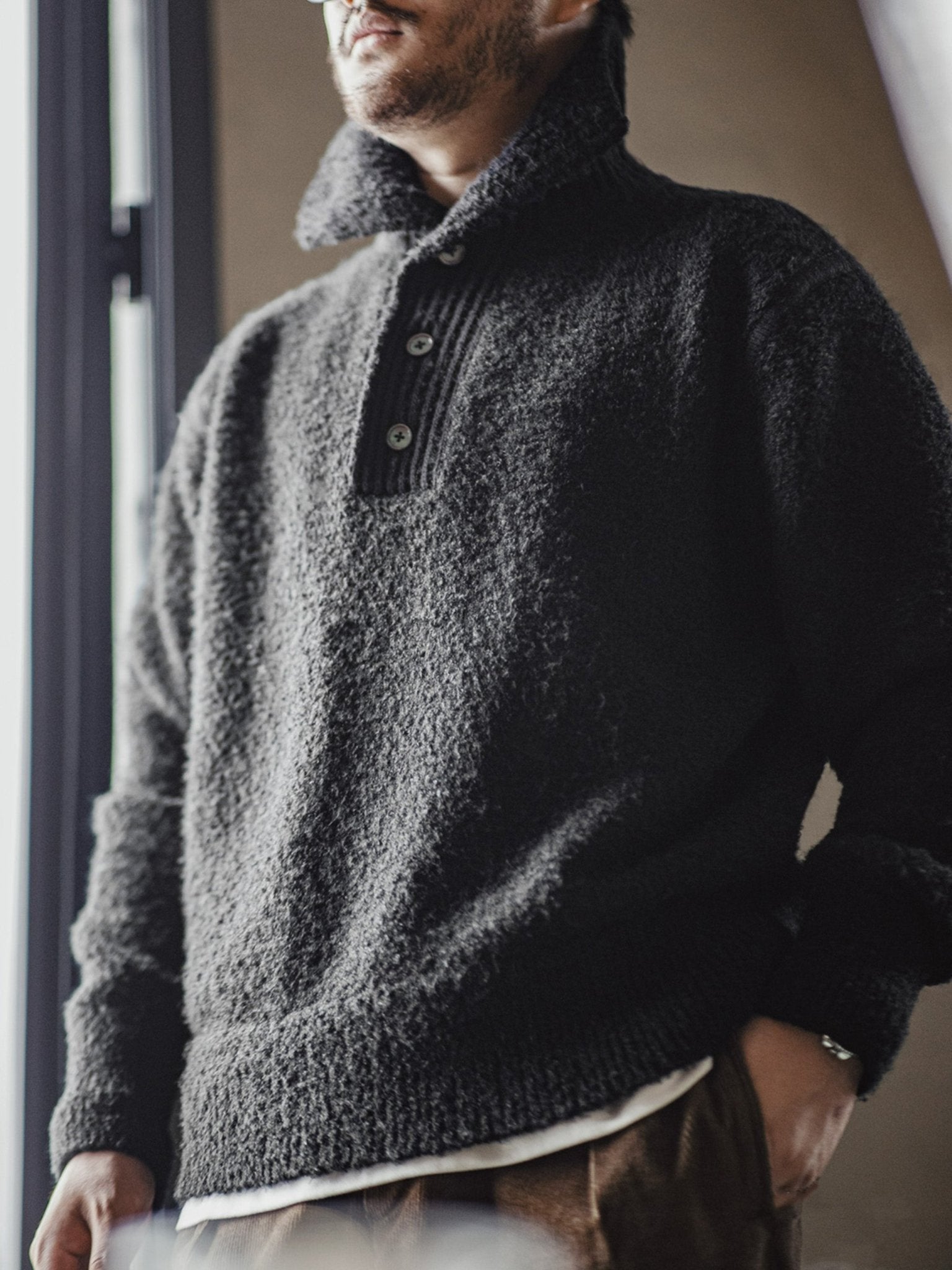 このニットポロシャツは、ベーシックで使いやすいデザインが特徴です。自然な立体感と高級感があるジャガード織りが魅力的で、ボタンを閉じて着るとプレッピーな表情を、開けて着るとルーズな雰囲気を演出できます。