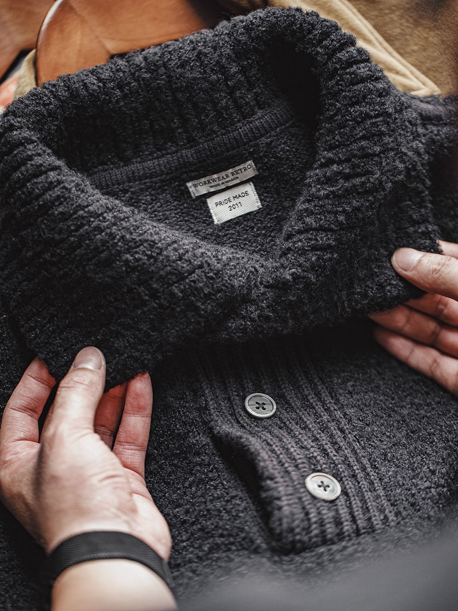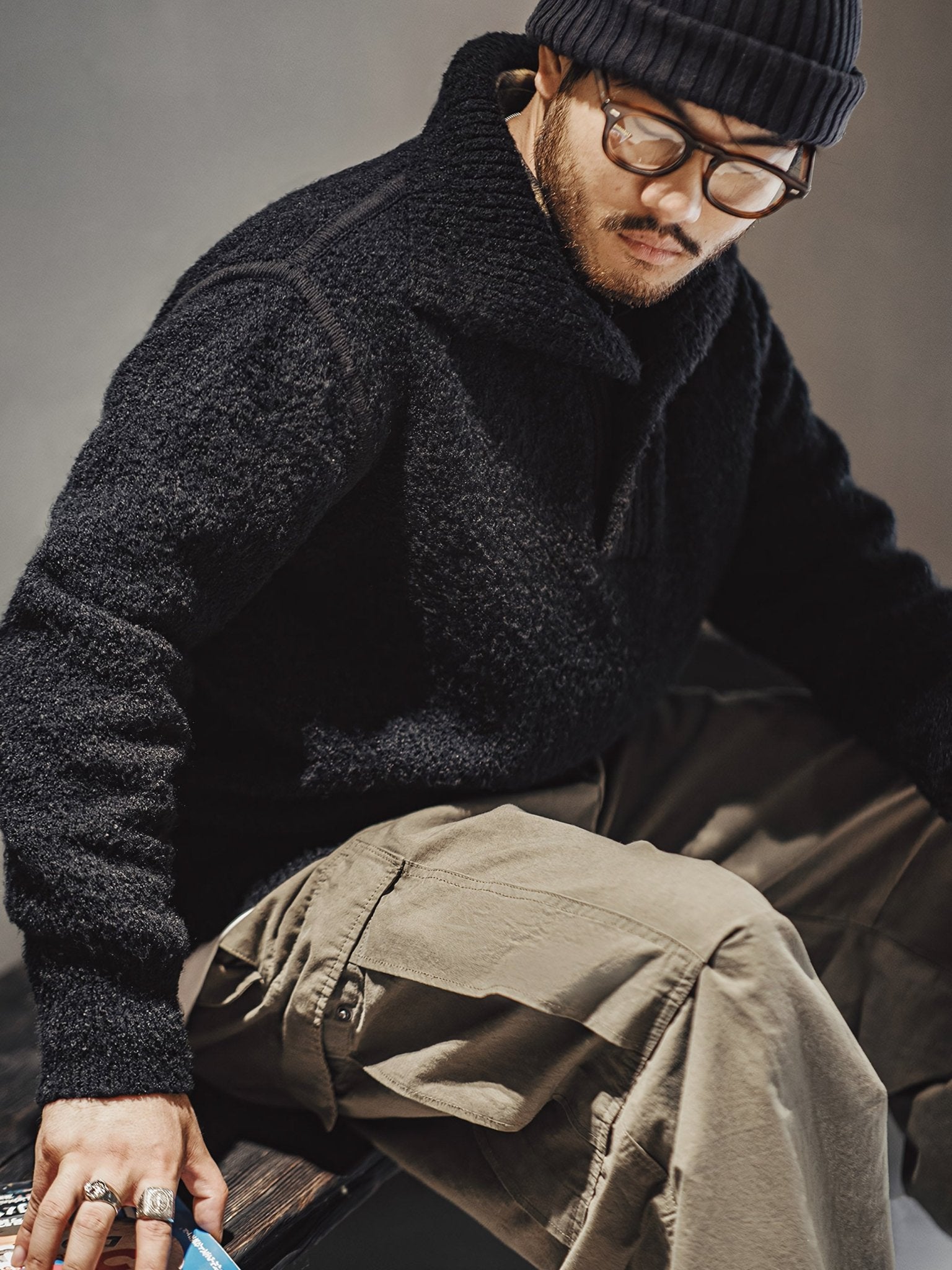 ドロップショルダーとゆったりとしたシルエットは、このニットの特徴の一つで、体形に選り好みせず、さまざまな体型の人に適しています。