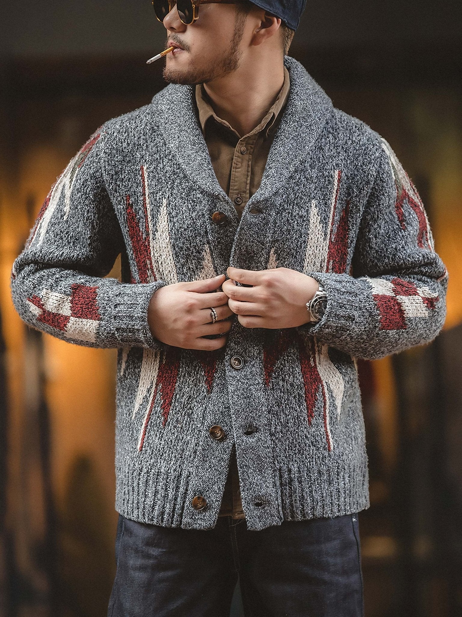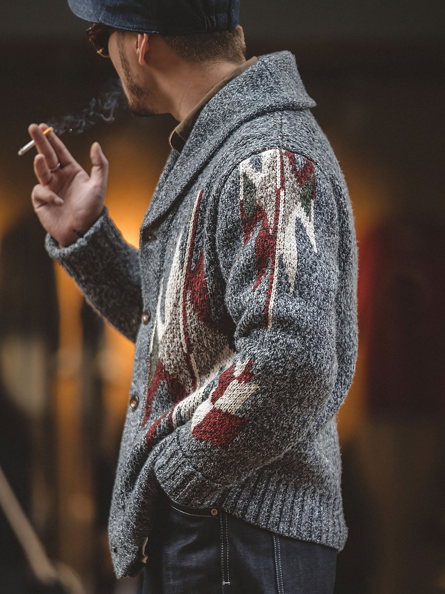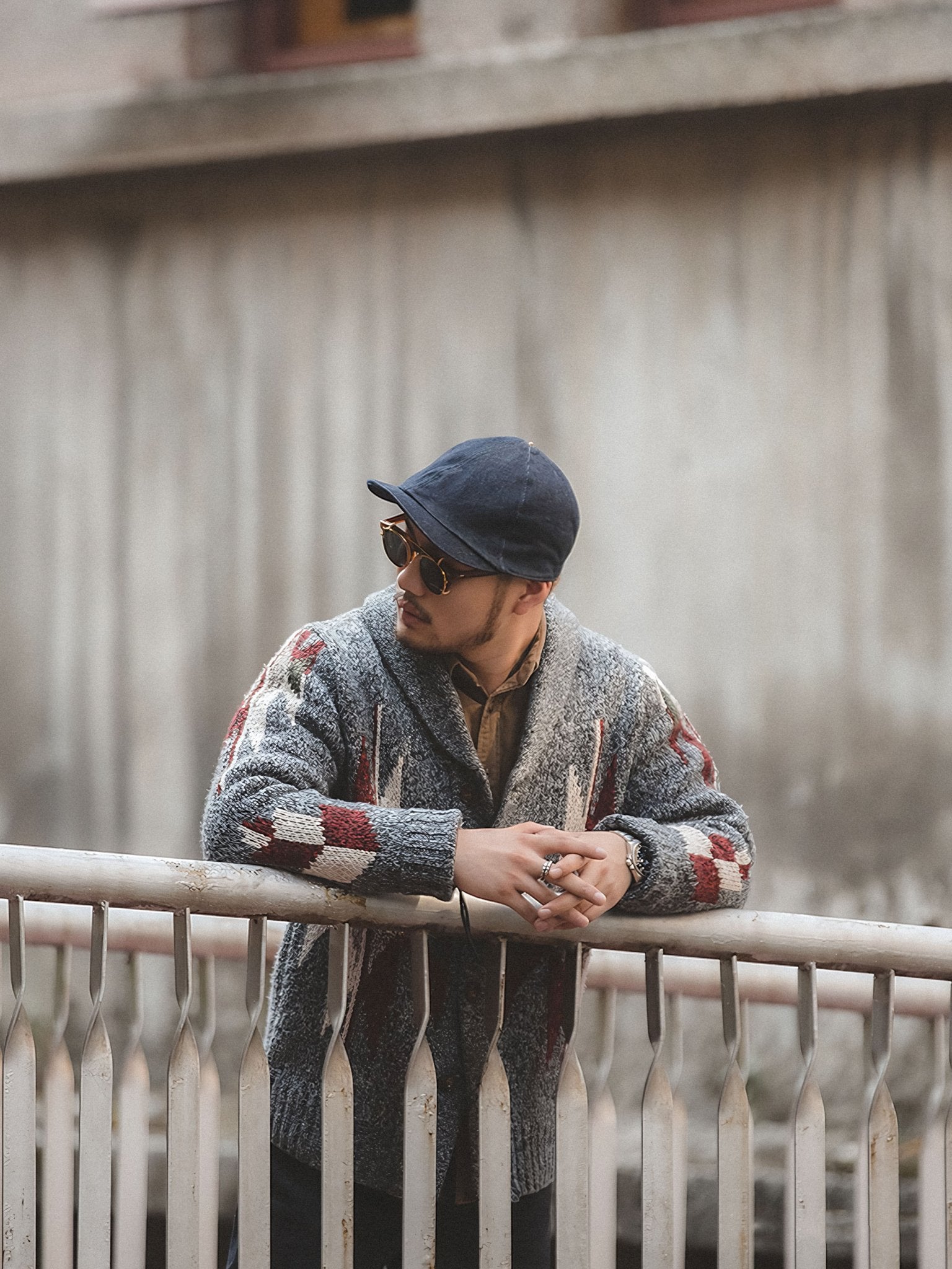 ナバホ部族はアメリカ最大のネイティブアメリカンの部族の一つであり、その織物技術で知られています。このセーターは、ナバホ部族からのインスピレーションを受け、レトロのスタイルでは欠かせない要素となっています。