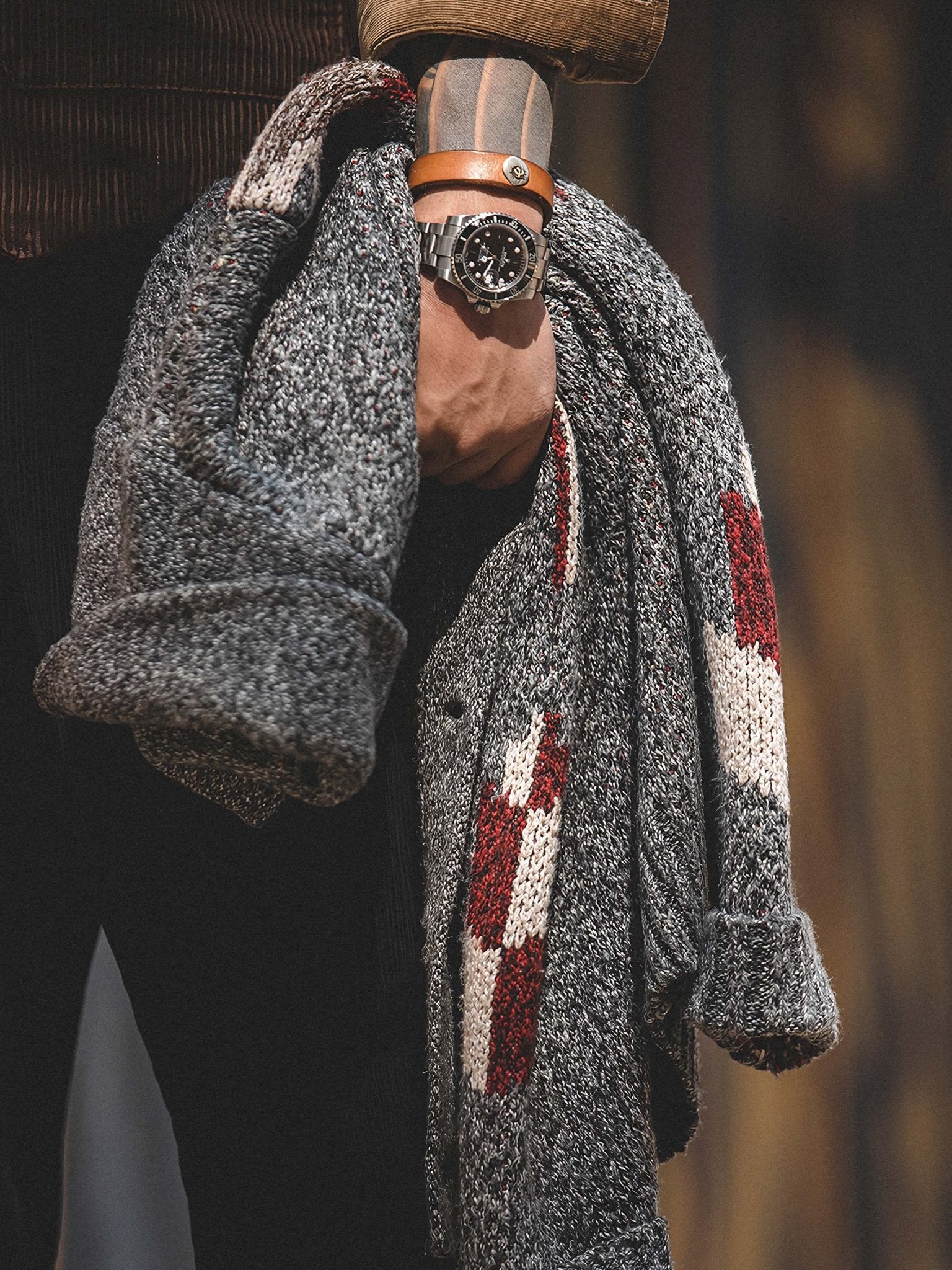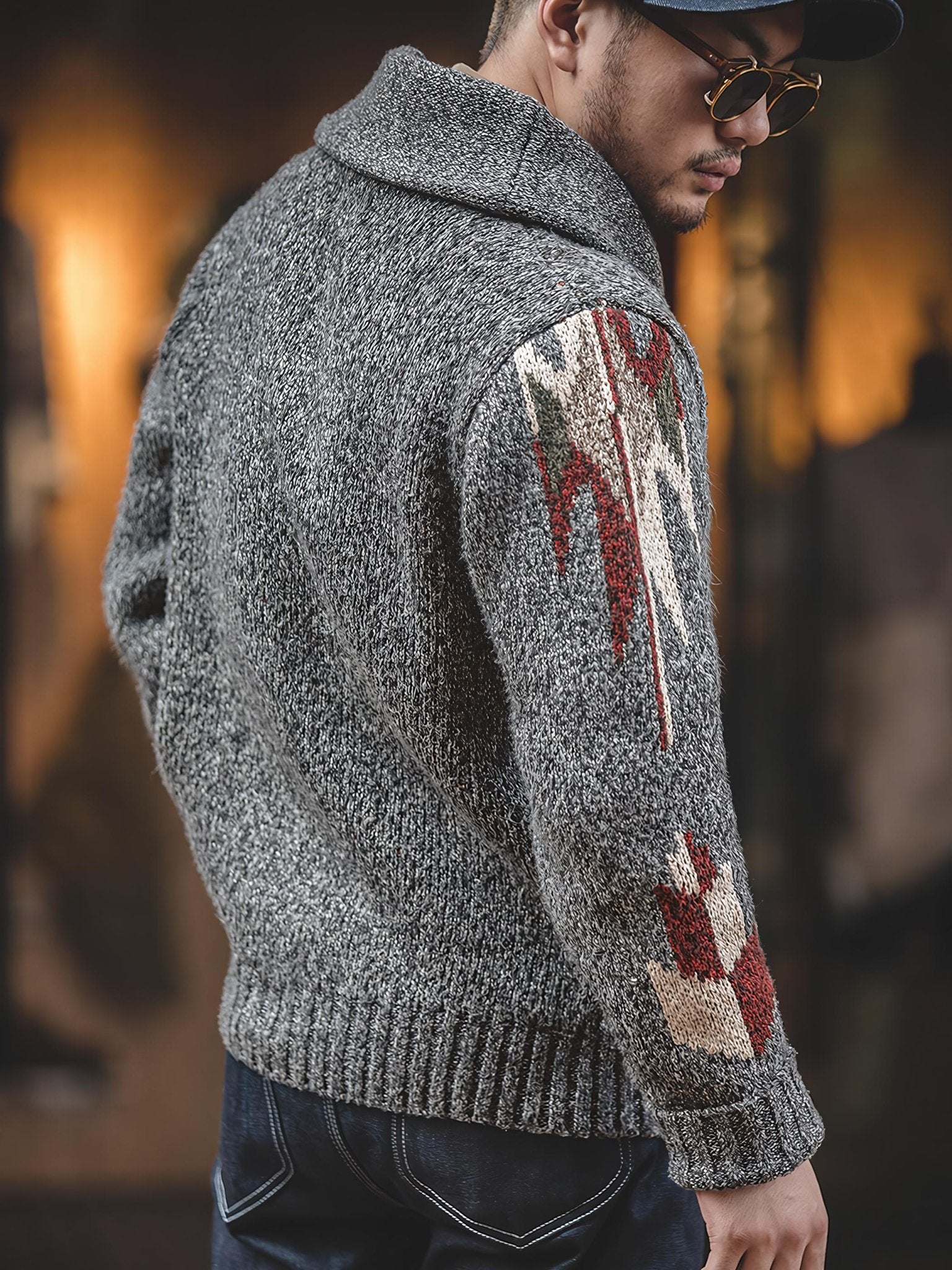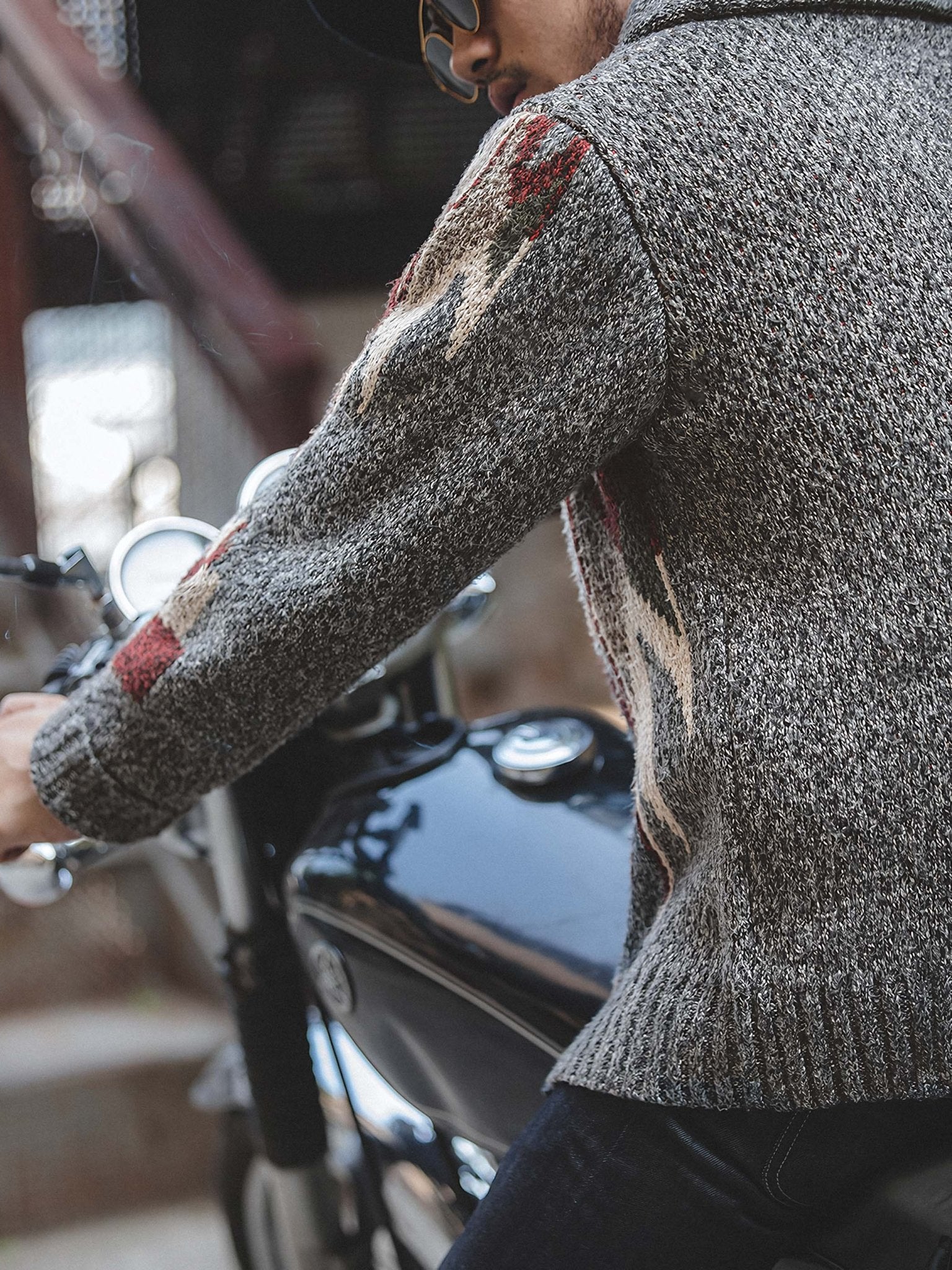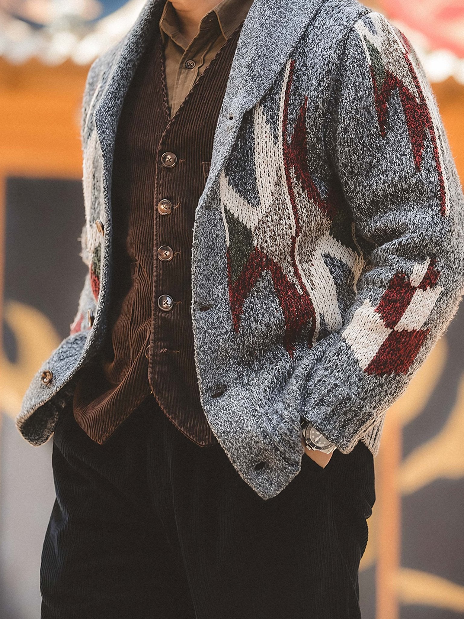 ナバホ部族はアメリカ最大のネイティブアメリカンの部族の一つであり、その織物技術で知られています。このセーターは、ナバホ部族からのインスピレーションを受け、レトロのスタイルでは欠かせない要素となっています。