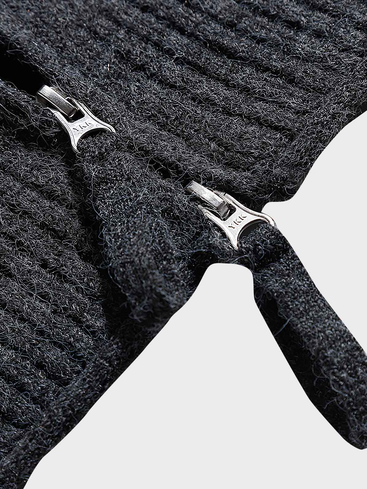 選ばれたポリエステル素材は肌触りが良く、耐摩耗性に優れ、お手入れが簡単で、形崩れや縮みにくいです。深い色合いの素材はシンプルでありながら、日常着用において耐久性があります。ニットの繊細なテクスチャーとシンプルなジッパーデザインは、都市的でミニマルなデザインコンセプトを反映し、カジュアルからライトビジネスシーンまで幅広く対応します。
