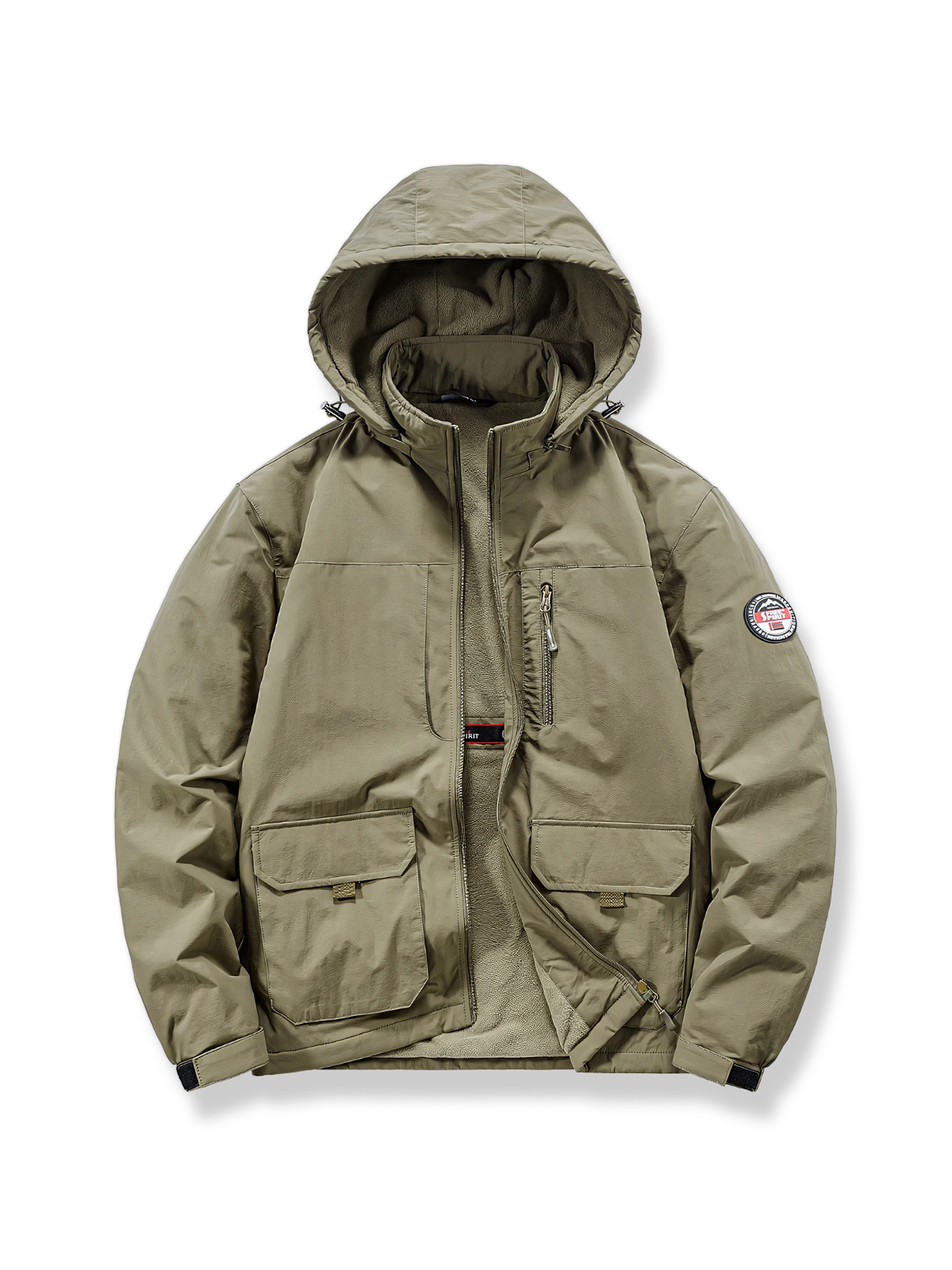 このジャケットは、クラシックなアウトドアミリタリースタイルを継承し、実用主義的な特徴が際立っています。デザインのインスピレーションは軍服に由来しており、特に機能性と耐久性に重点を置いており、様々なアウトドア活動や厳しい天候条件に適応しています。調節可能な弾性袖口と裾、取り外し可能な大きなフードが、その使用性と快適さを高めています。