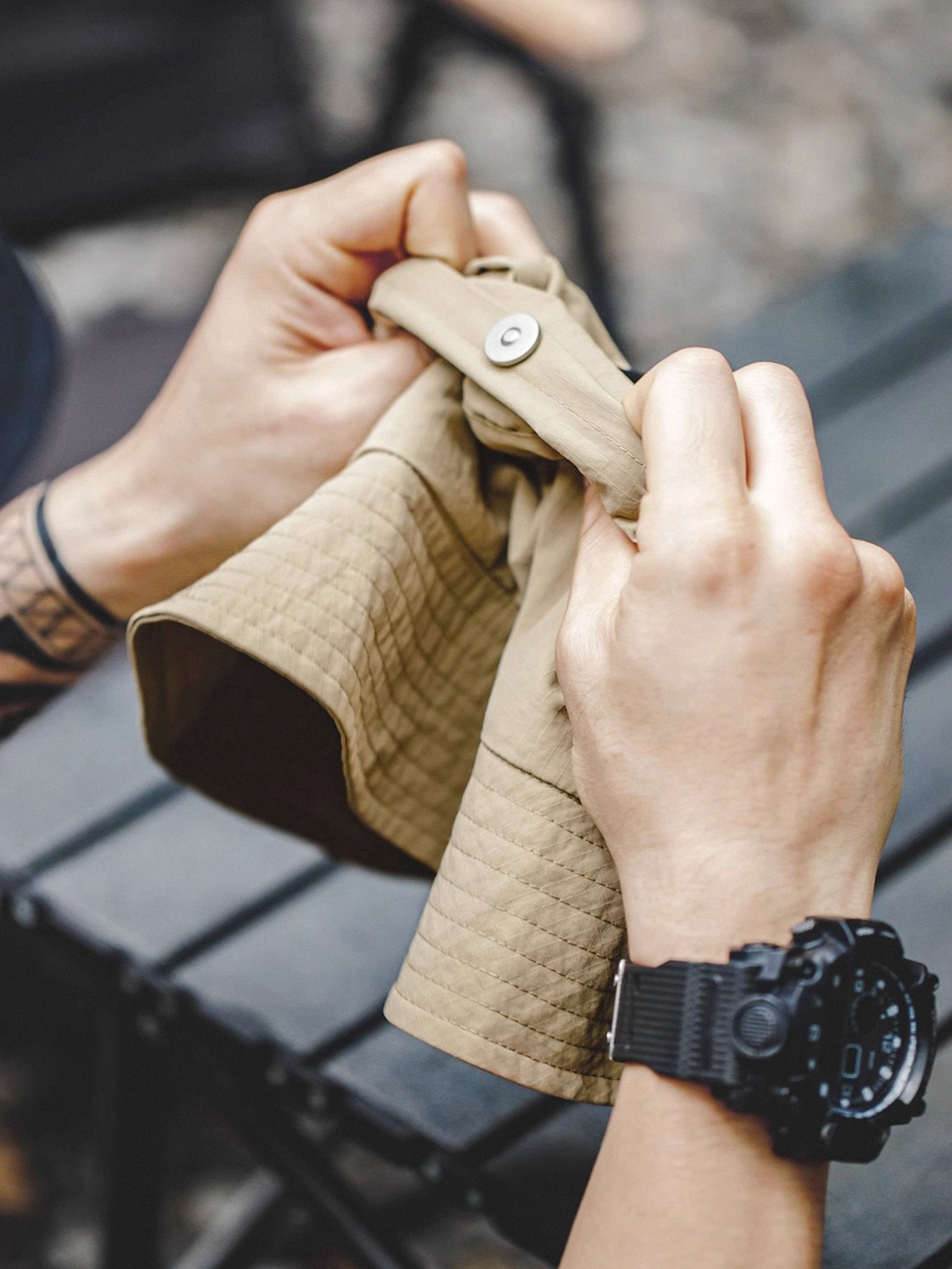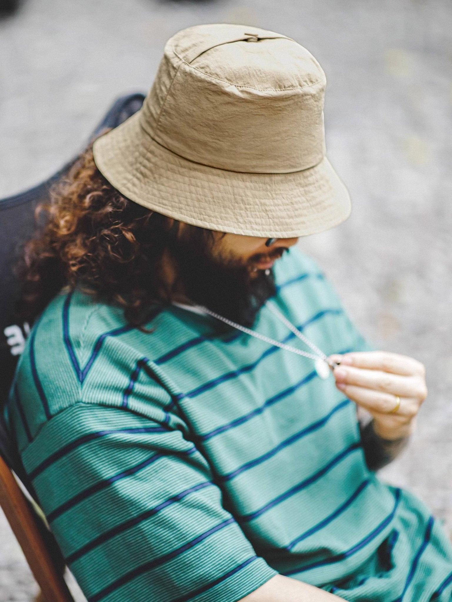 柔らかな肌触りと涼しげなドレープ感を持つナイロン素材が使用されており、緻密な織りと滑らかな肌触りで快適な着用感を提供します。デイリーユースからアウトドアまで幅広いシーンで活躍するバケットハットで、男女問わず被りやすいデザインも魅力です。カラフルなコーディネートにアクセントとして取り入れるのもおすすめです。