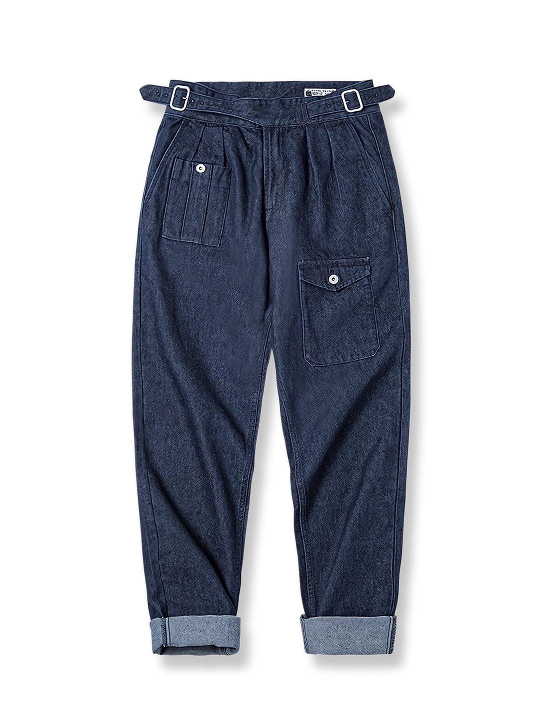 - このGurkhaデニムパンツは、勇敢なゴルカ兵士に由来する特徴的なウエストバンドが魅力です。