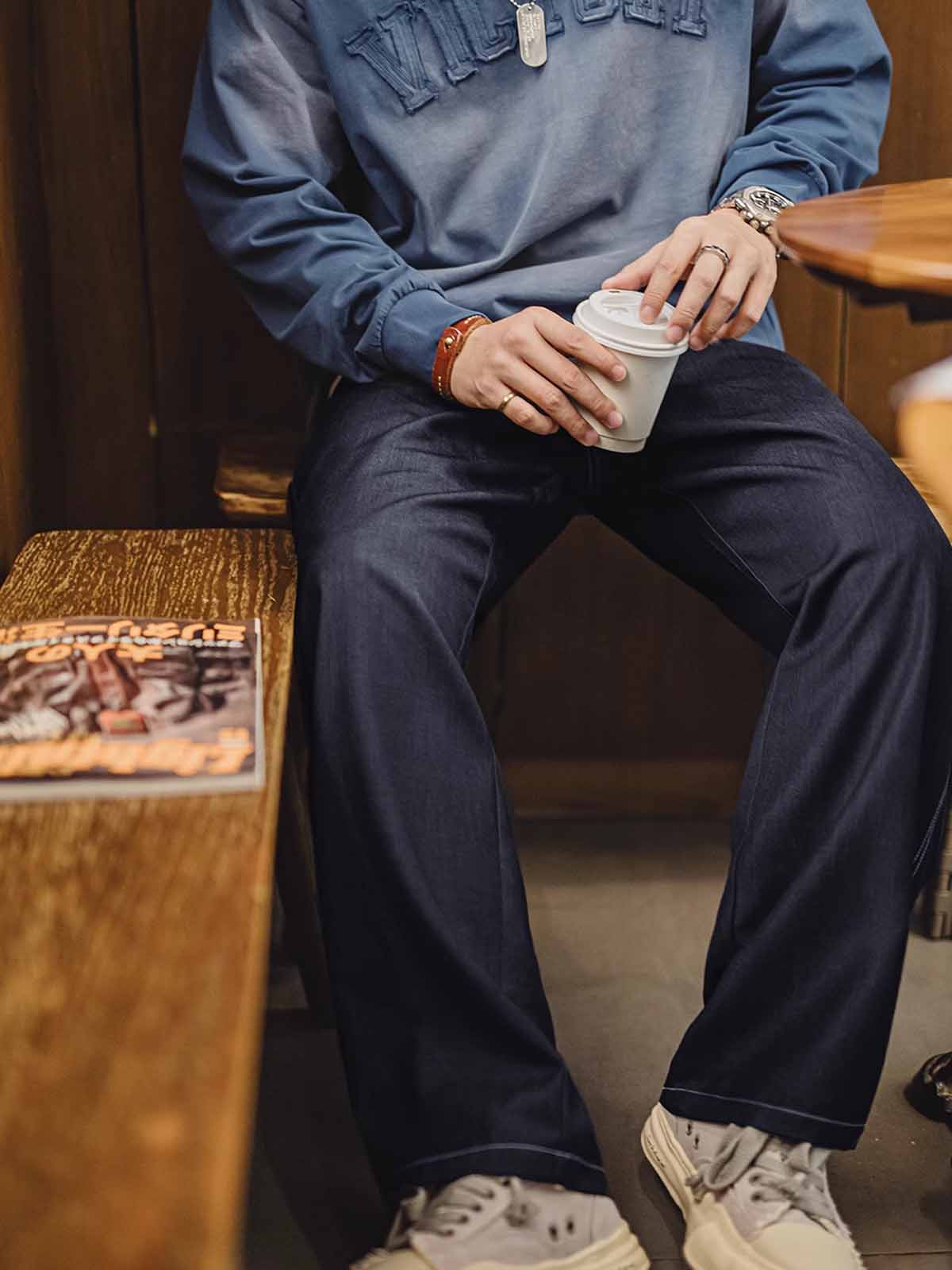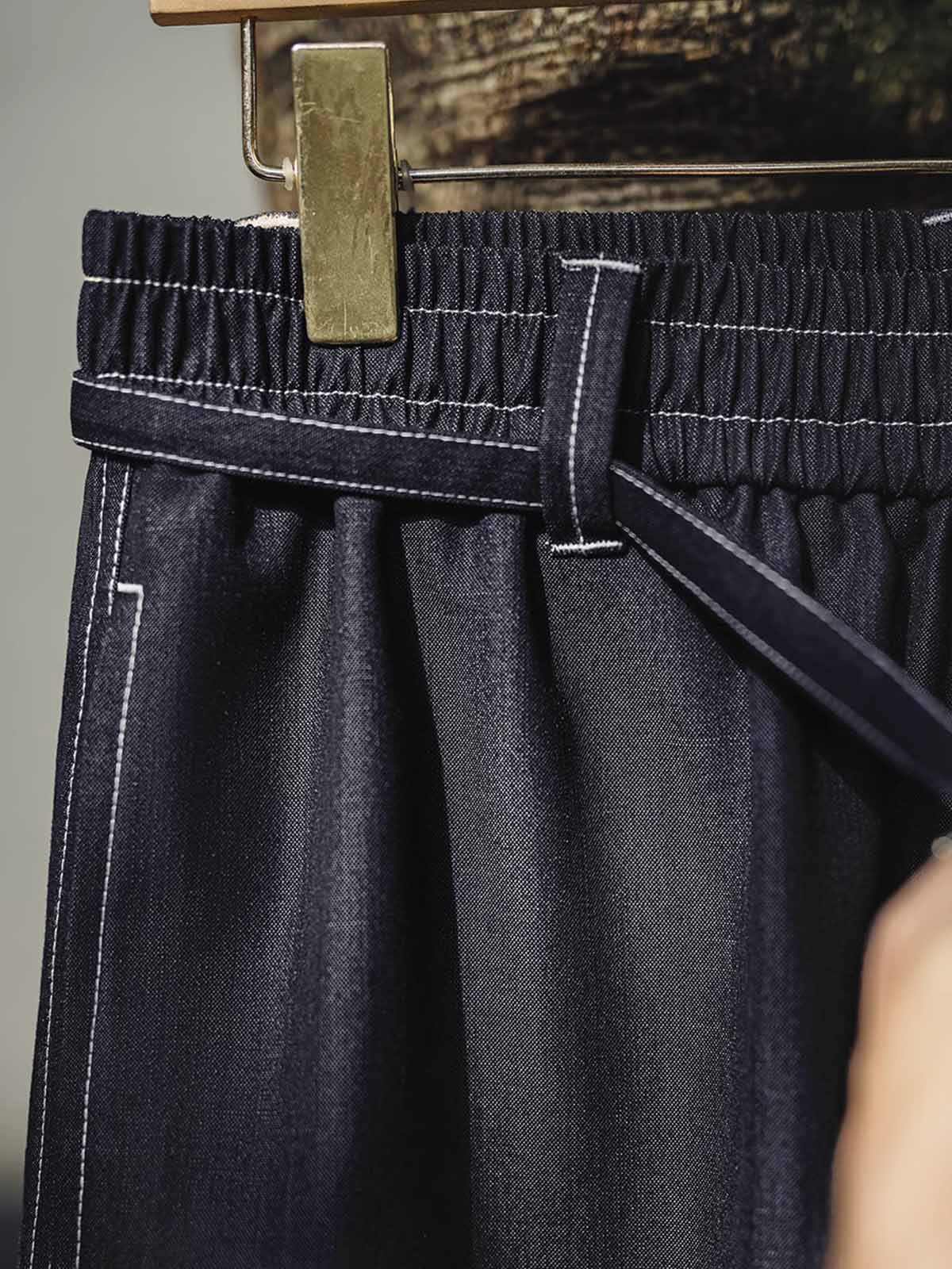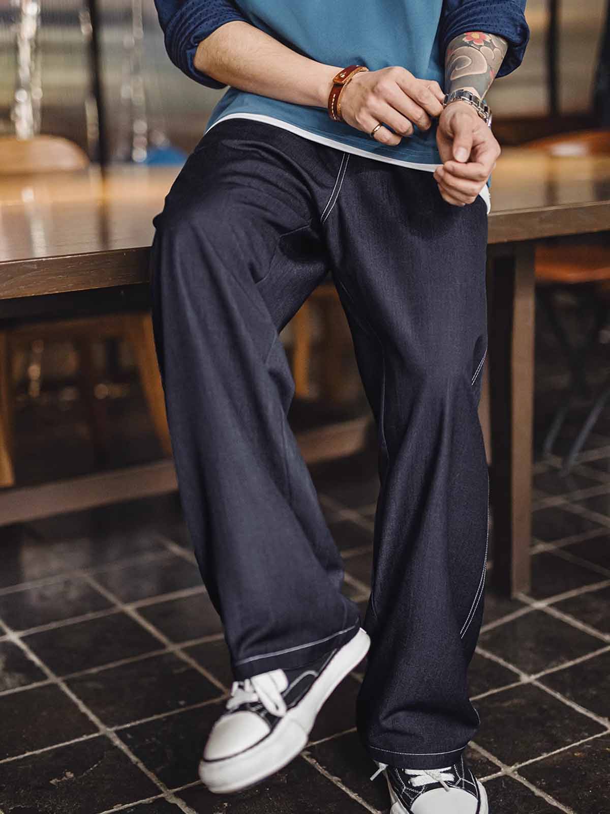オールシーズン快適、優れたドレープ性と通気性を兼ね備えたスタイリッシュなデニムパンツ。